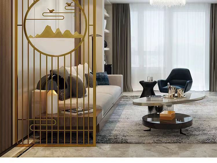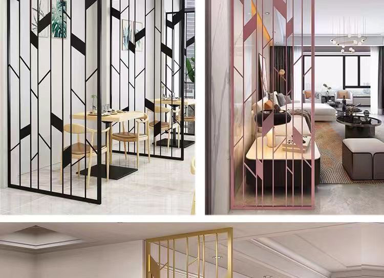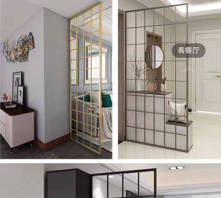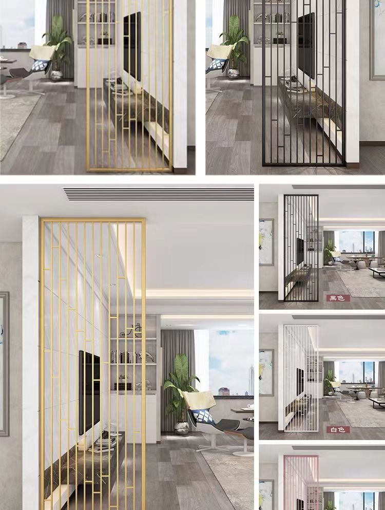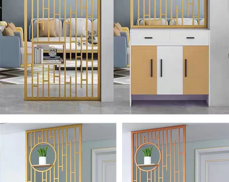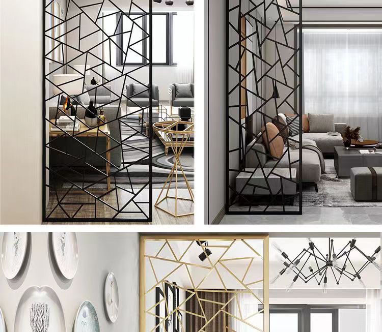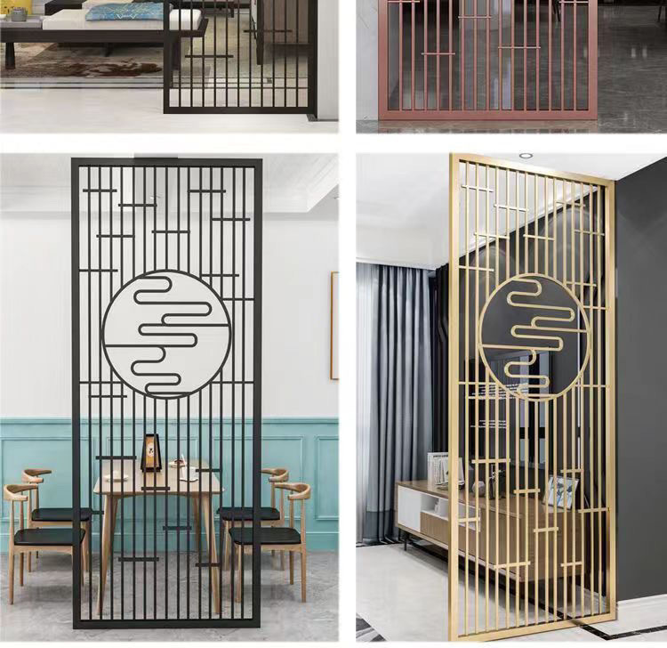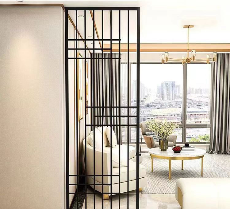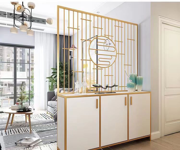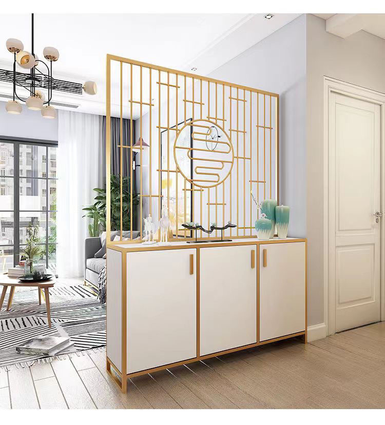 가벼운 고급 스테인레스 스틸 스크린 중국 스타일의 거실 파티션 입구 단순한 격자 현대적인 중공 차단 입구 장식