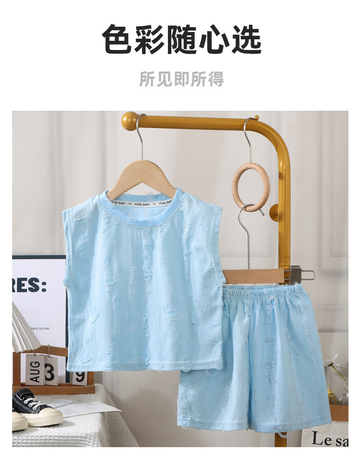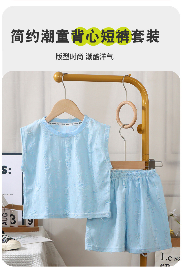 여름 신작 아동 트렌디 한국식 찢어진 양복 얇은 소년 패션 풀오버 민소매 여아 패션 조끼스토어 가기