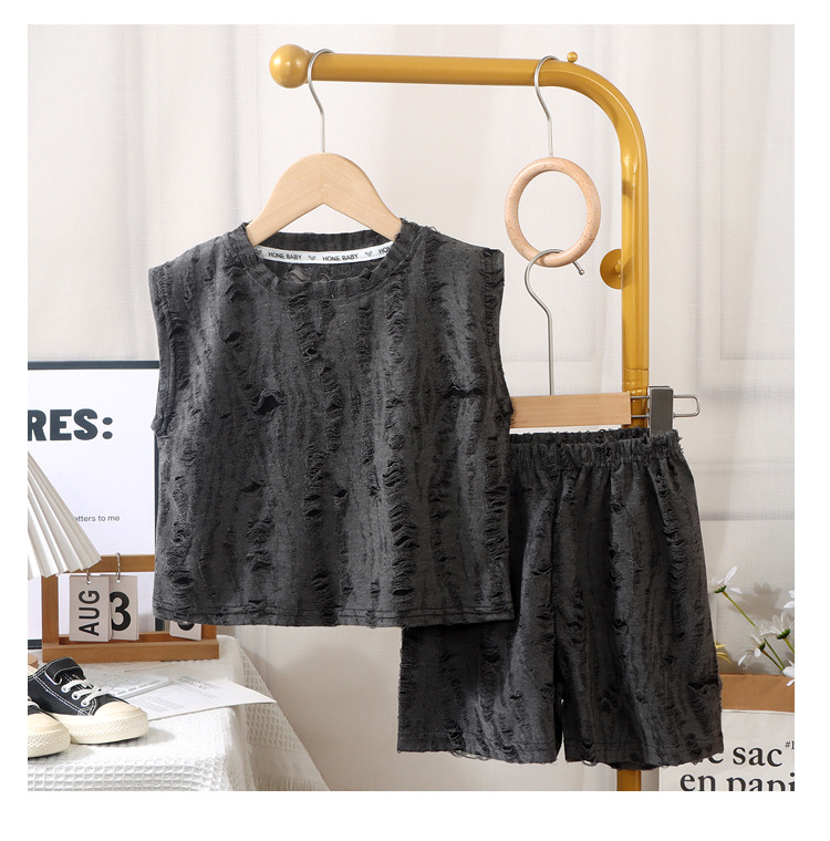 여름 신작 아동 트렌디 한국식 찢어진 양복 얇은 소년 패션 풀오버 민소매 여아 패션 조끼