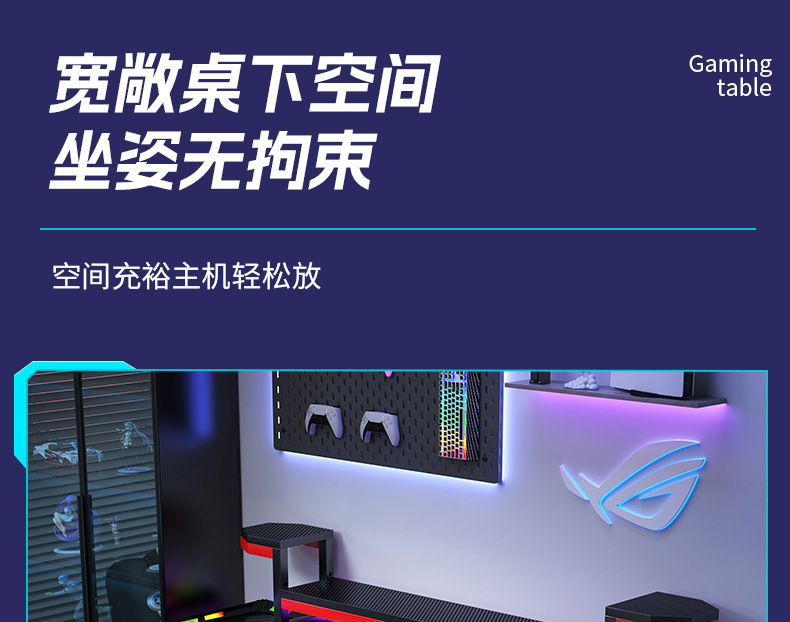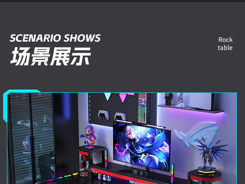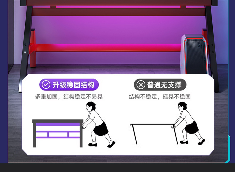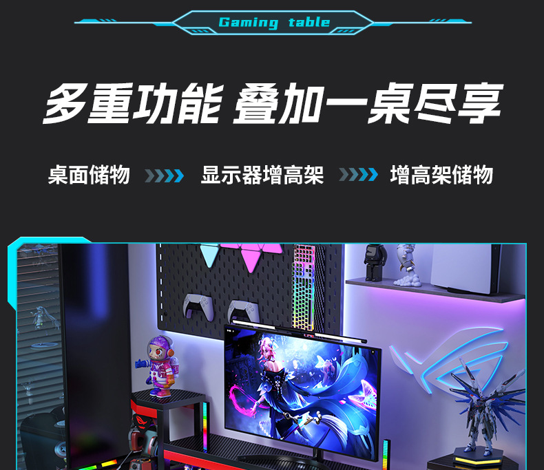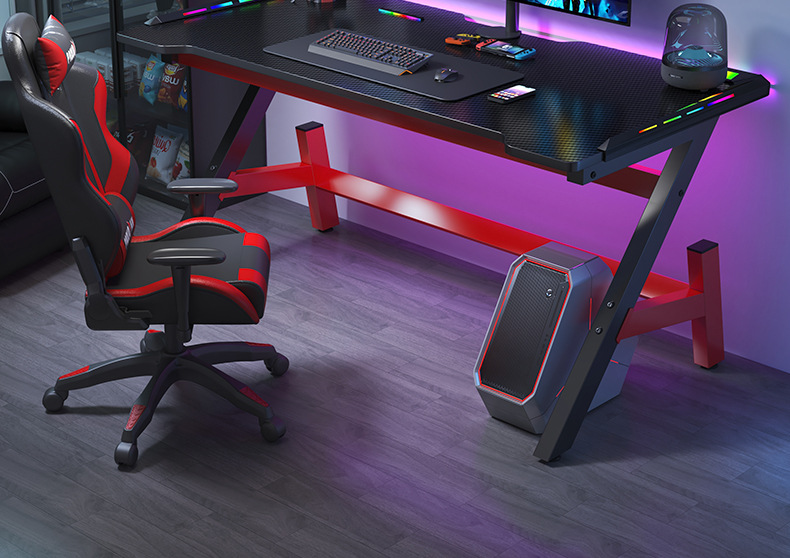 모니터가 있는 e-스포츠 테이블, 높은 스탠드, 인터넷 연예인 가정용 컴퓨터 데스크탑 게임 테이블, RGB 조명이 있는 간단한 책상스토어 가기