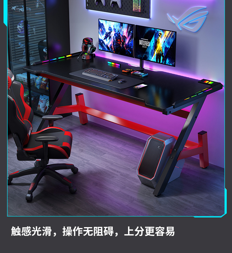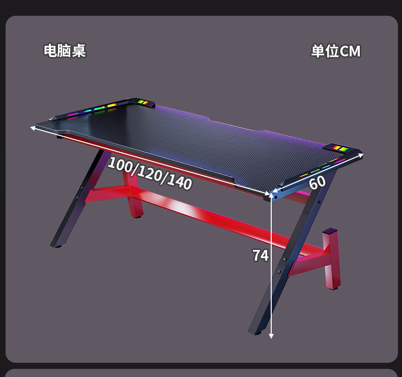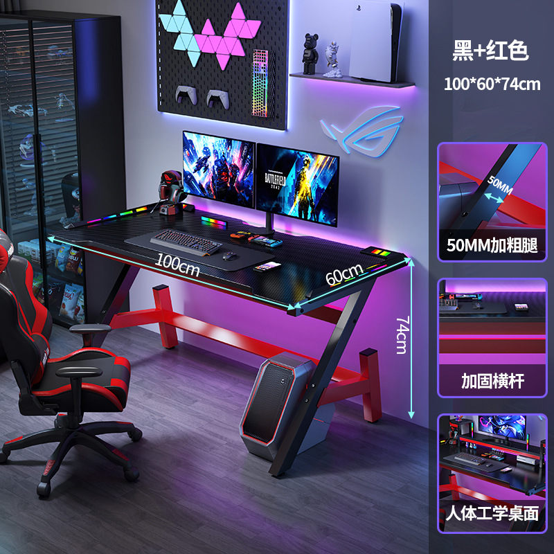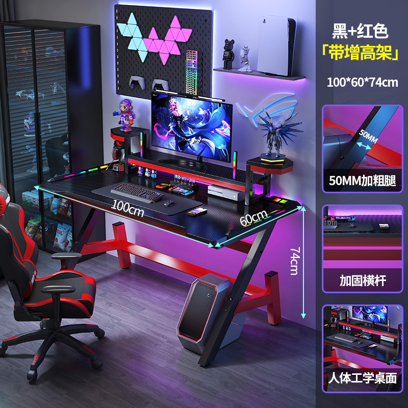 모니터가 있는 e-스포츠 테이블, 높은 스탠드, 인터넷 연예인 가정용 컴퓨터 데스크탑 게임 테이블, RGB 조명이 있는 간단한 책상