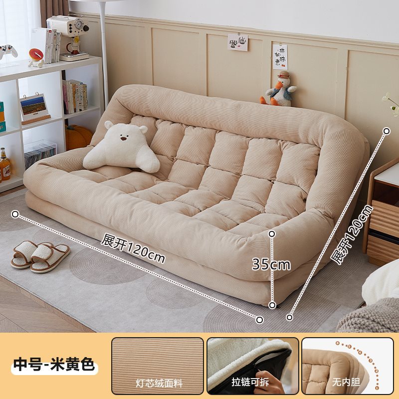 • ✷Φ【간편한 분리 세탁】 접이식 침대 겸 소파 [펼쳤을 때 120*120CM] 피부 친화적인 코듀로이 원단 - 미색 (대형 쿠션 2개 증정)✷피