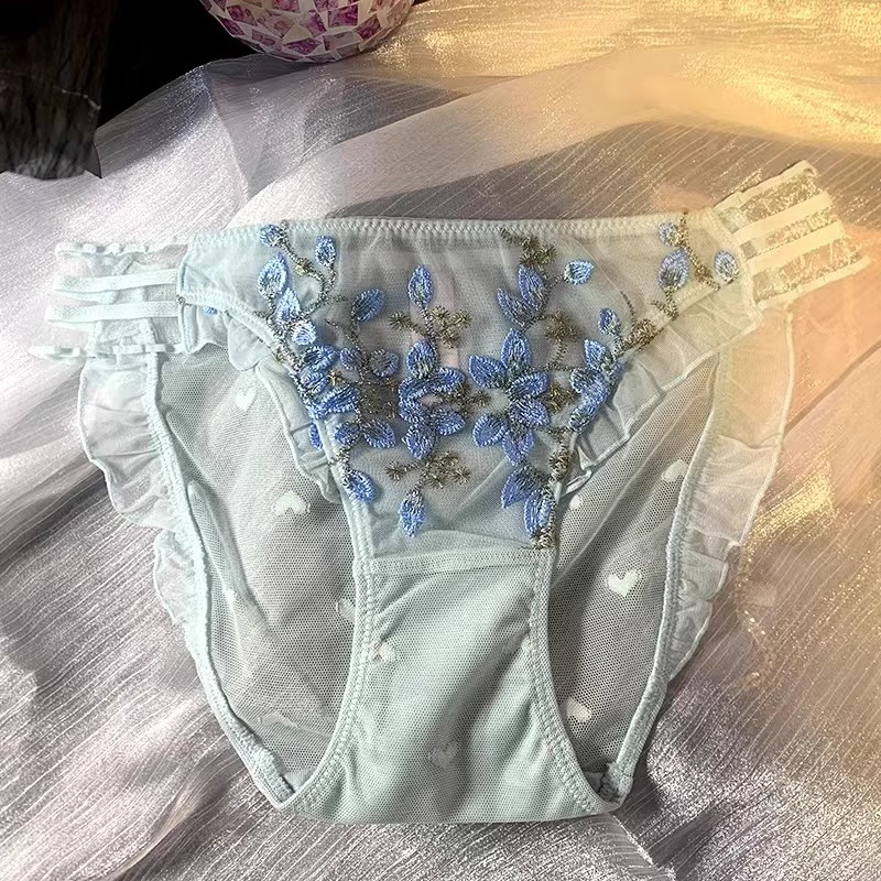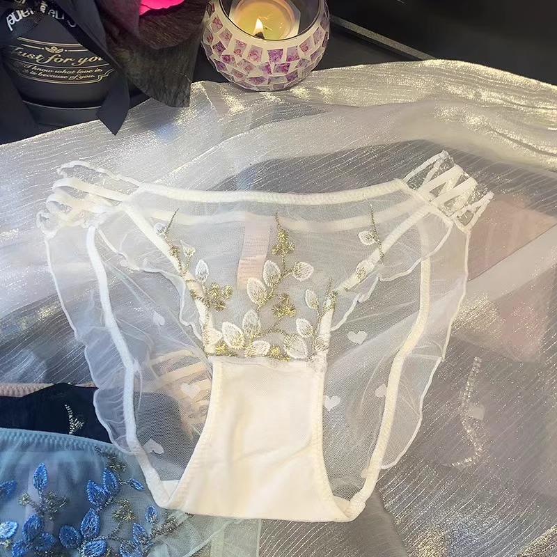 여성용 레이스 업 새 스타일 속옷, 로우 웨이스트 메쉬 자수 꽃, 투명, 통기성, 속건성, 여대생용 삼각형 반바지스토어 가기
