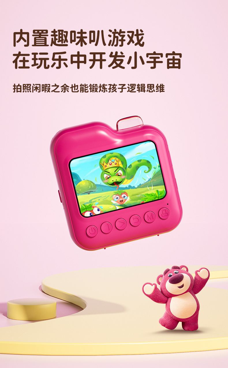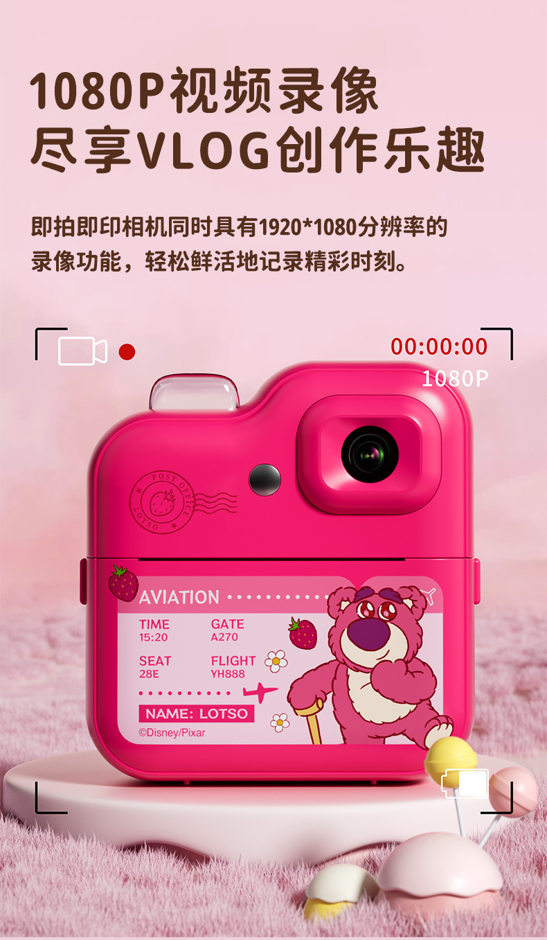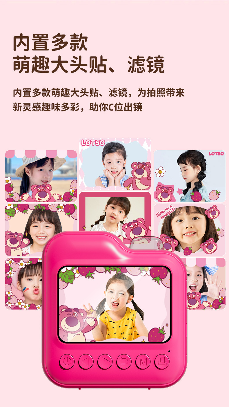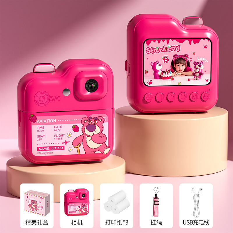 • 터치스크린-디즈니 폴라로이드 Q7 로즈 레드 스트로베리 베어 [인쇄지 3롤]