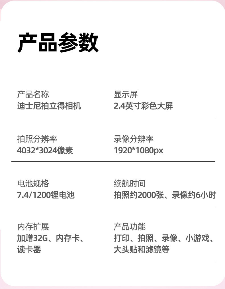 • 디즈니 폴라로이드 Q6 로즈 레드 스트로베리 베어 [인쇄지 3롤 + 32G 메모리 카드 + 카드 리더기]