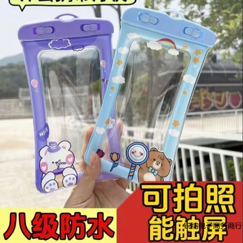 터치 스크린 에어백이있는 휴대 전화 방수 가방, 레인 커버, 수영 및 다이빙 장비, 래프팅 특수 만화 방수 휴대 전화 가방스토어 가기