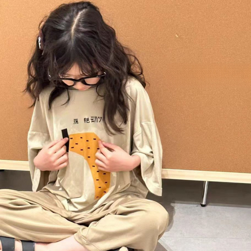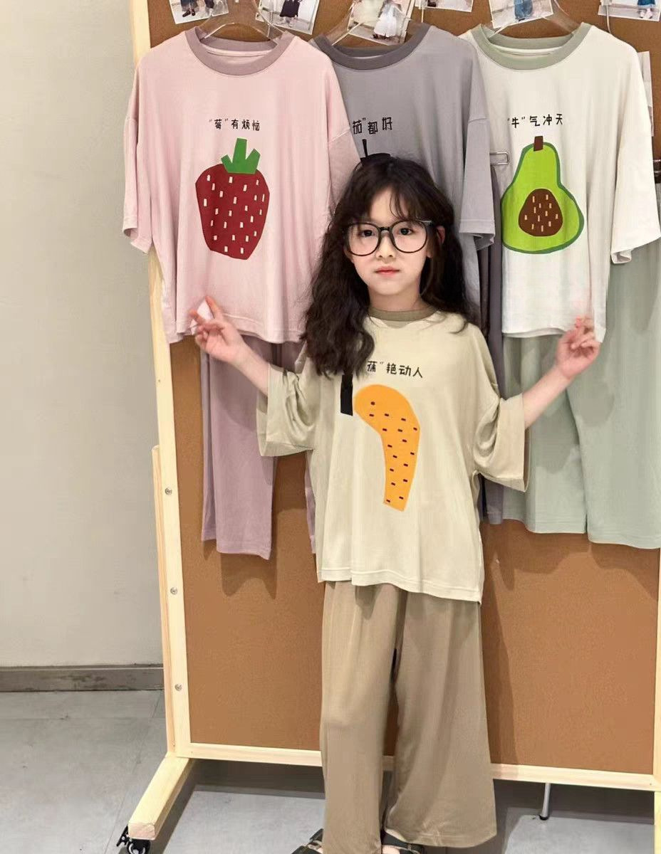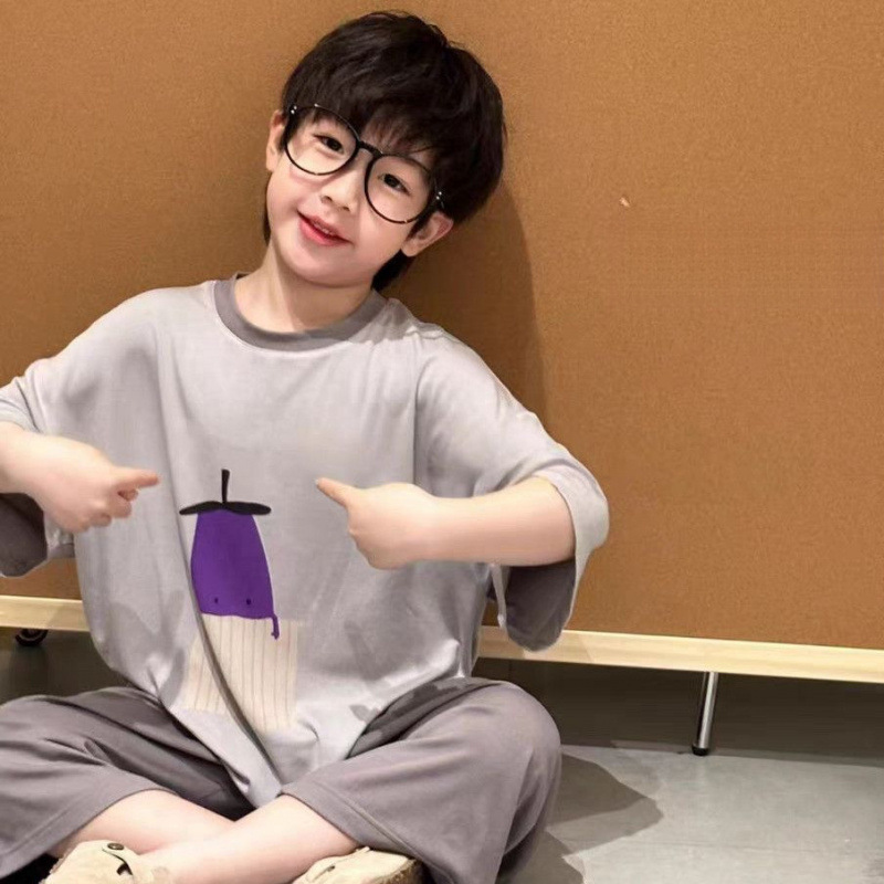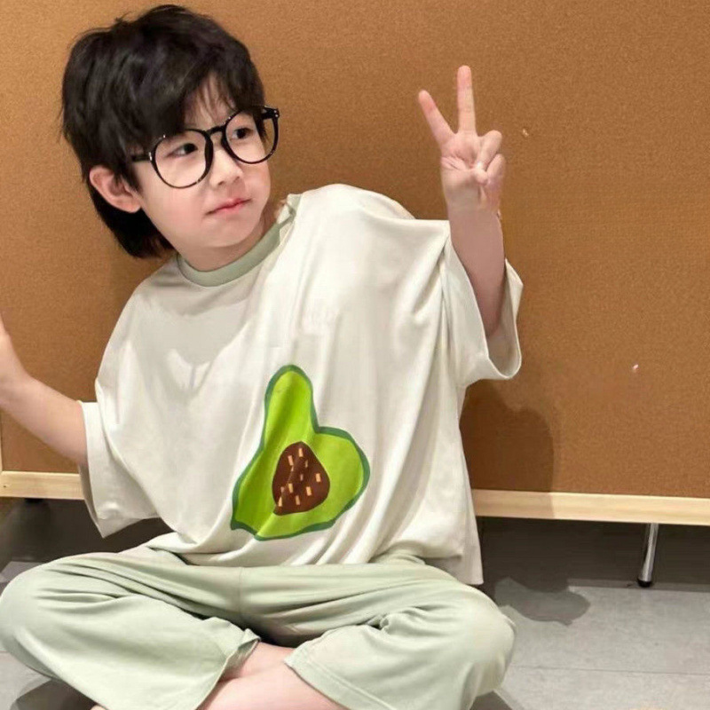 아동용 잠옷 모달 여름 얇은 소년 반팔 가정복 세트 큰 어린이와 소녀를위한 캐주얼 에어컨 의류스토어 가기