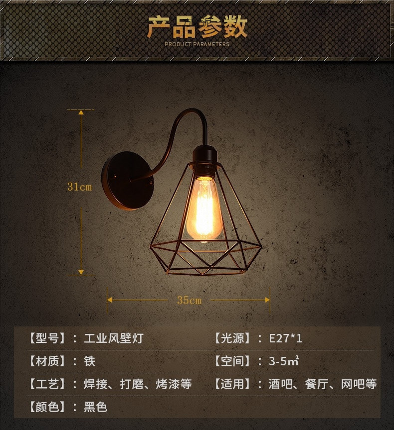 레트로 산업 스타일 벽 램프 미국 스타일 맞춤형 벽 램프 장식 통로 복도 발코니 레스토랑 바 계단 램프 도매스토어 가기