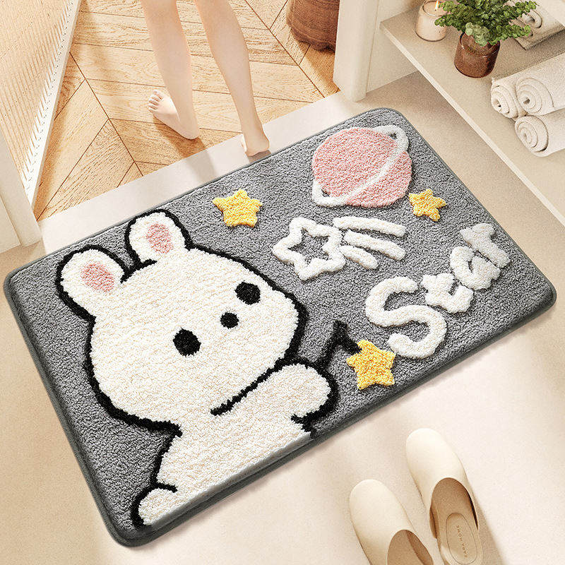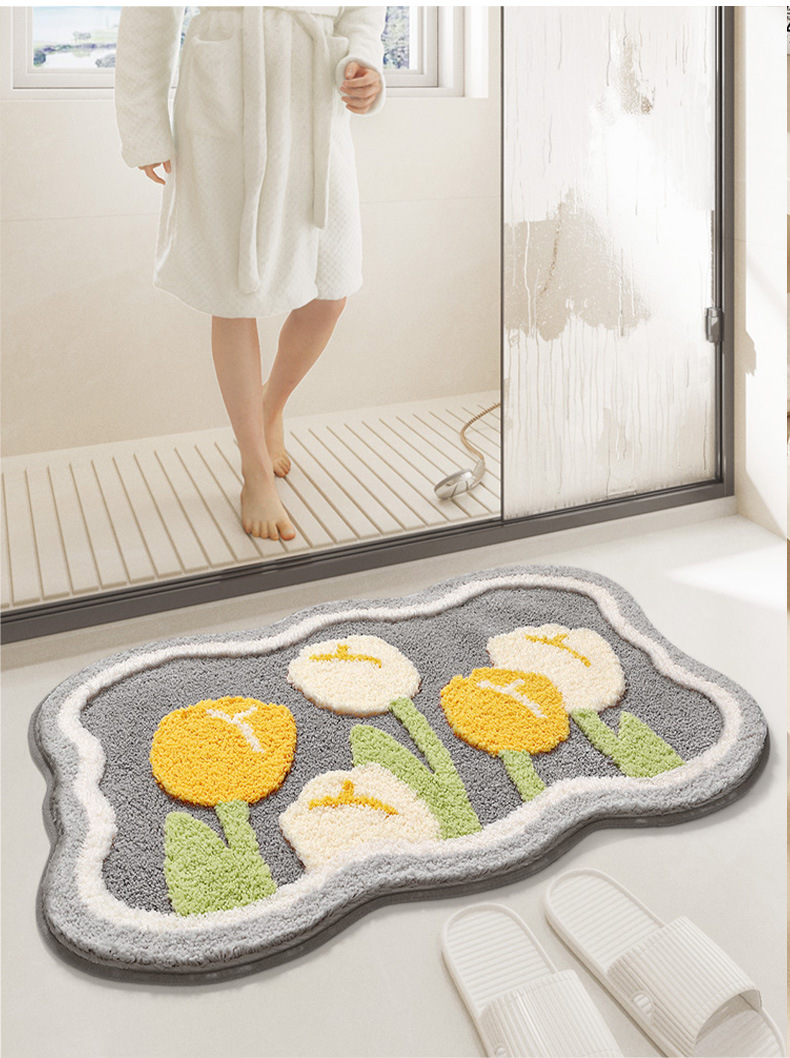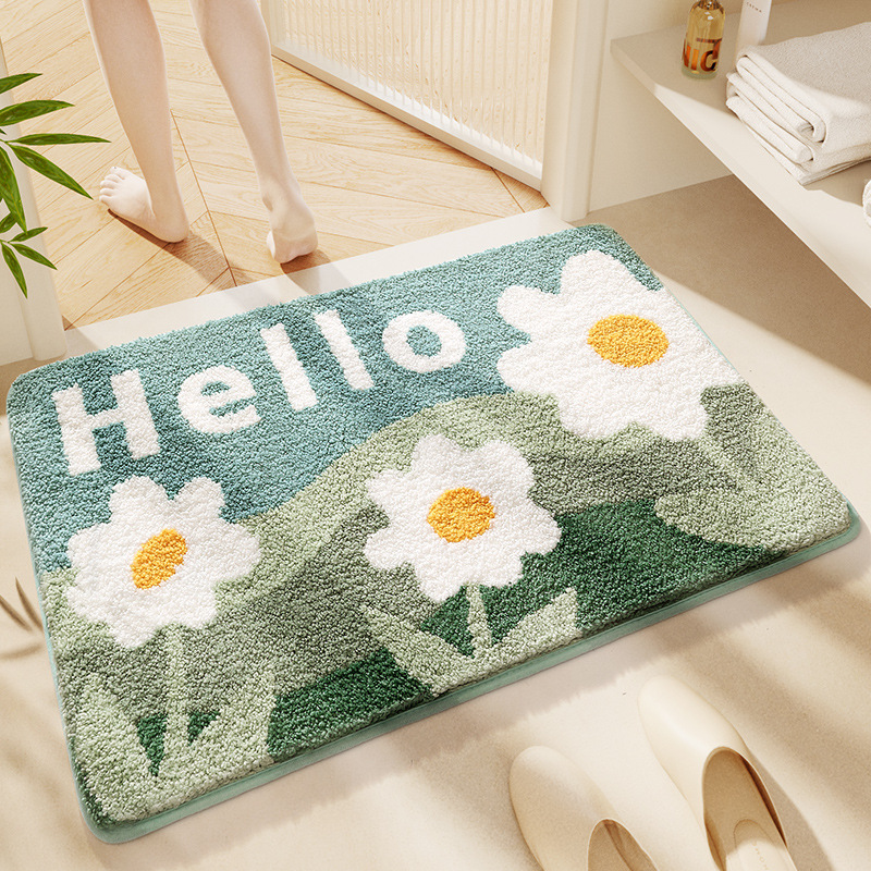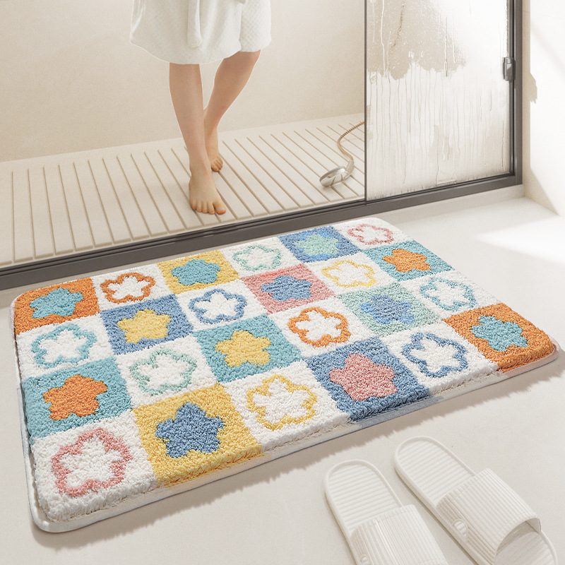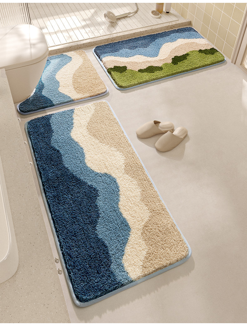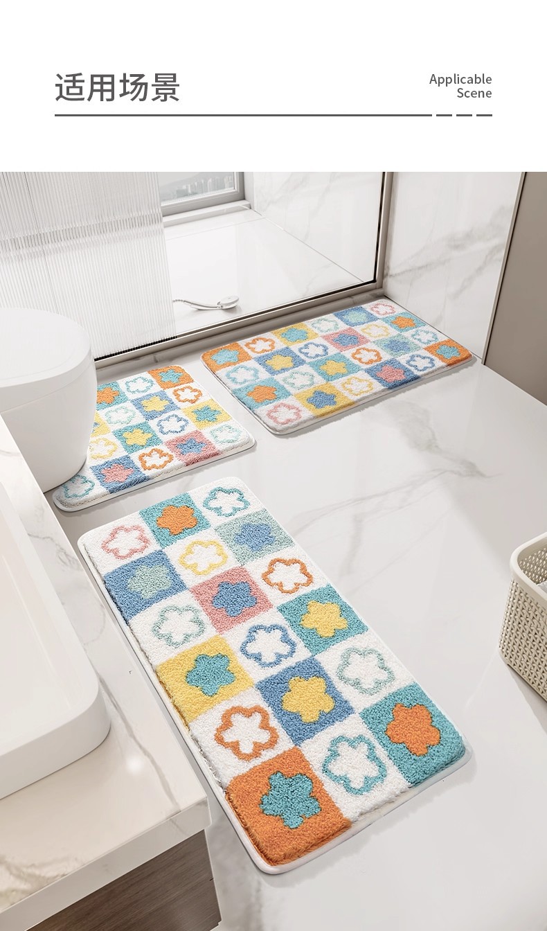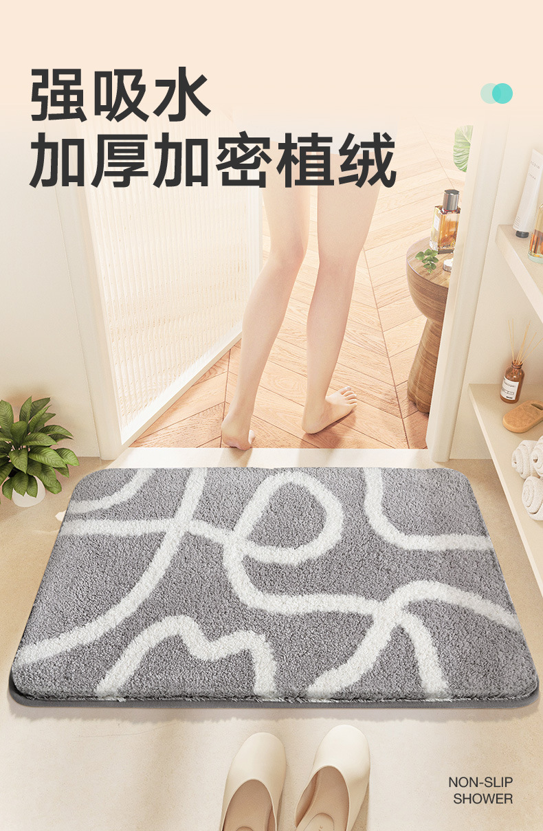 현대적인 미니멀리스트 홈 욕실 바닥 매트 두꺼운 강한 흡수성 플록 미끄럼 방지 바닥 매트 화장실 입구 빠른 건조 발 매트