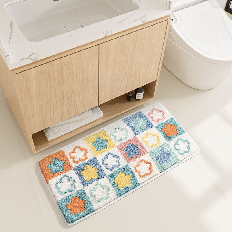 현대적인 미니멀리스트 홈 욕실 바닥 매트 두꺼운 강한 흡수성 플록 미끄럼 방지 바닥 매트 화장실 입구 빠른 건조 발 매트스토어 가기