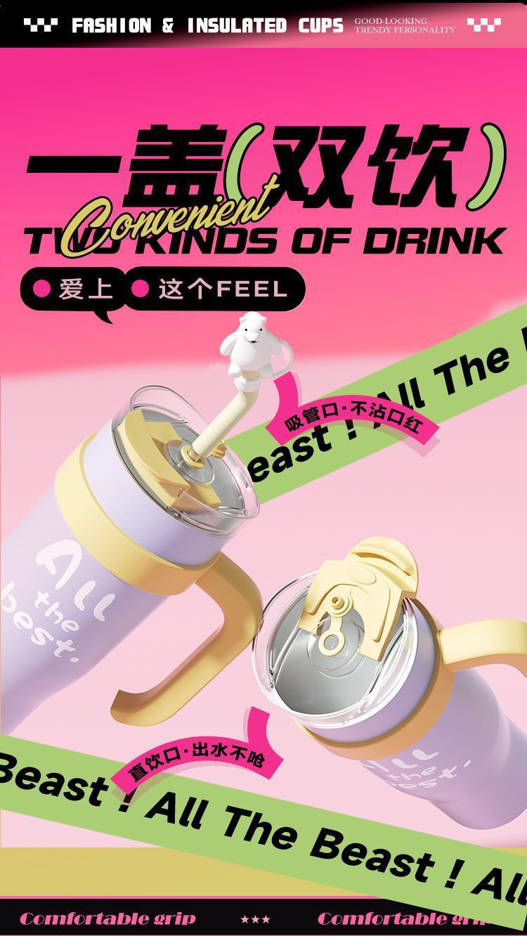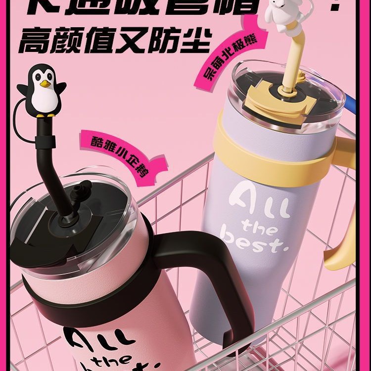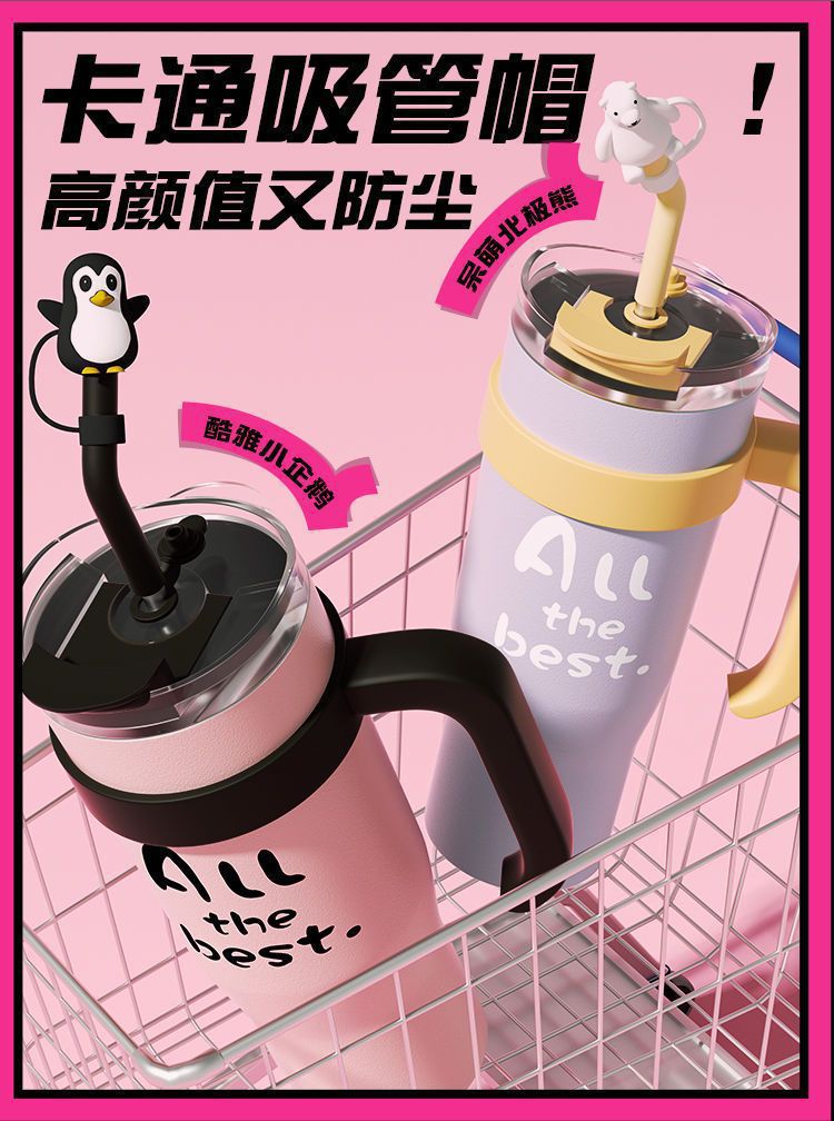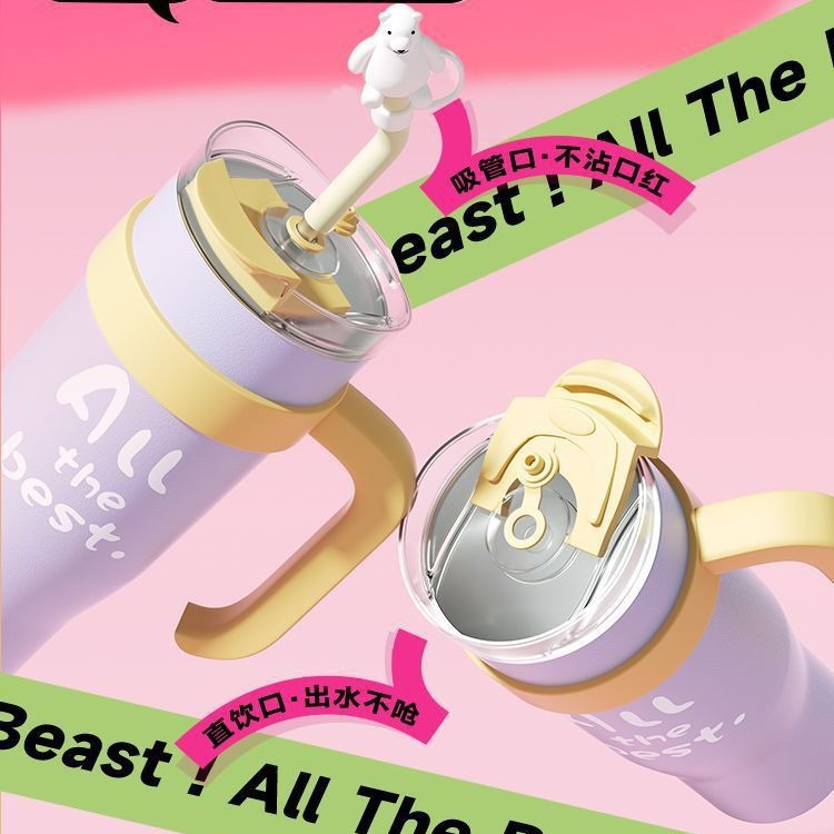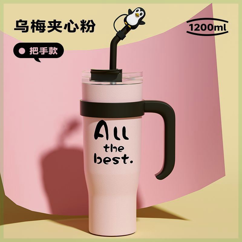 빅맥 보온병 컵, 패셔너블하고 귀엽고 멋진 소녀 밀짚 대용량 핸들 자동차 컵 도매스토어 가기