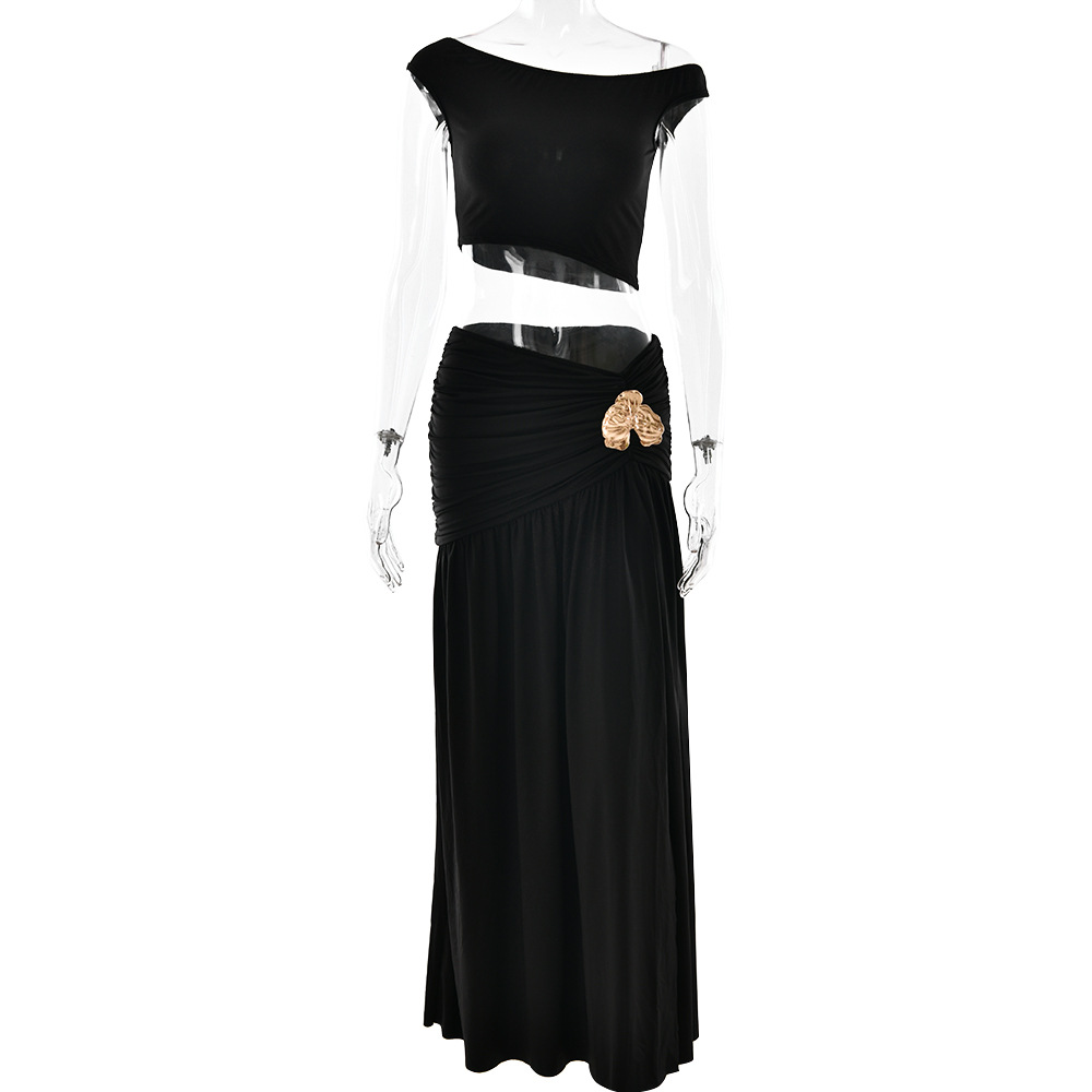 유럽과 미국 스타일의 2025 새로운 대외 무역 인기 여성 정장 섹시한 튜브 탑 솔리드 컬러 슬릿 롱 스커트 투피스 세트