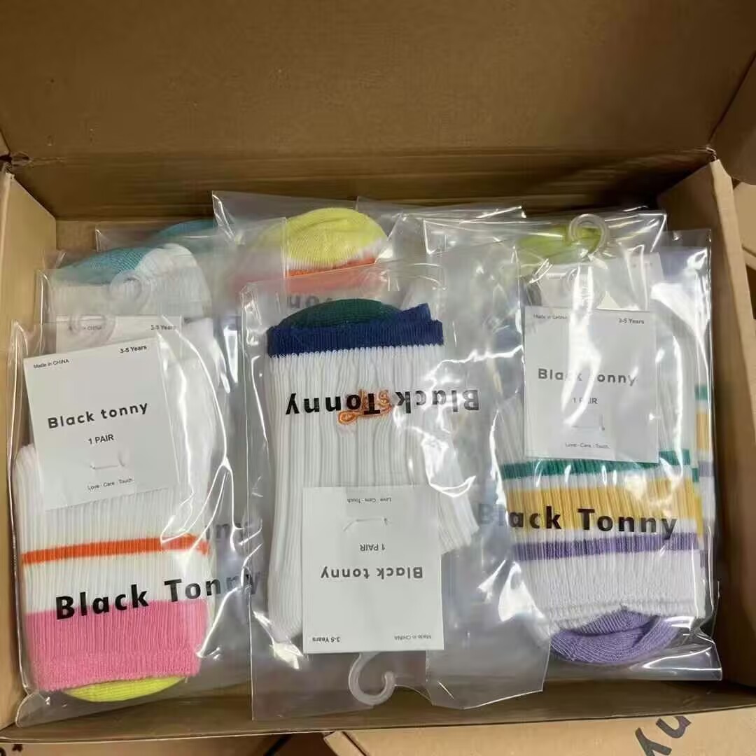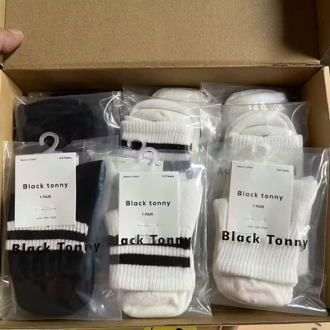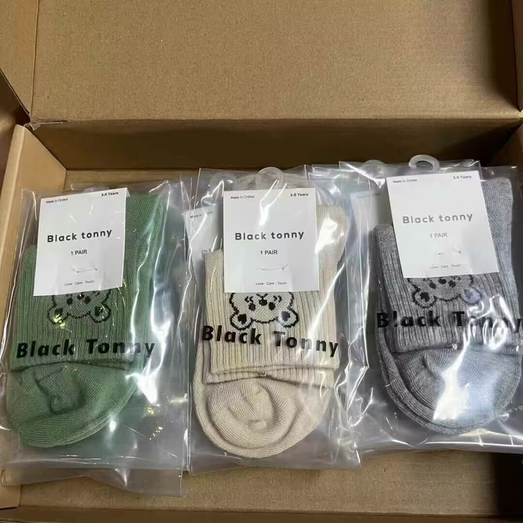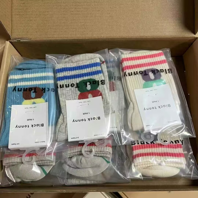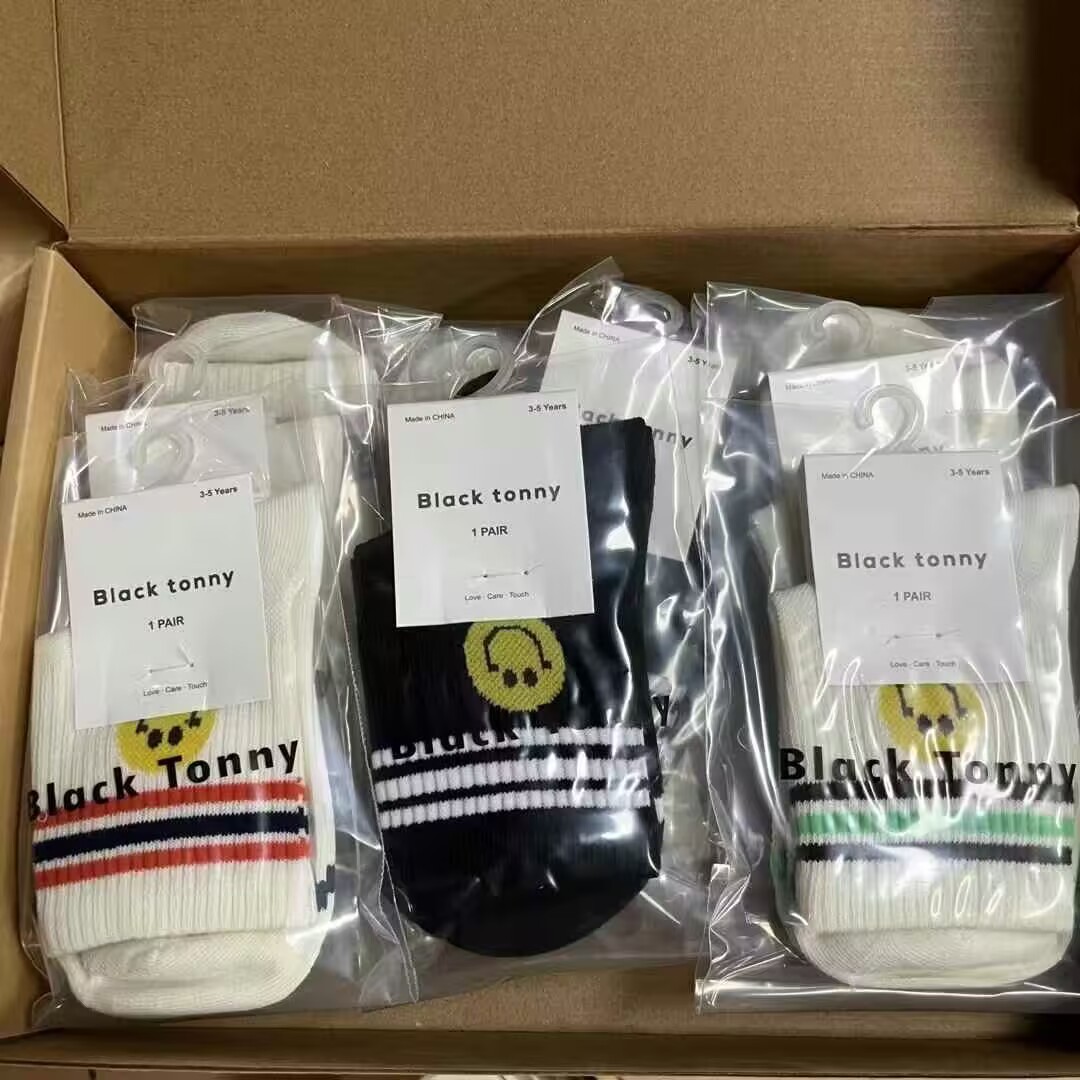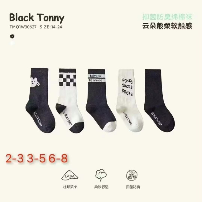 [리틀 블랙 토니] 남아 및 여아용 25 봄, 가을 양말, 면 양말, 통기성 종아리 양말, 도매 공급, 현물 직배송