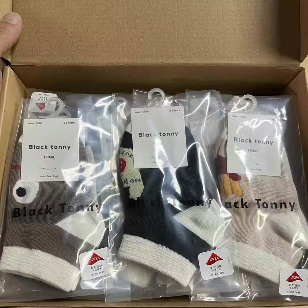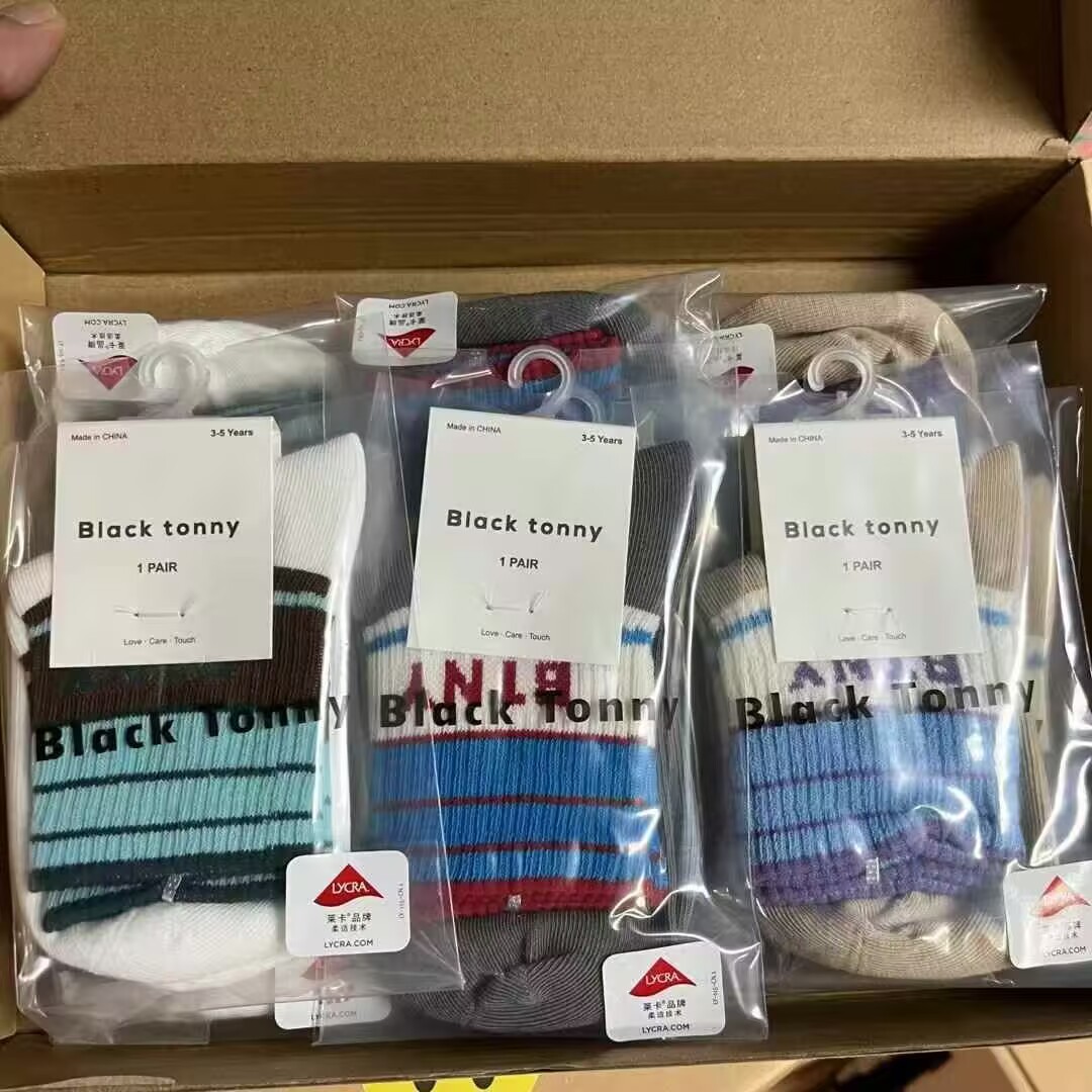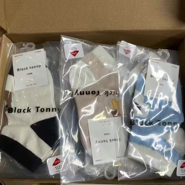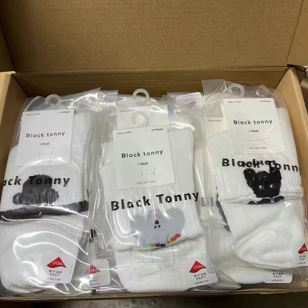 [리틀 블랙 토니] 남아 및 여아용 25 봄, 가을 양말, 면 양말, 통기성 종아리 양말, 도매 공급, 현물 직배송