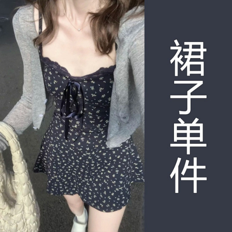 프렌치 레트로 디자인 꽃무늬 원피스, 멜빵, 활용도 높은 가디건, 달콤하고 매력적인 소녀, 쁘띠 패셔너블 니치탑스토어 가기
