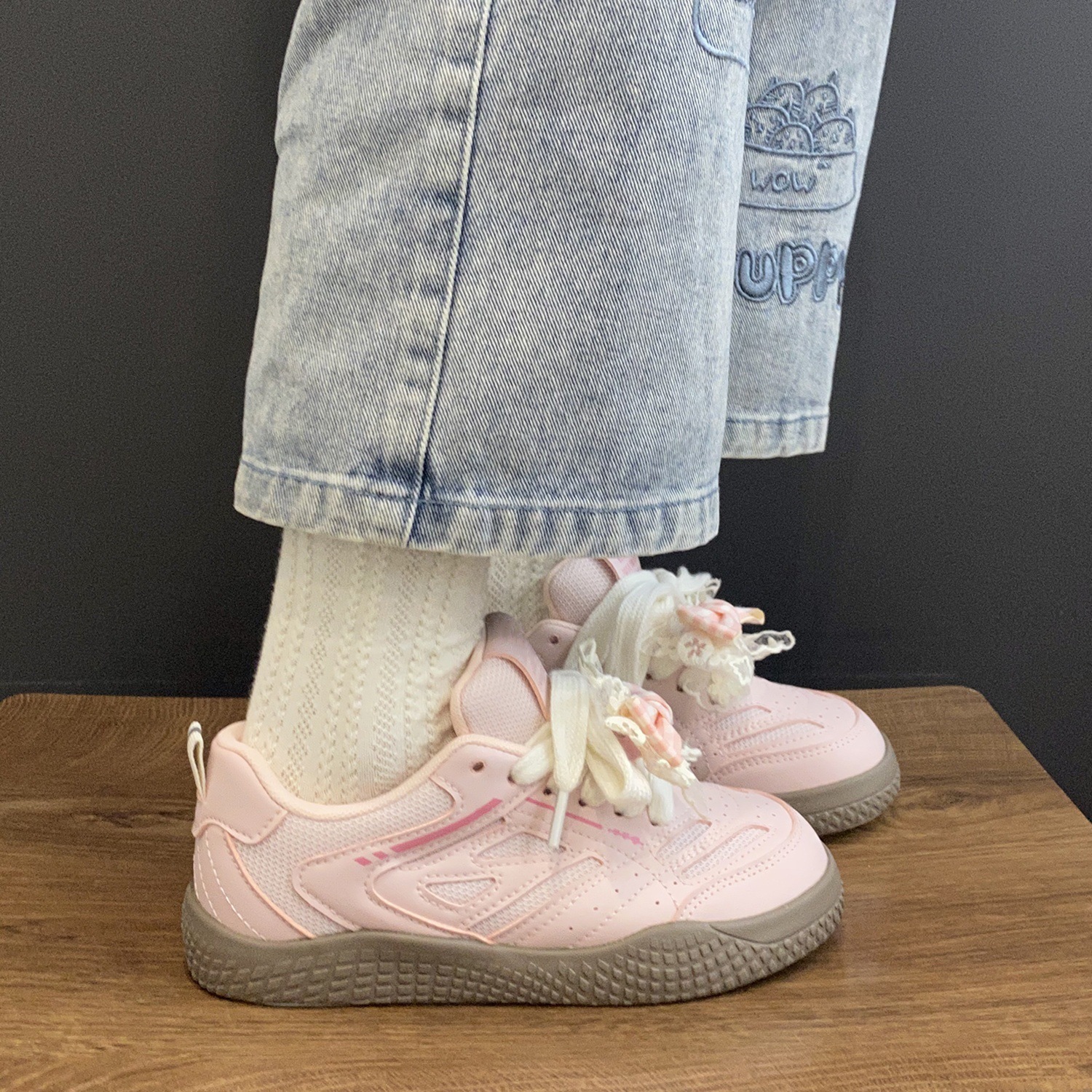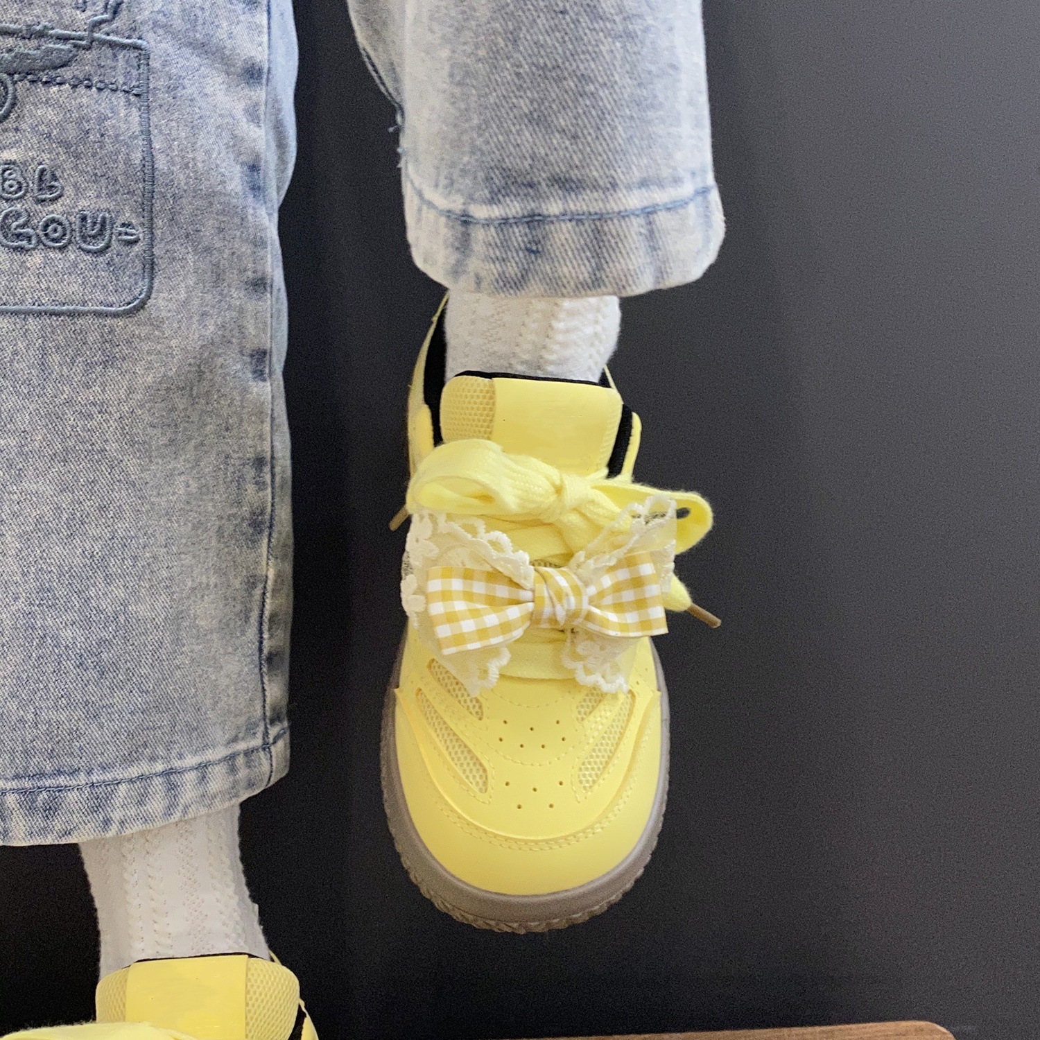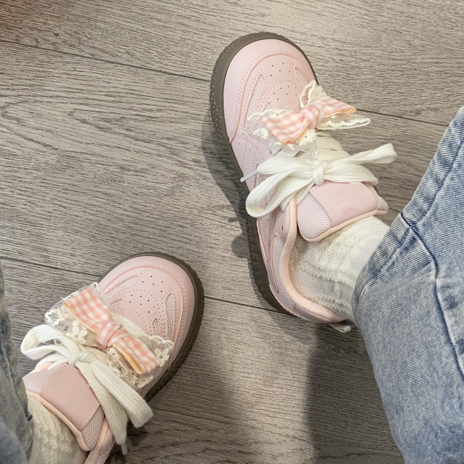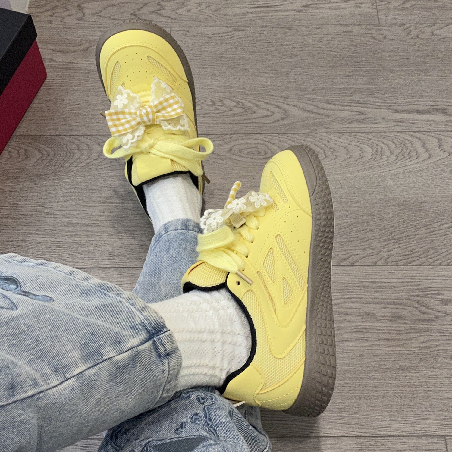 여성을위한 델트 트레이닝 슈즈 2025 여름 신작 리본 화이트 슈즈로 발을 보여줍니다. 작은 스포츠 캐주얼 시크 스니커즈 빵 신발스토어 가기