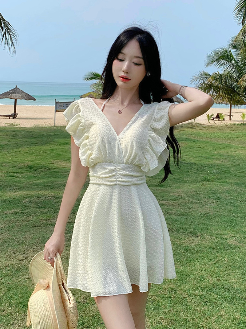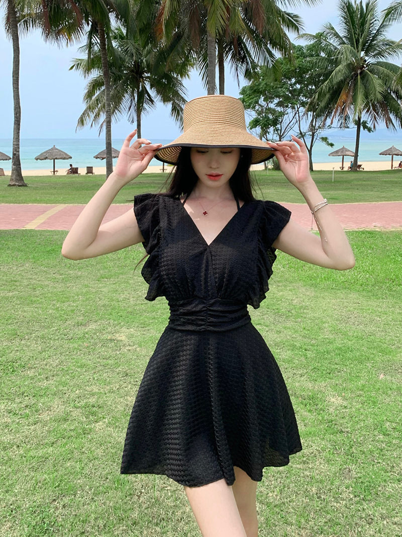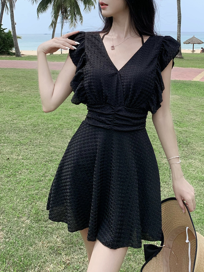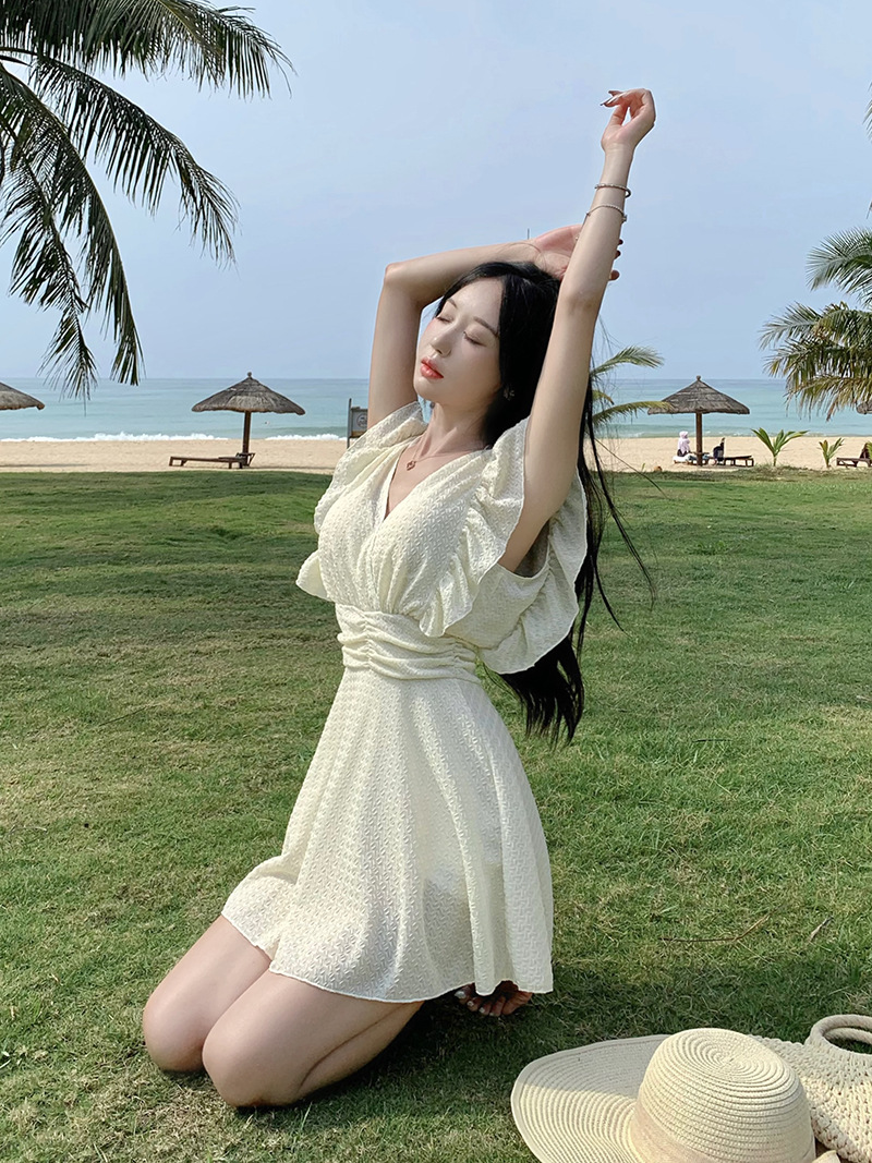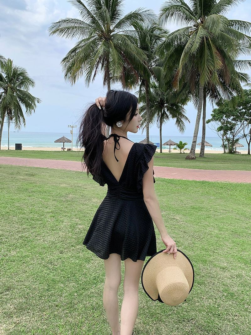 여성용 러플 요정 수영복 원피스 복서 보수적 슬리밍 배 커버 플러스 사이즈 스커트 수영복 워터 톤 9153