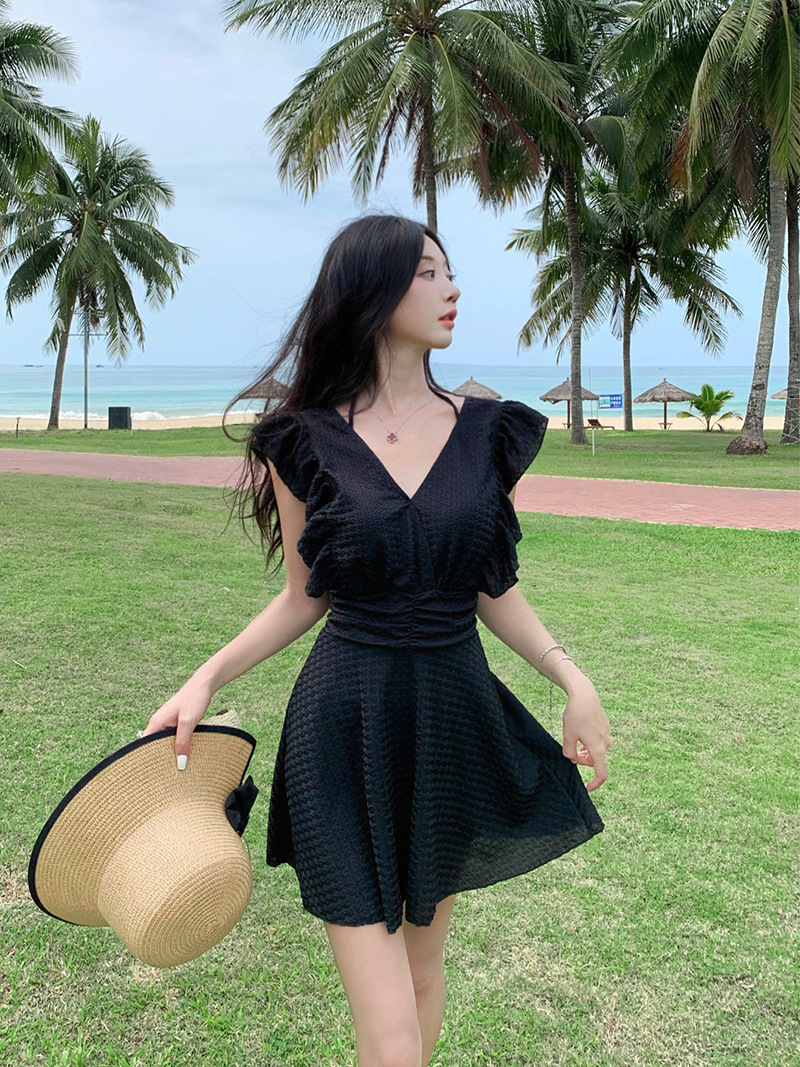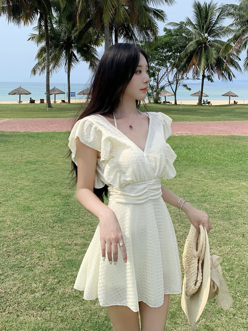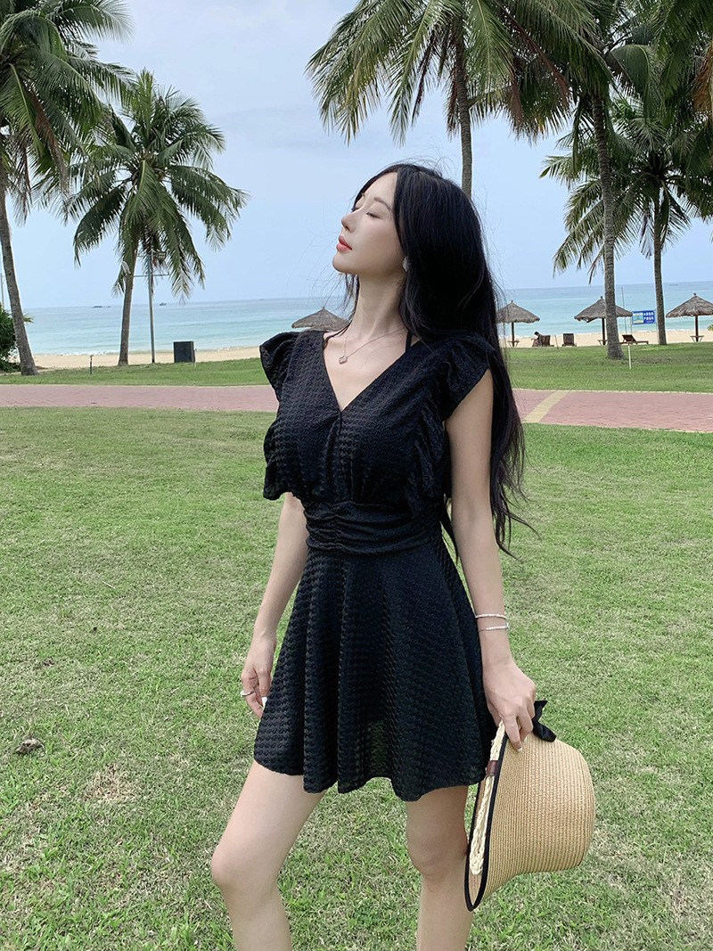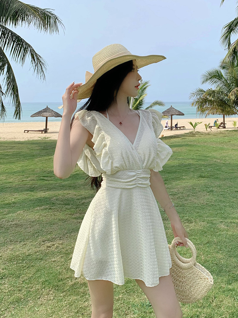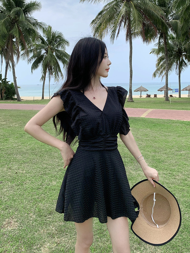 여성용 러플 요정 수영복 원피스 복서 보수적 슬리밍 배 커버 플러스 사이즈 스커트 수영복 워터 톤 9153