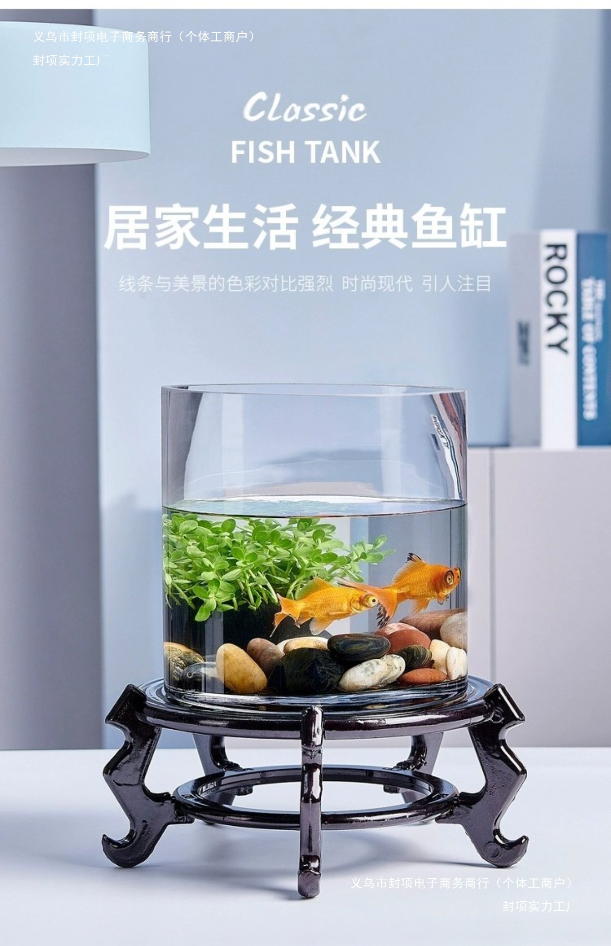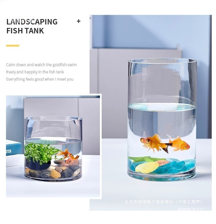 크리 에이 티브 거실 금붕어 탱크 유리 수족관 작은 생태 원형 실린더 대형 거북이 탱크 조경 장식