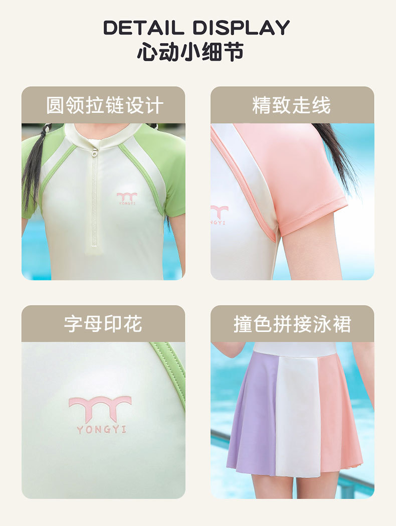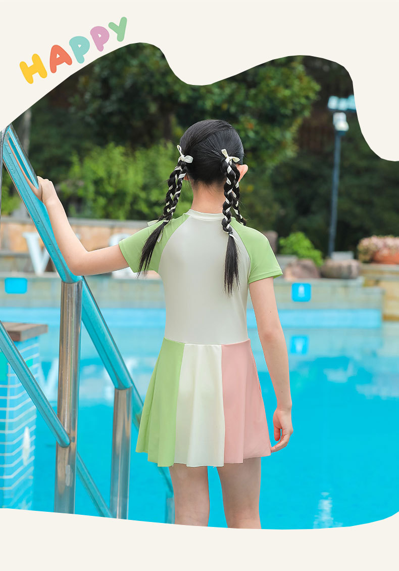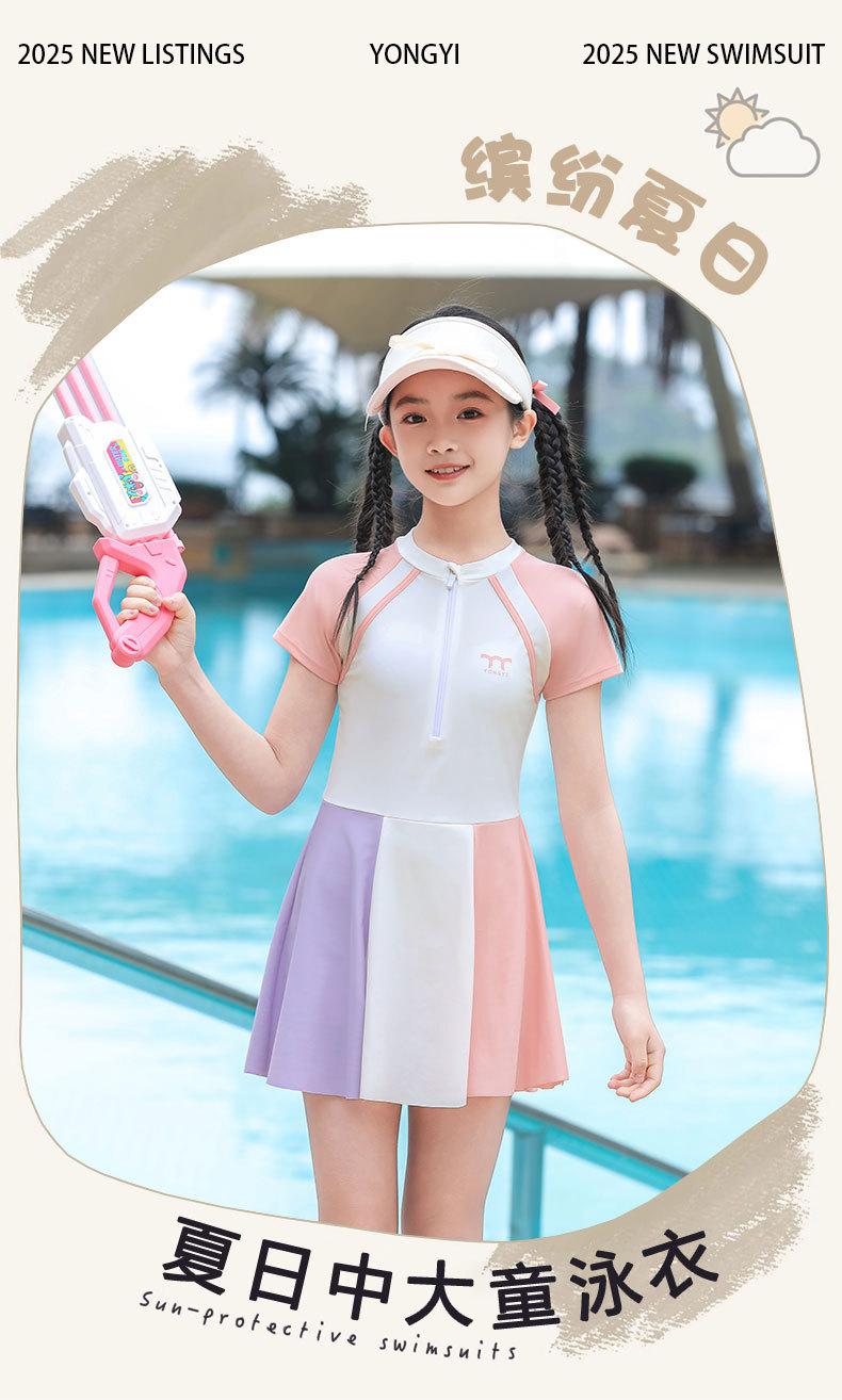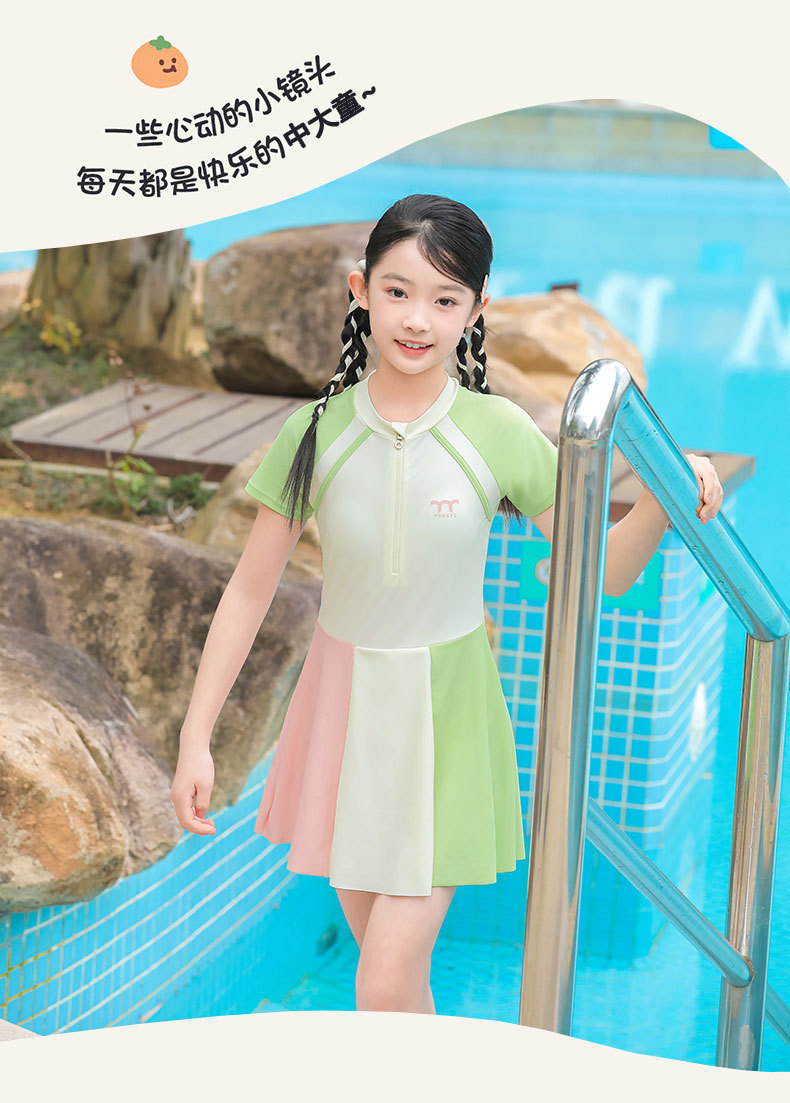 소녀들을 위한 새로운 어린이 수영복, 컬러 블록 원피스 스커트 스타일, 보수적이고 슬림하고 달콤한 학생 수영 훈련 휴가 수영복스토어 가기