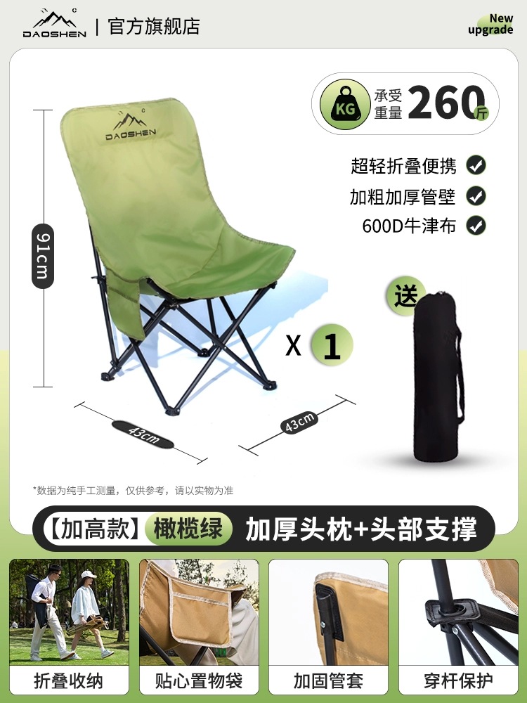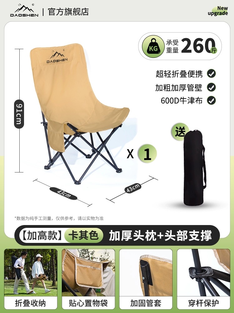 • 하이백 카키색과 면 버전 [3단 조절 가능, 앉거나 누울 수 있음]