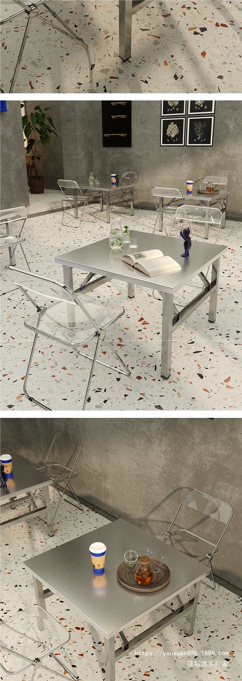 스테인레스 스틸 접이식 테이블, 가정용 접이식 테이블, 야외 매점, 상업용 야시장 매점, 작은 사각형 테이블, 간단한 식탁