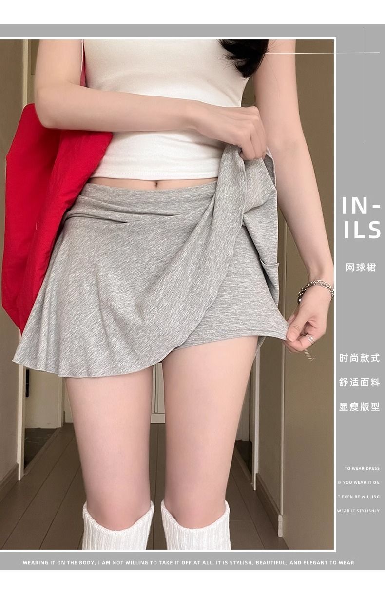 여성용 그레이 스포츠 스커트, 여름 테니스 스커트, 하이웨이스트 핫걸 노출 방지 A라인 힙 커버 스커트 도매스토어 가기