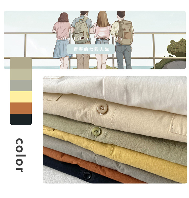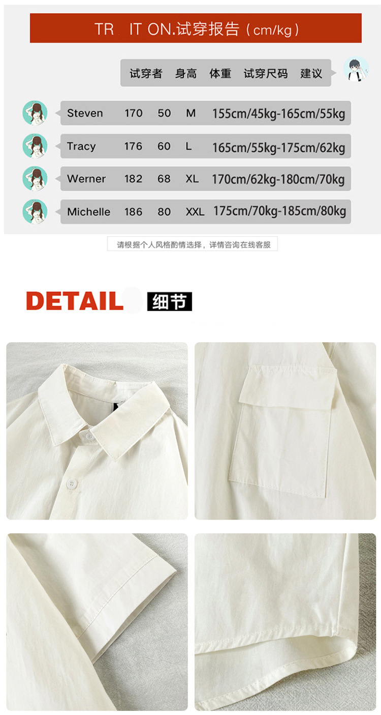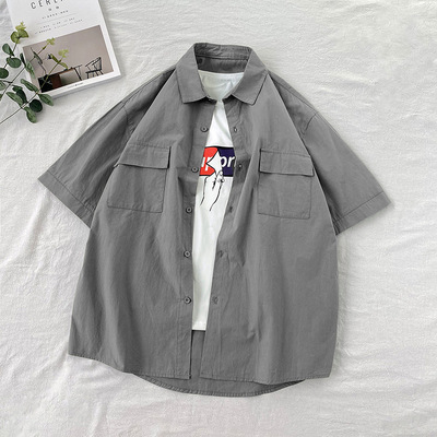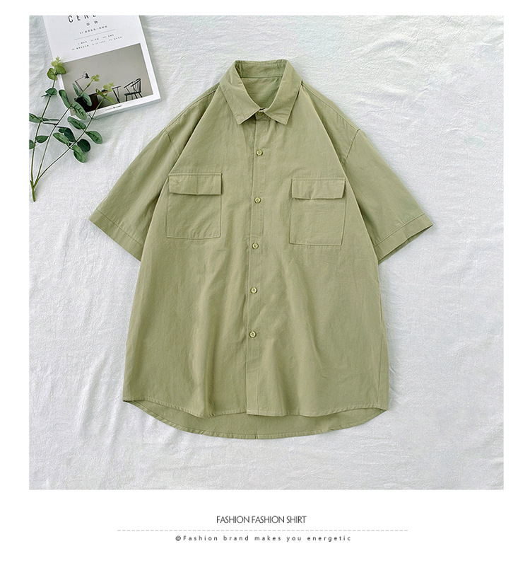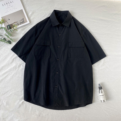 일본 솔리드 컬러 5부 소매 셔츠 남성용 루즈 여름 인 홍콩 스타일 커플 니치 미드 슬리브 라펠 셔츠 재킷