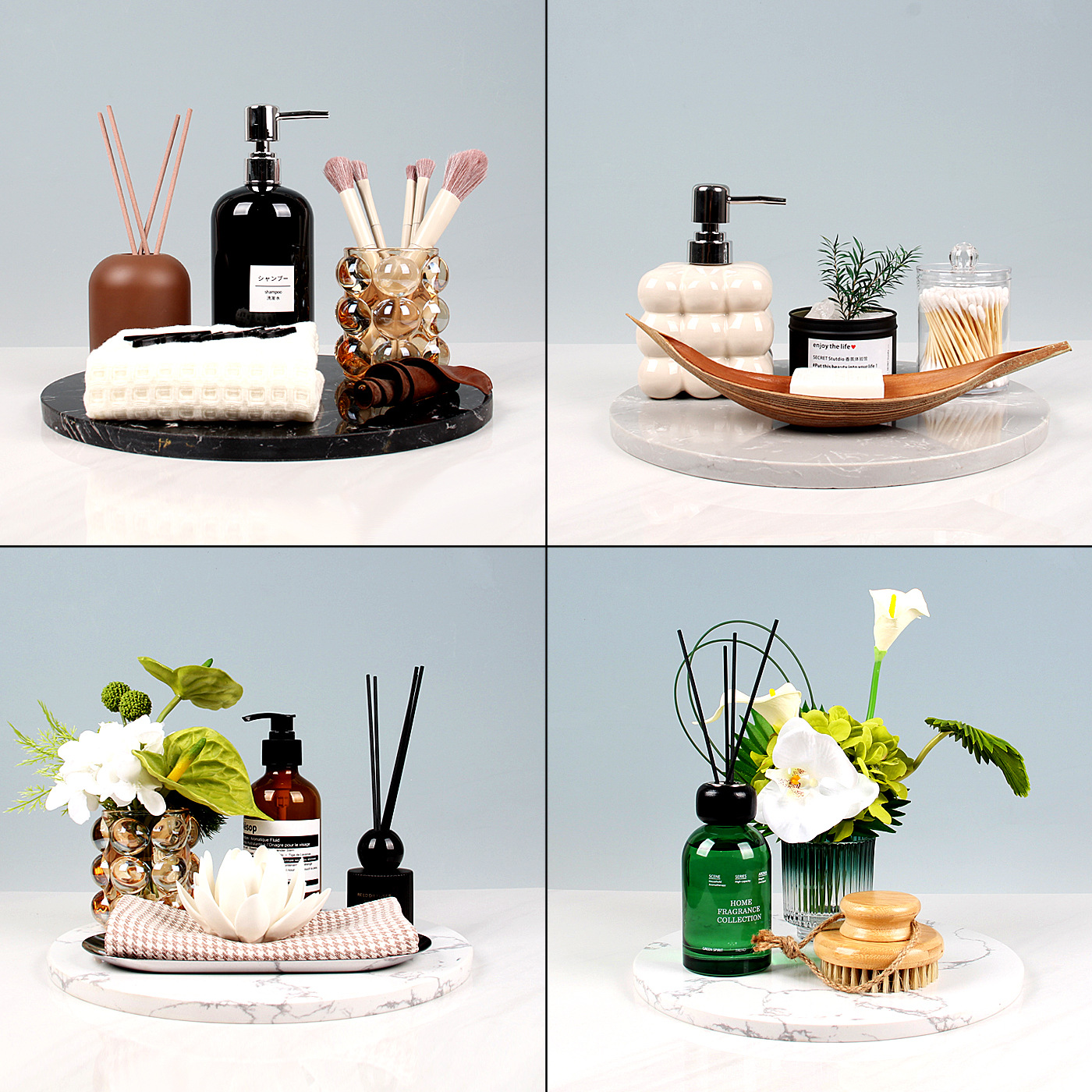 현대적인 미니멀리스트 모델 룸, 판매 사무실, 거실 커피 테이블, 데스크탑 스토리지 트레이, 장식품, 욕실 세트