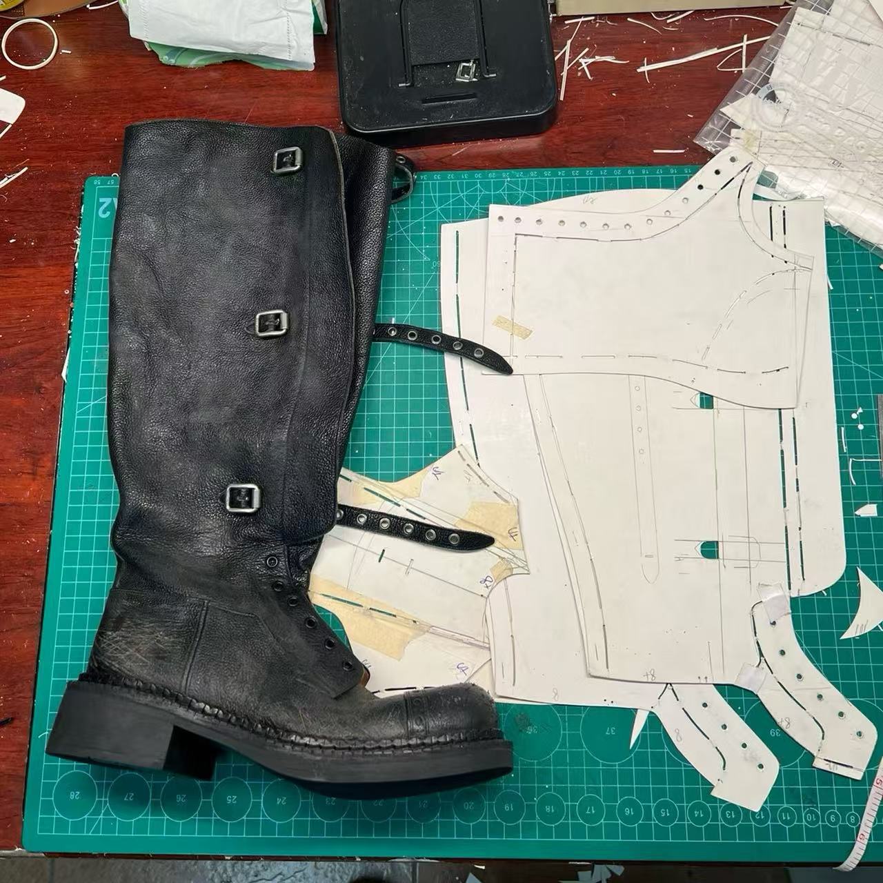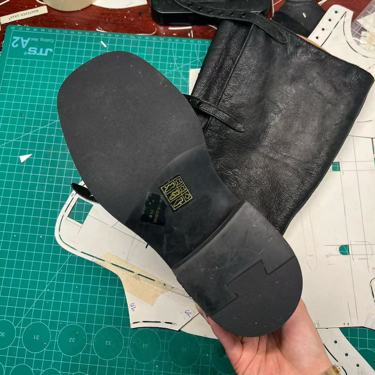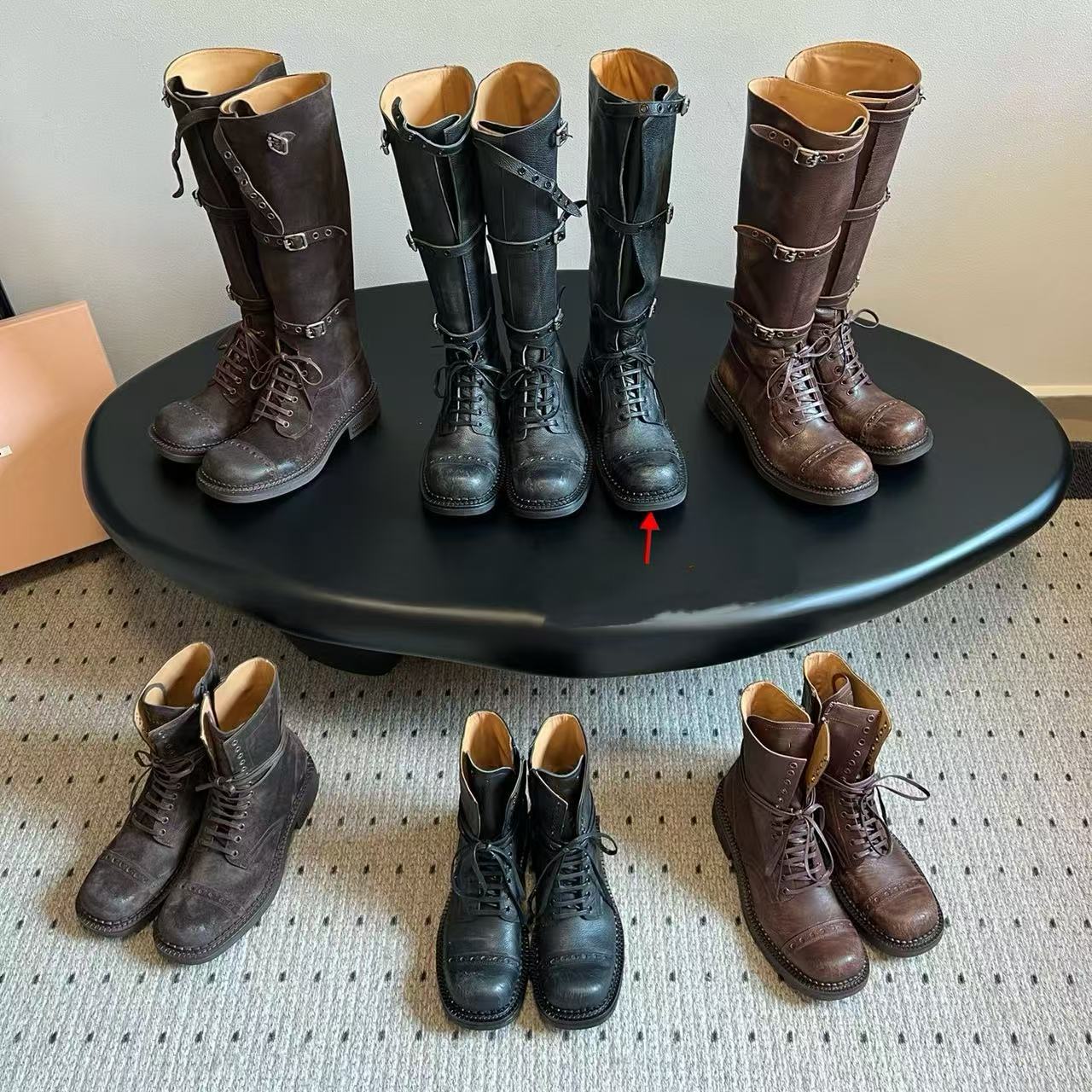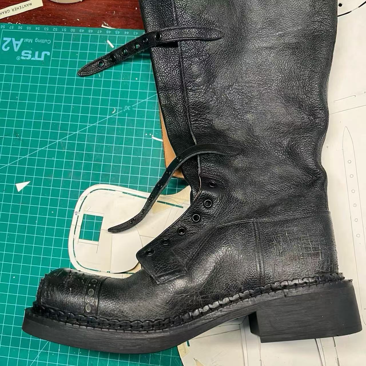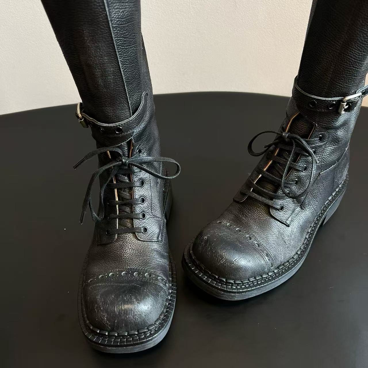 Miu Catwalk 여성용 키가 큰 마틴 부츠 2024 여성용 새로운 레트로 스퀘어 토 오토바이 부츠 짧은 부츠스토어 가기
