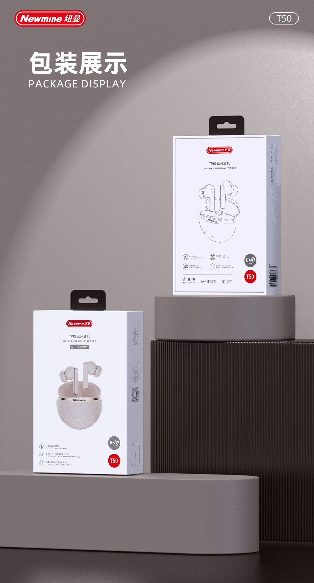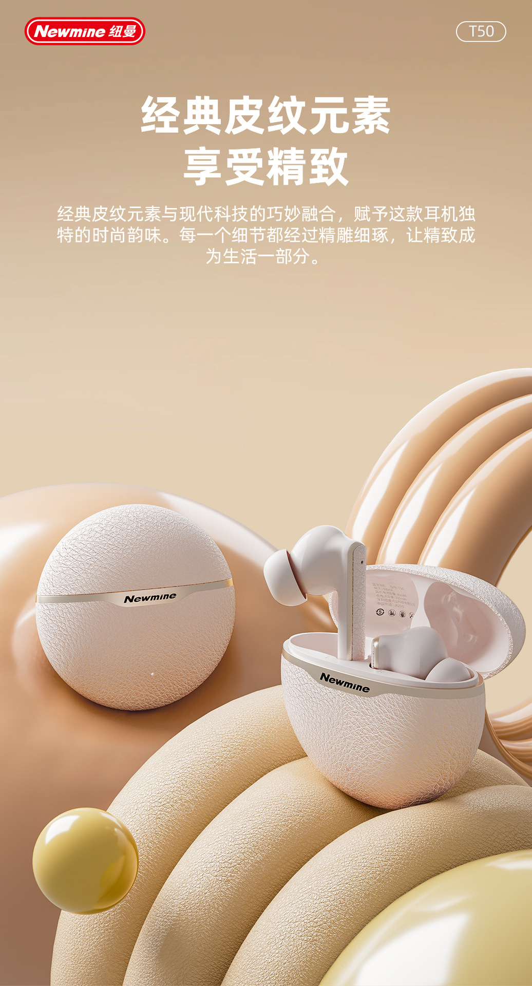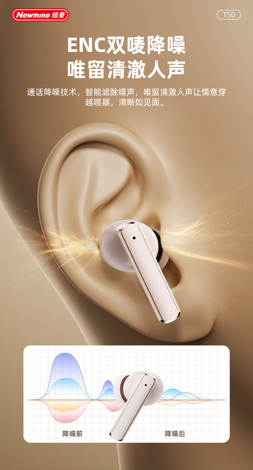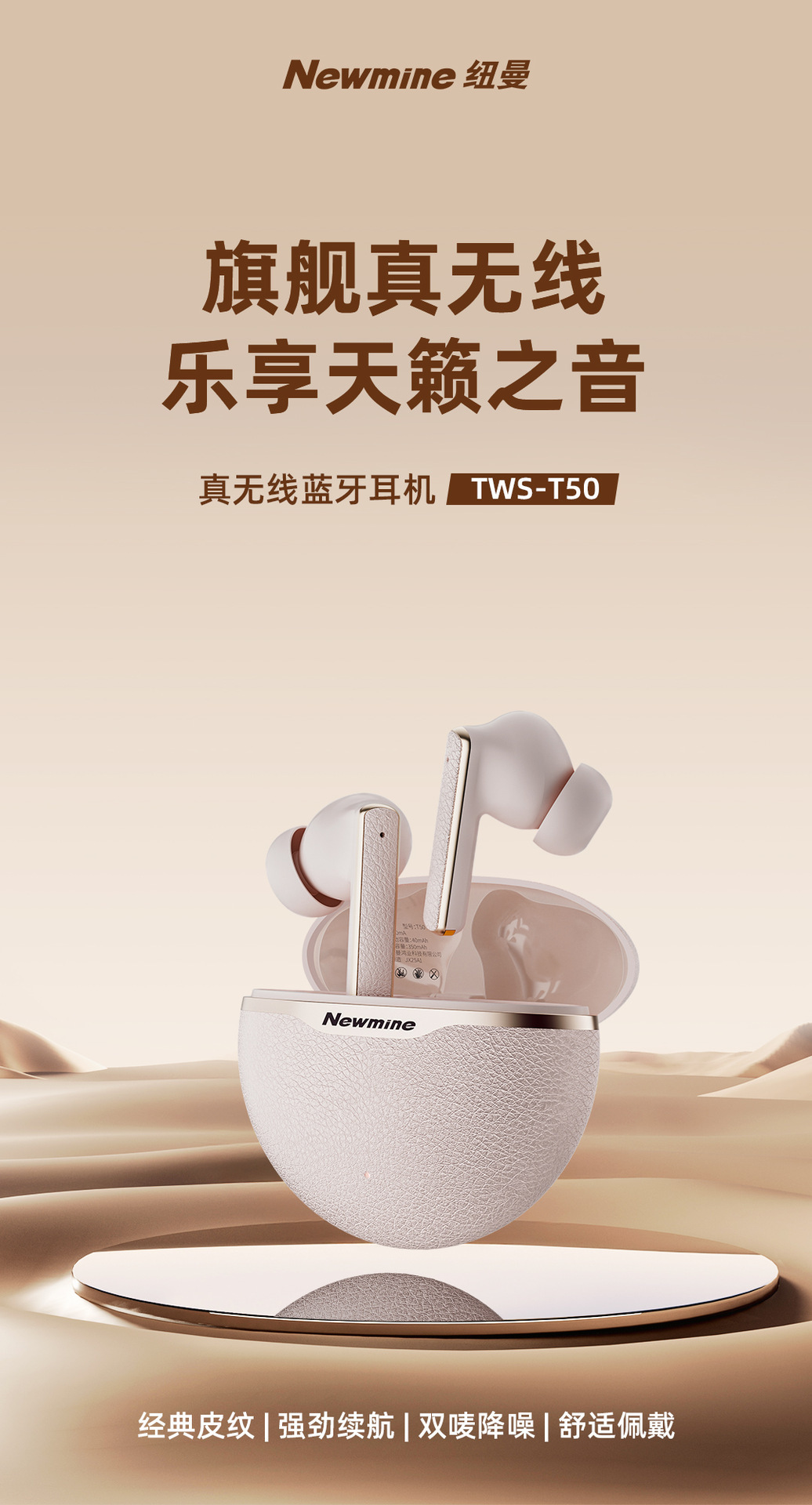 Newman T50TWS 블루투스 헤드셋에 적합 EMC 듀얼 마이크 소음 감소 스포츠 및 레저 클래식 가죽 질감은 선물로 공동 구매할 수 있습니다스토어 가기