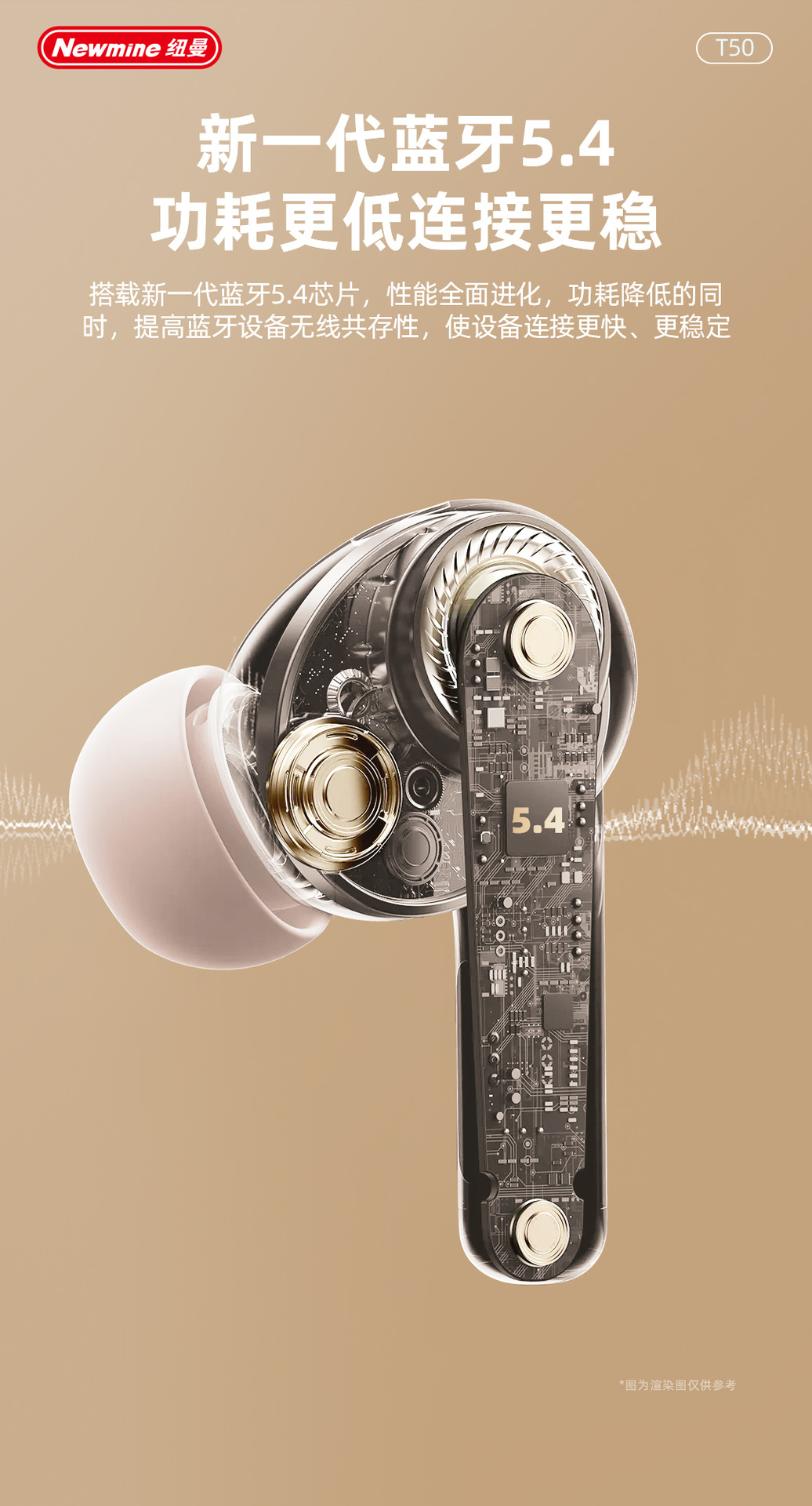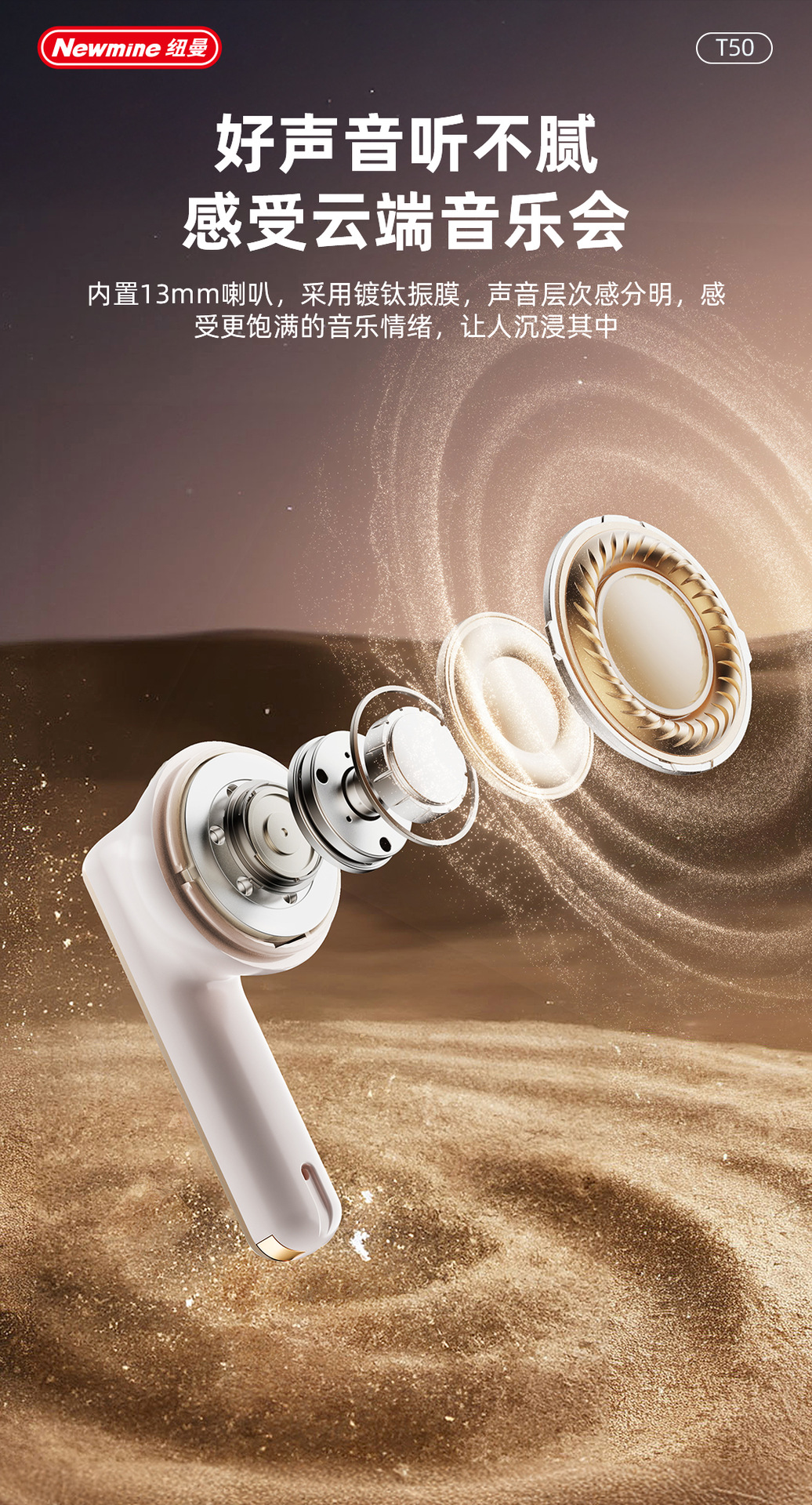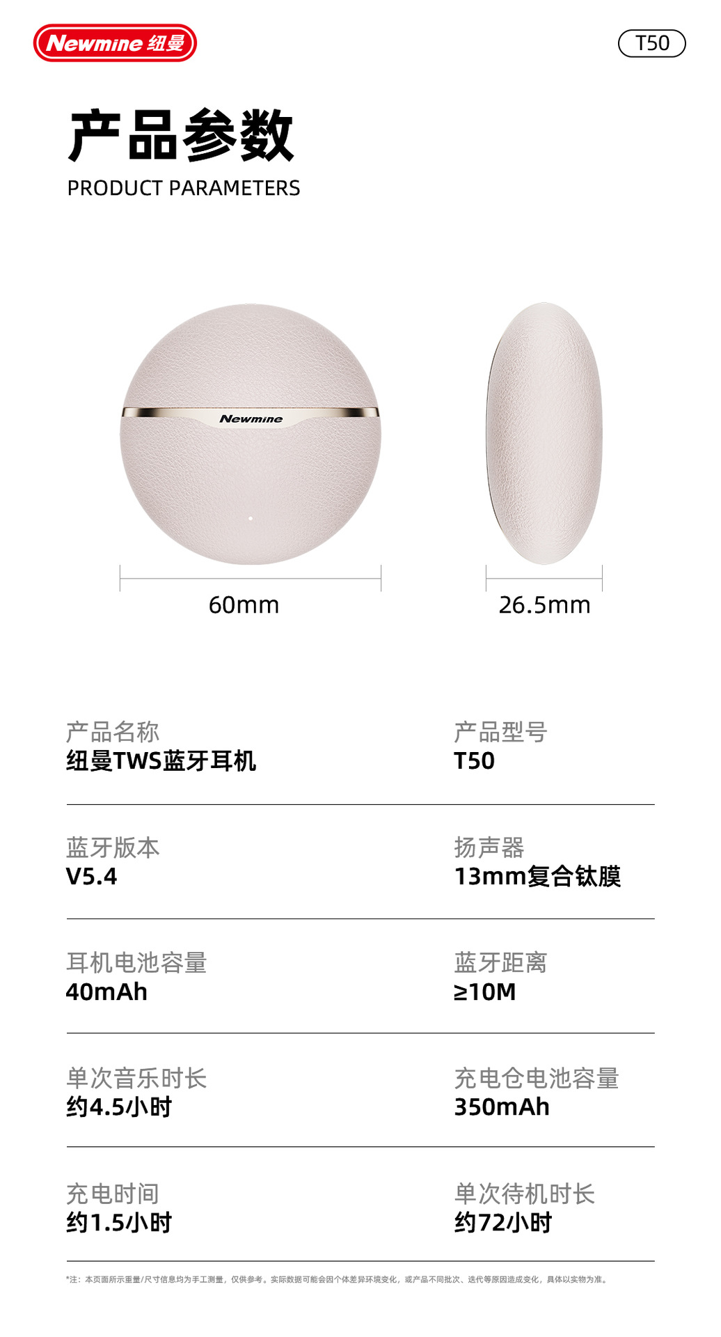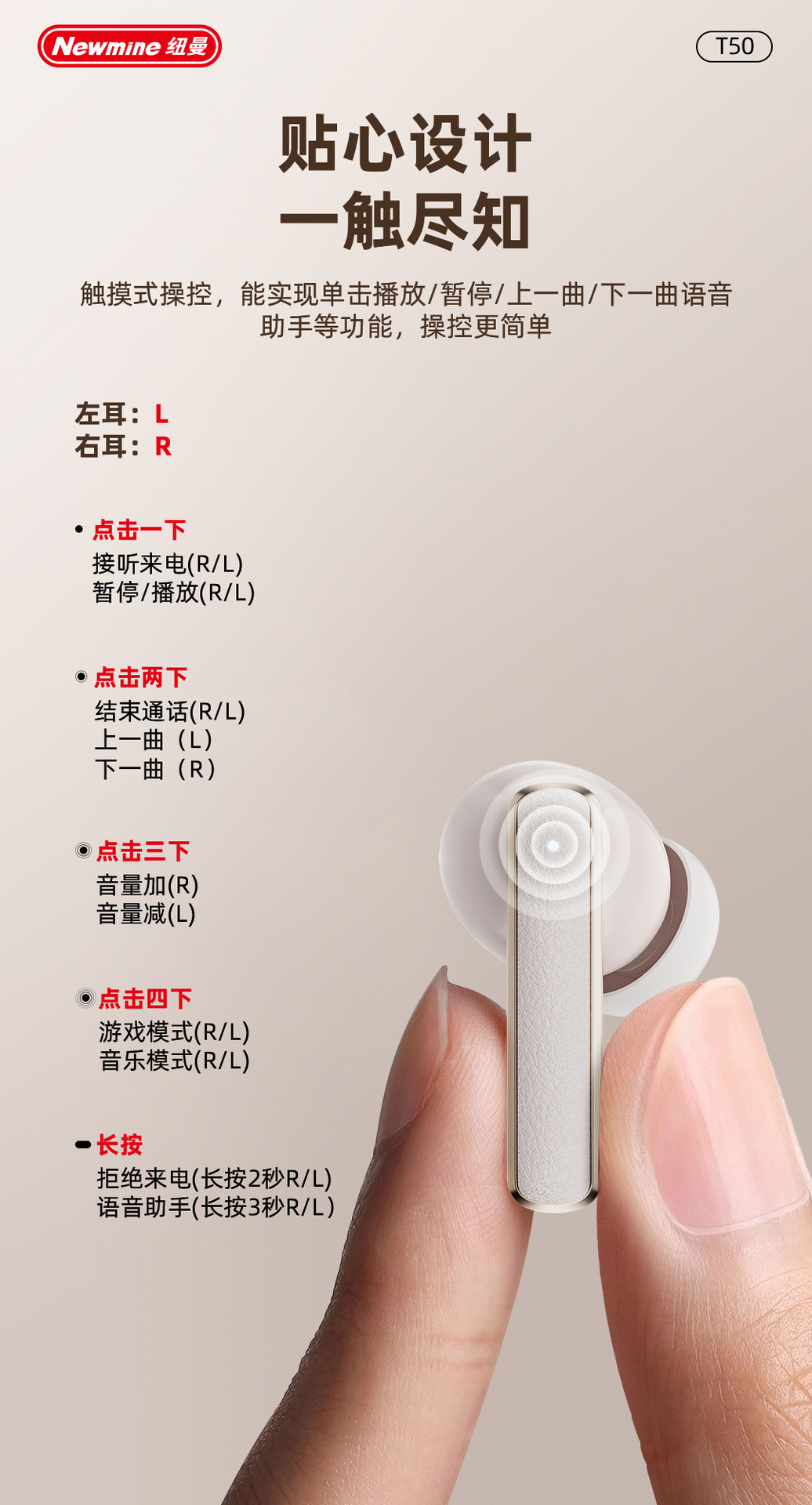 Newman T50TWS 블루투스 헤드셋에 적합 EMC 듀얼 마이크 소음 감소 스포츠 및 레저 클래식 가죽 질감은 선물로 공동 구매할 수 있습니다스토어 가기