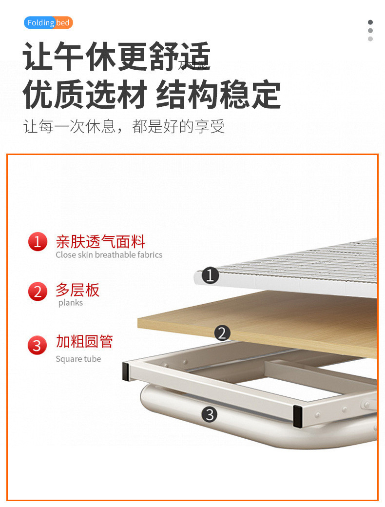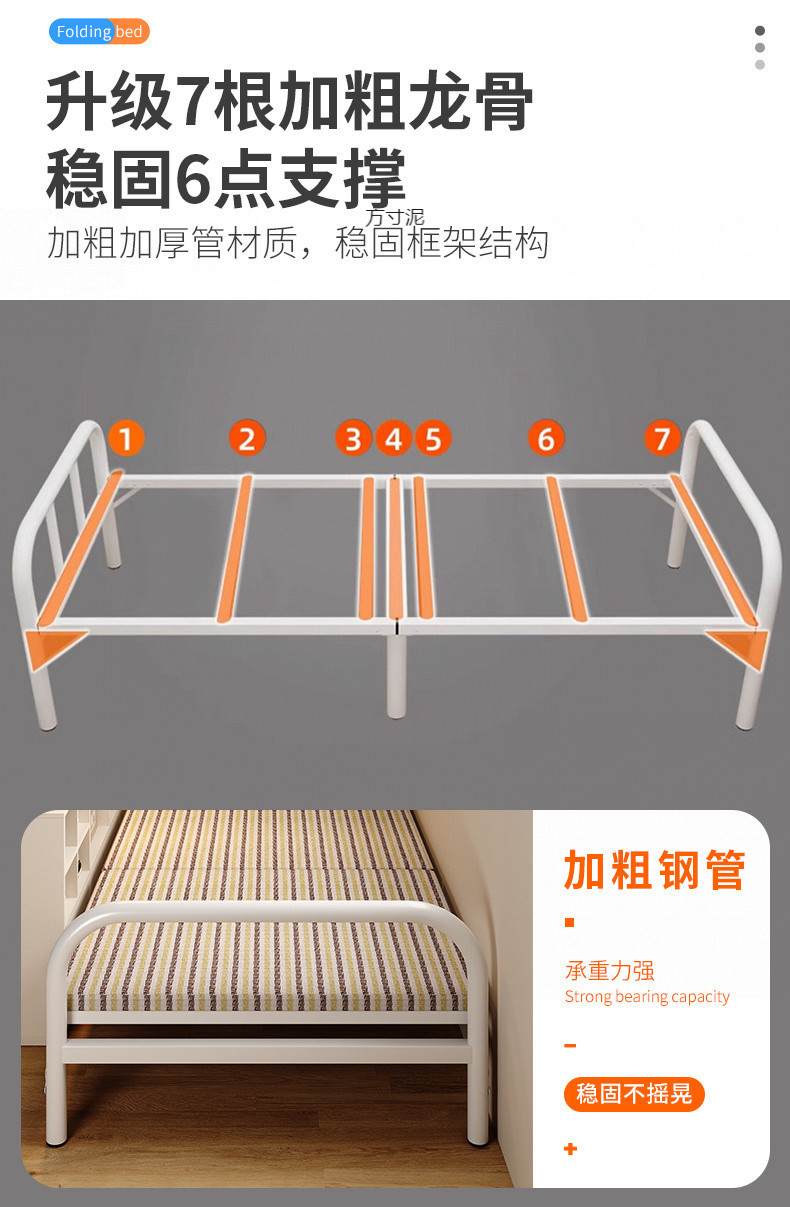 설치가 필요 없는 접이식 침대, 가정용 싱글 침대, 간이 사무실 점심시간용 간이 침대, 단단한 침대, 임대 주택용 철제 침대