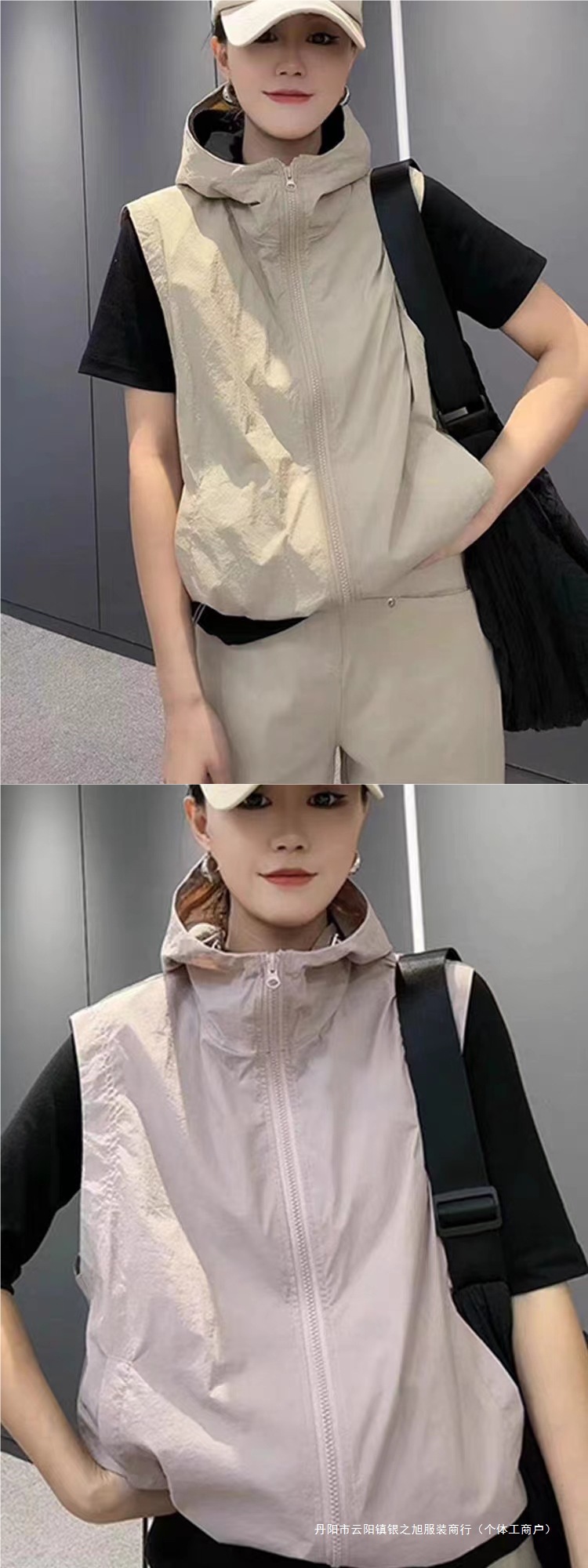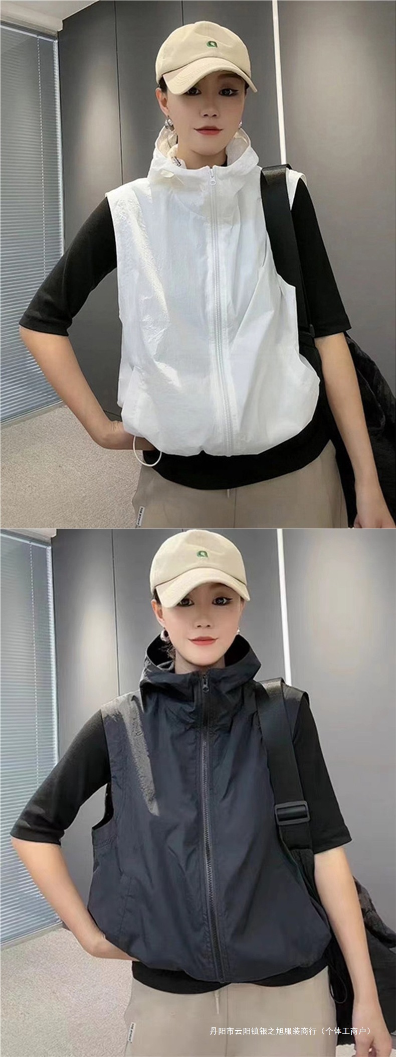 후드 민소매 통기성 재킷 조끼 재킷 여성 2024 봄, 여름 새로운 태양 보호 재킷 다목적 캐주얼 탑 카디건스토어 가기