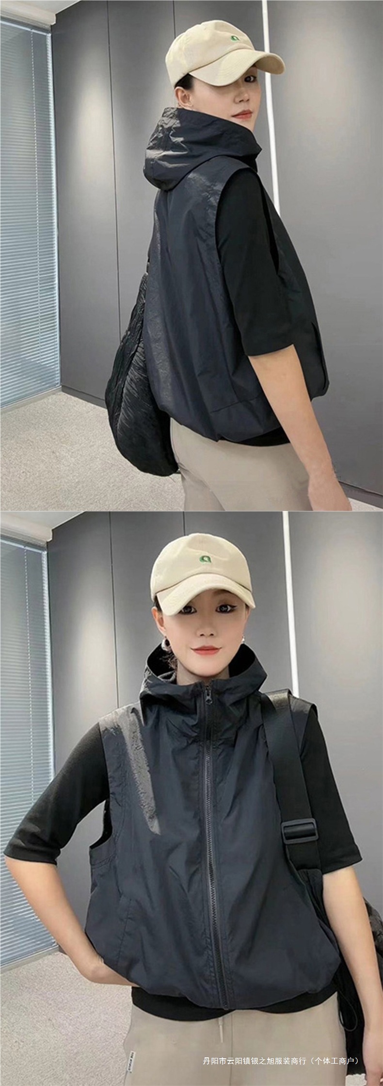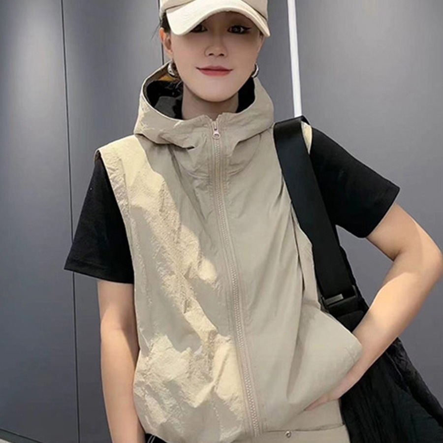 후드 민소매 통기성 재킷 조끼 재킷 여성 2024 봄, 여름 새로운 태양 보호 재킷 다목적 캐주얼 탑 카디건