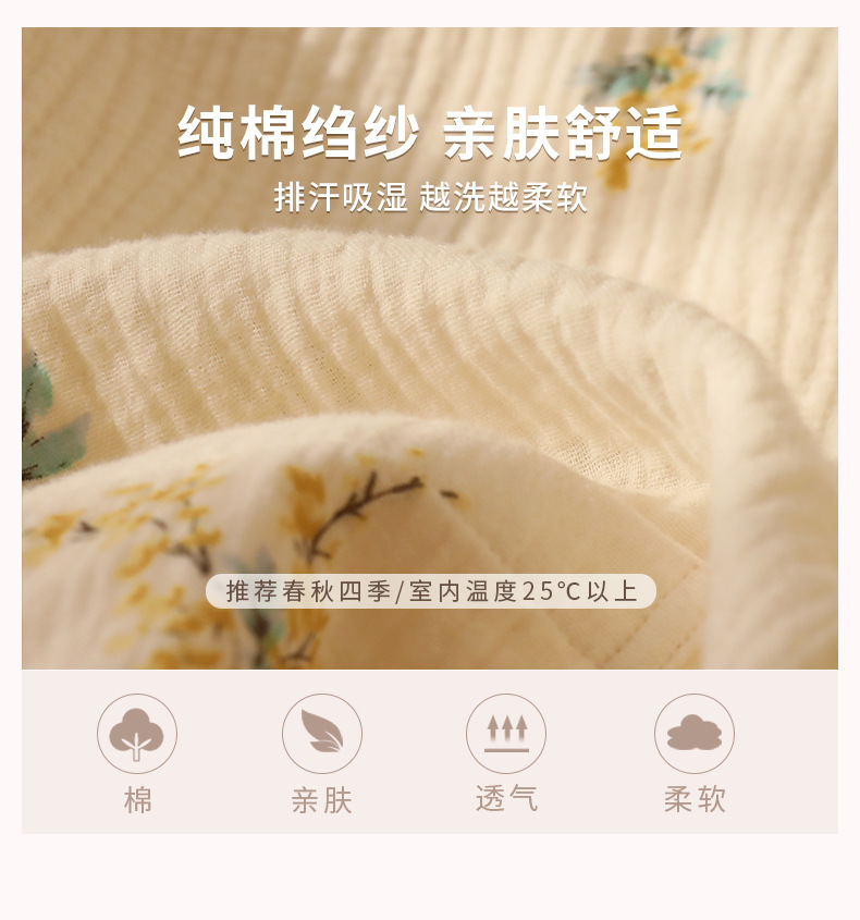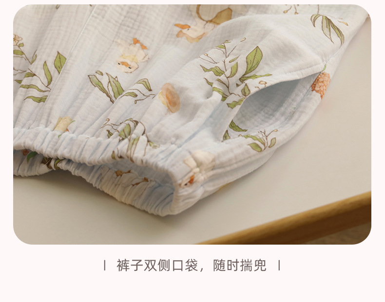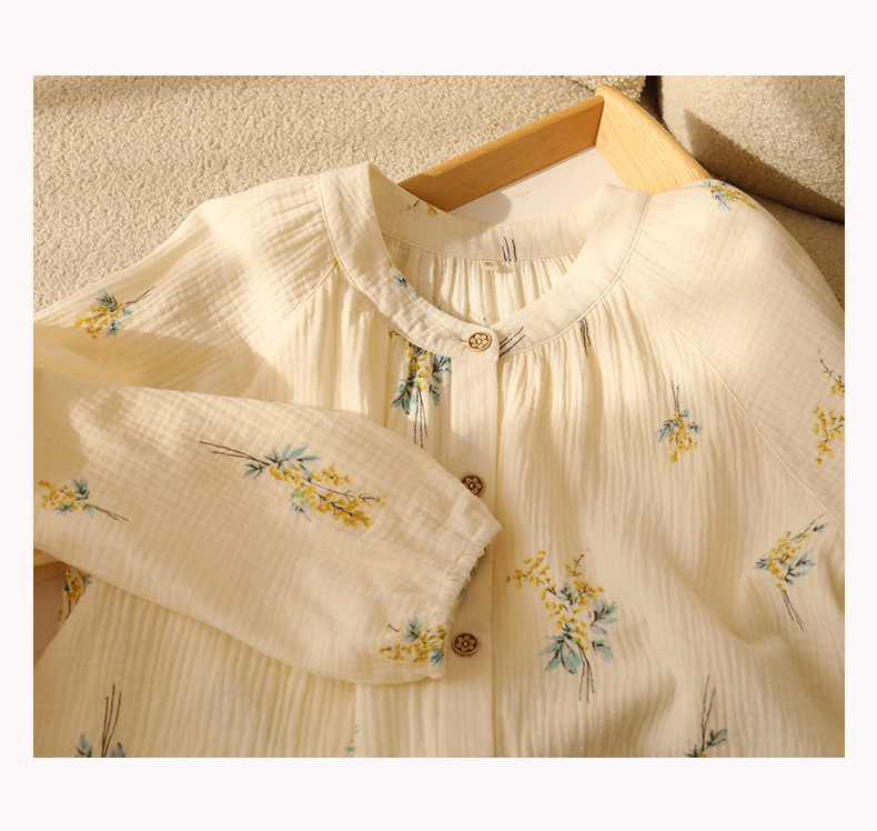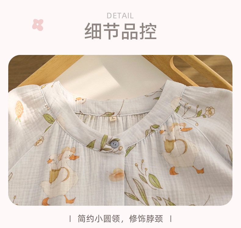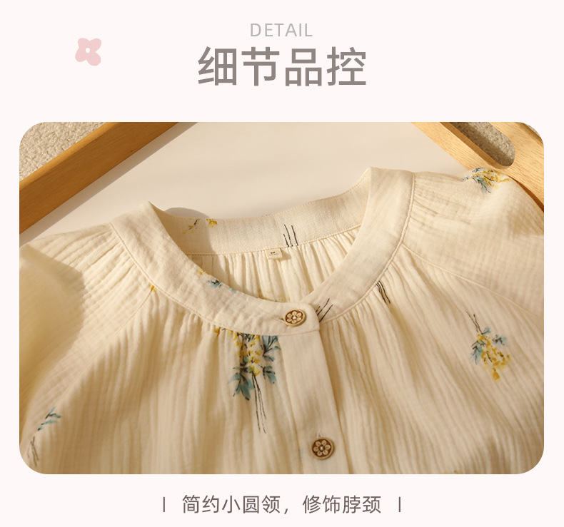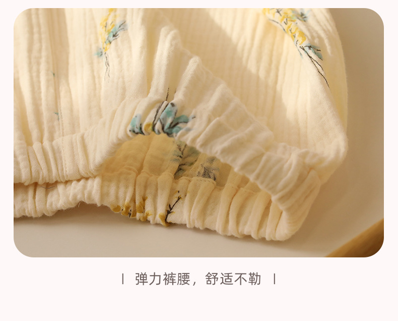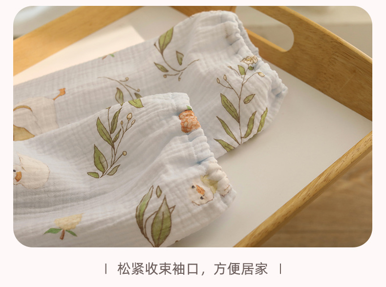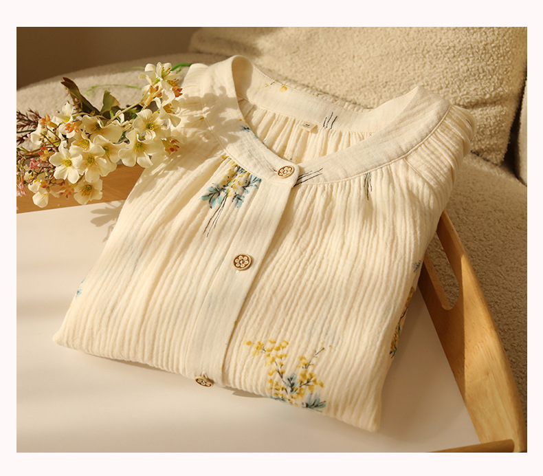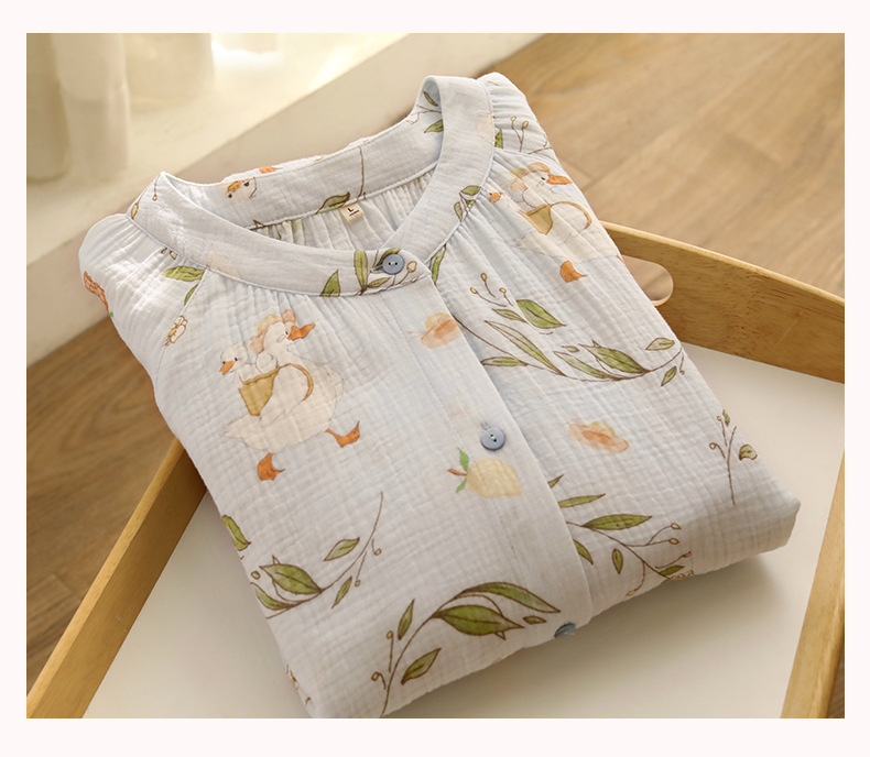 여성을위한 얇은 순수 코튼 거즈 잠옷 긴팔 캐주얼 게으른 인쇄 긴팔 바지 잠옷 여성 홈웨어 세트스토어 가기