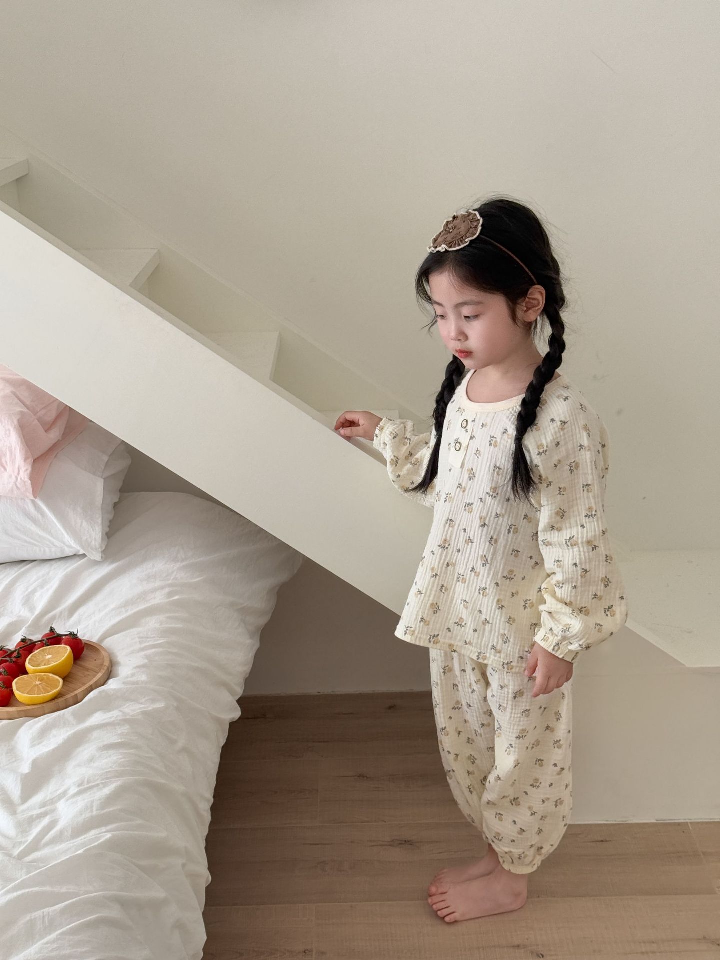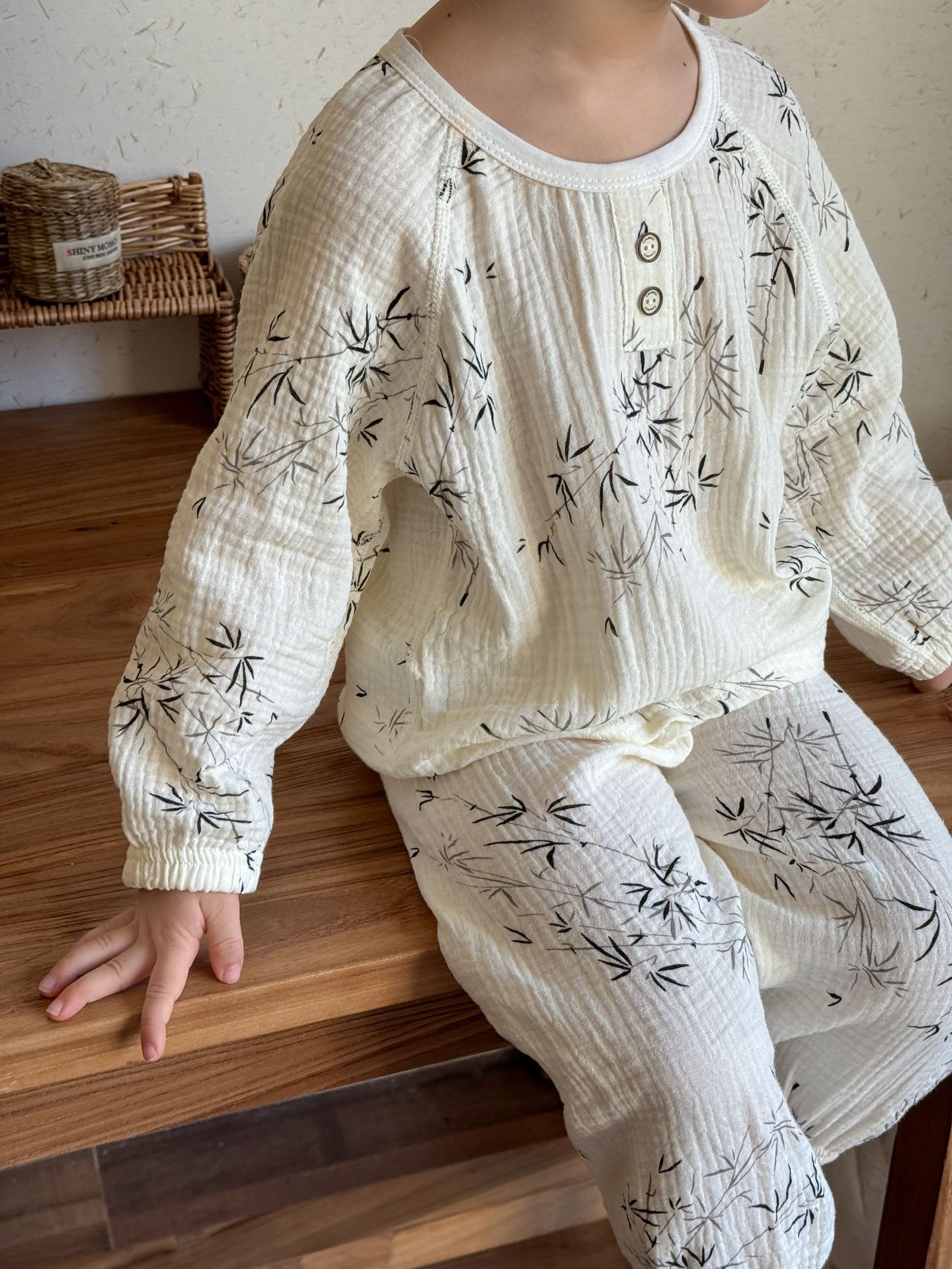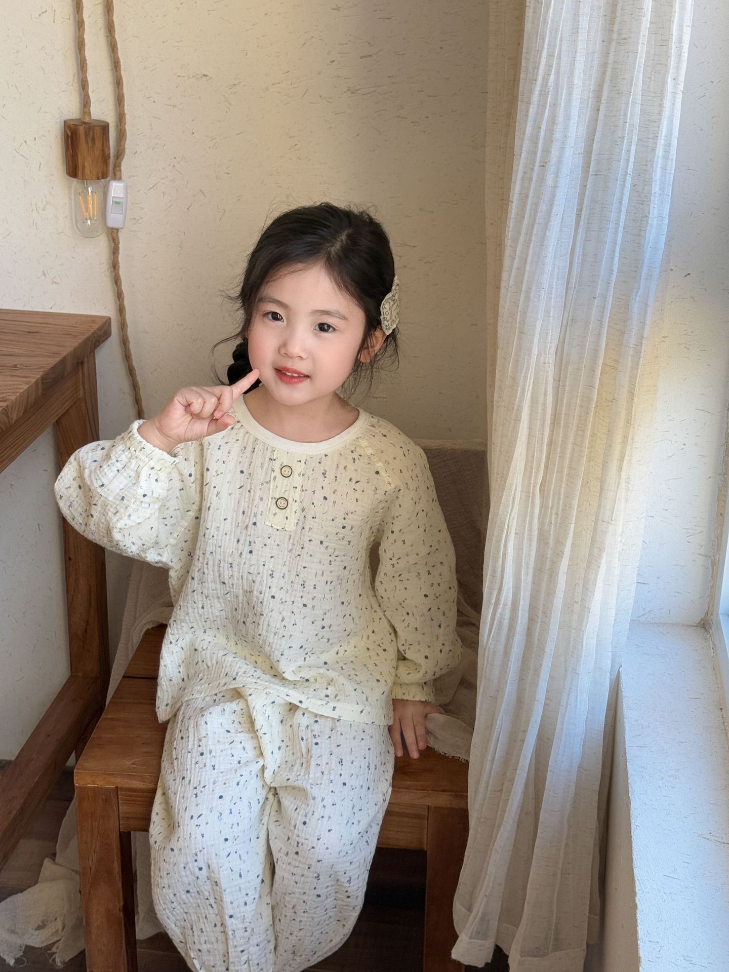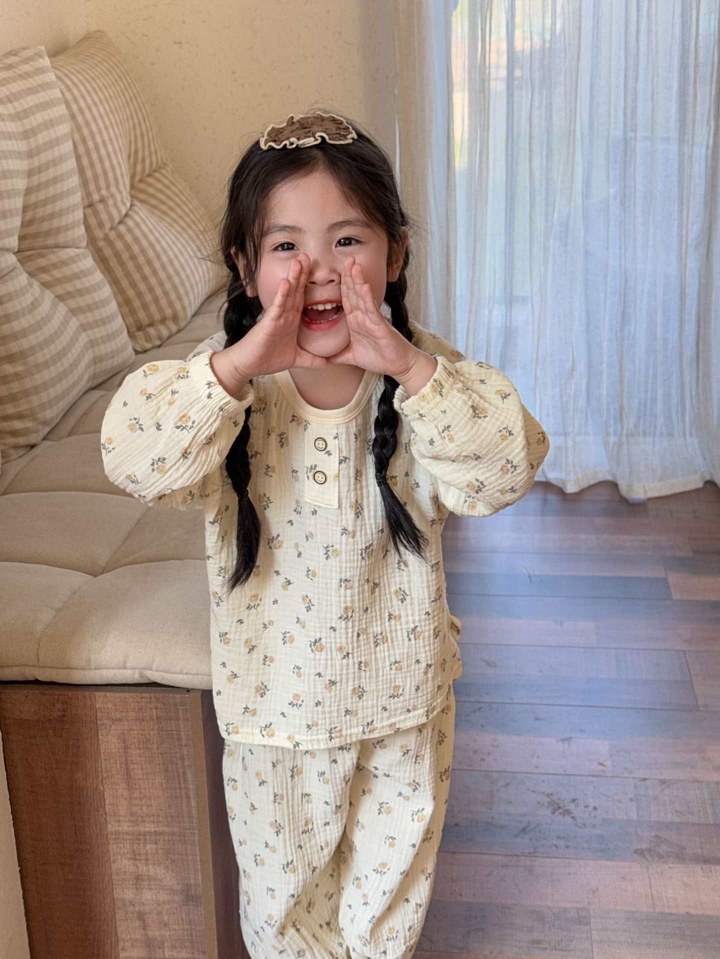 2025 새로운 어린이 뼈없는 순수 코튼 거즈 잠옷 봄과 여름 코튼 거즈 홈 의류 소녀 느슨한 긴팔 에어컨 옷스토어 가기