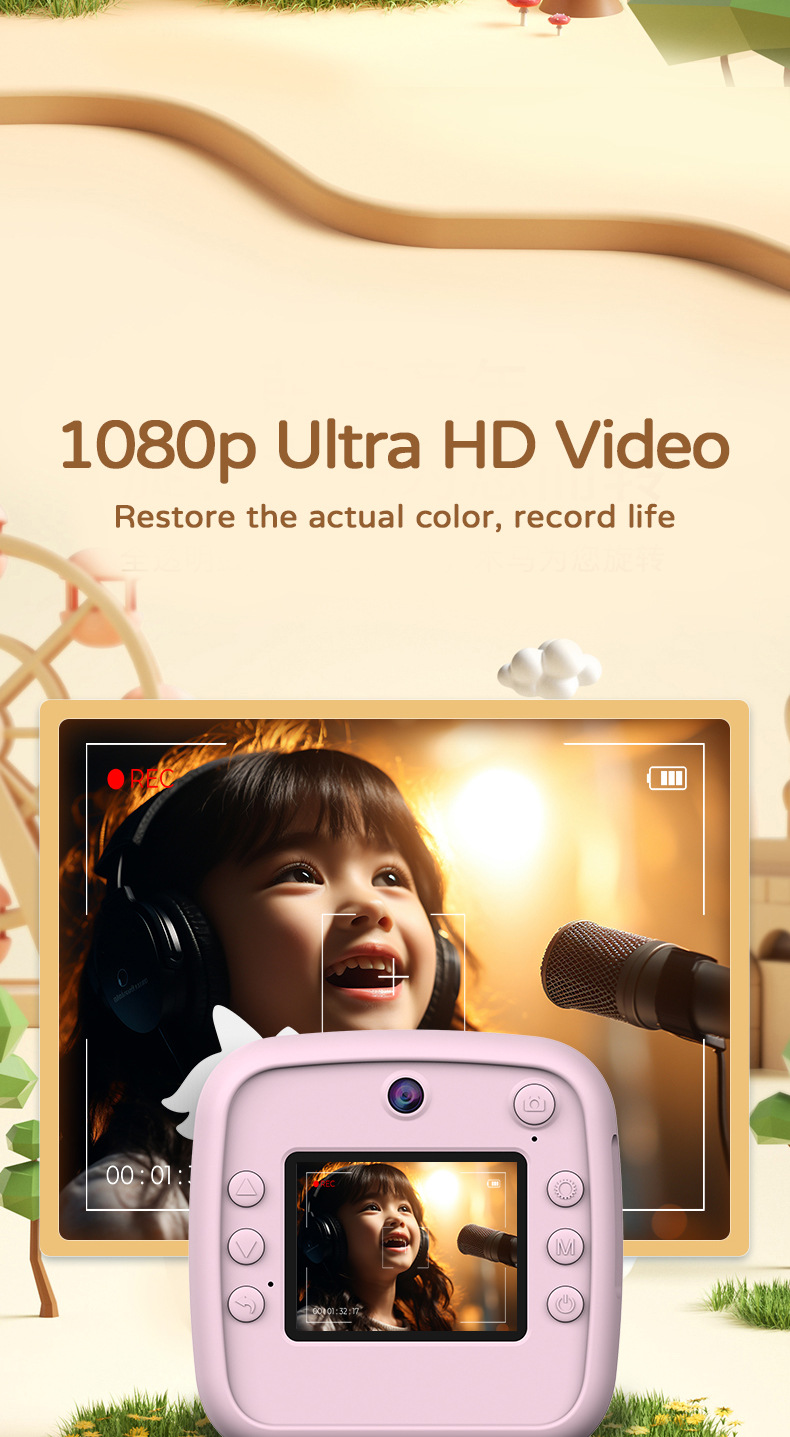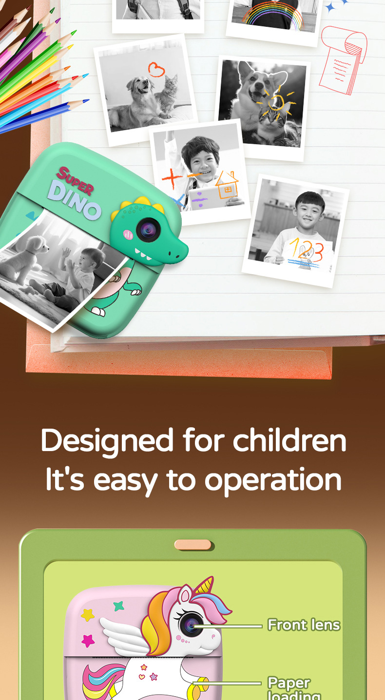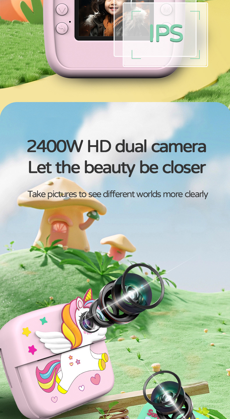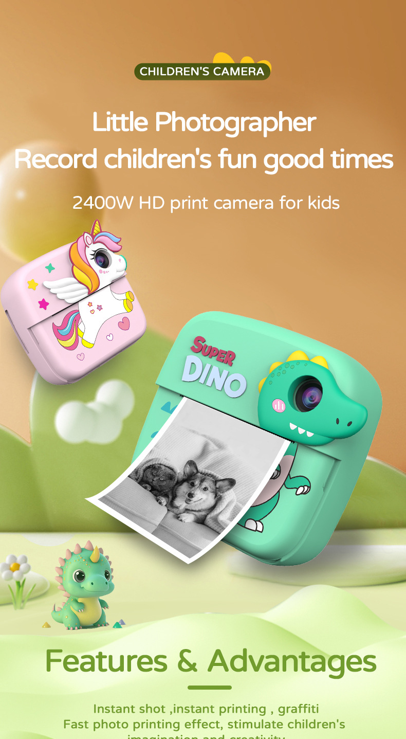 국경 간 미니 고화질 어린이 폴라로이드 인쇄 카메라 아기 귀여운 만화 게임 디지털 SLR 카메라