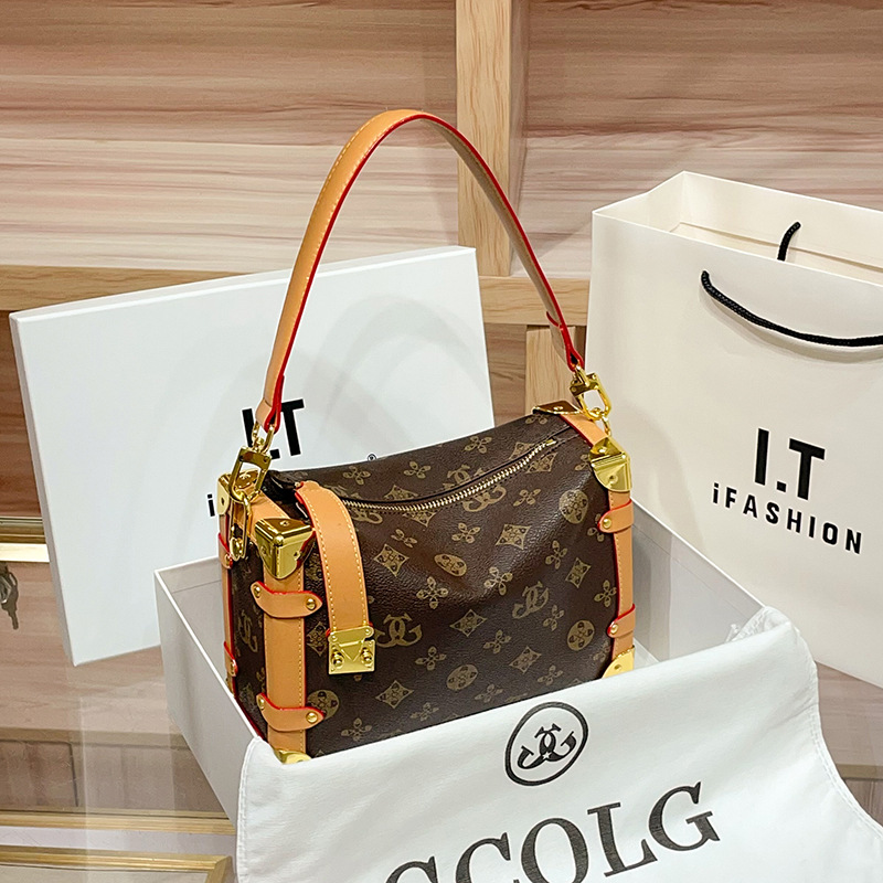 레트로 패션 유럽과 미국의 복고풍 소프트 박스 싱글 숄더 크로스 바디 겨드랑이 작은 사각형 가방 여성 하이 엔드 새로운 트렌디 라이트 럭셔리스토어 가기