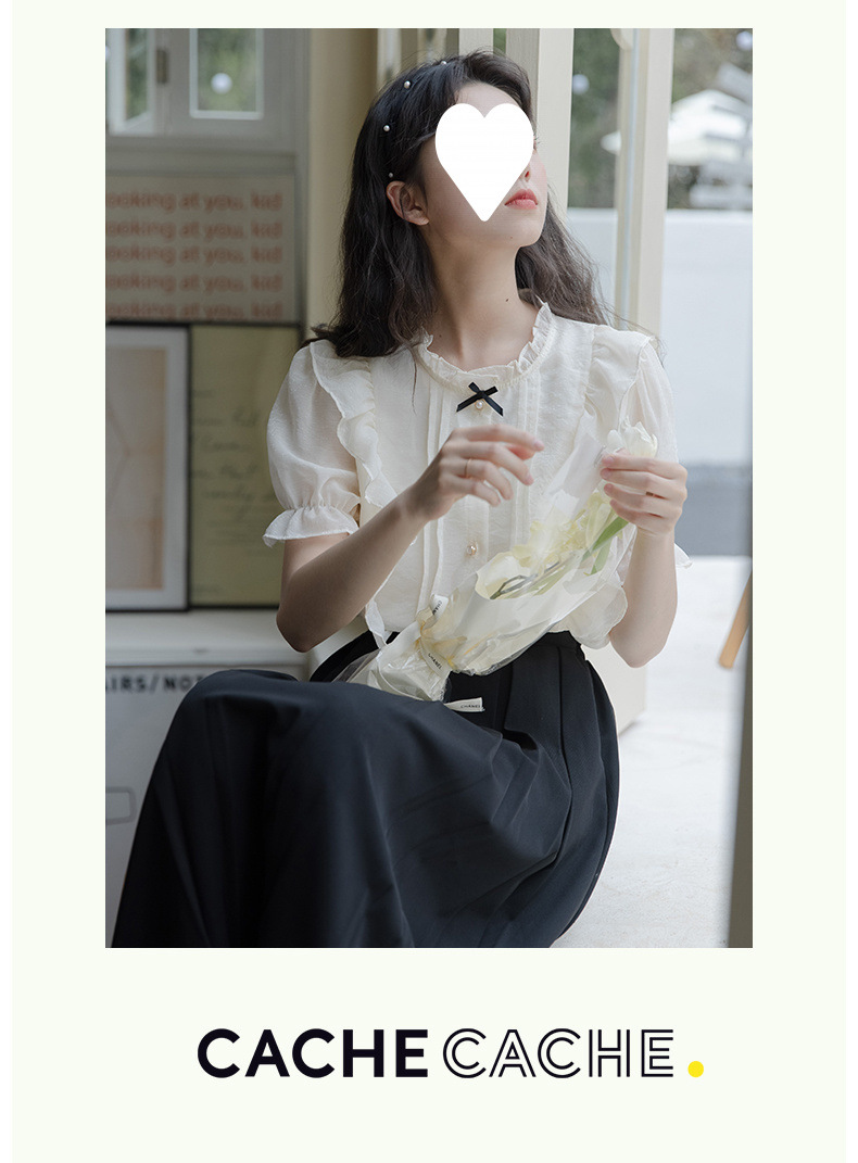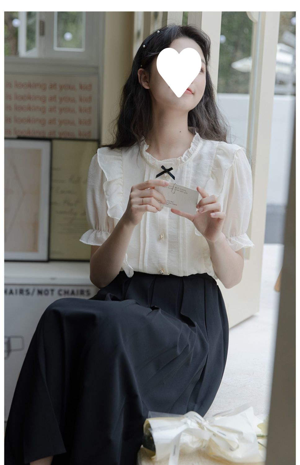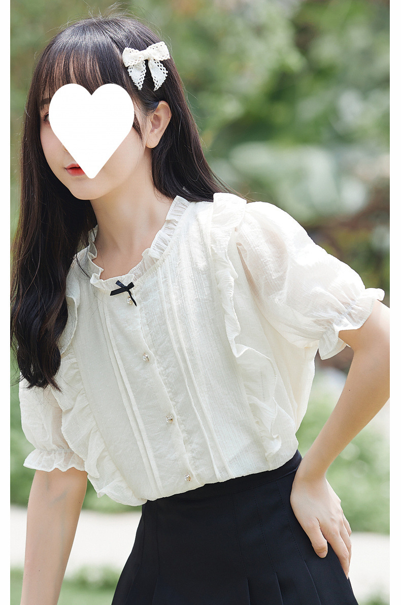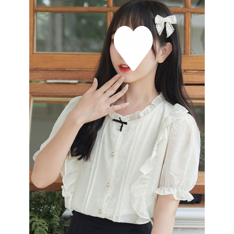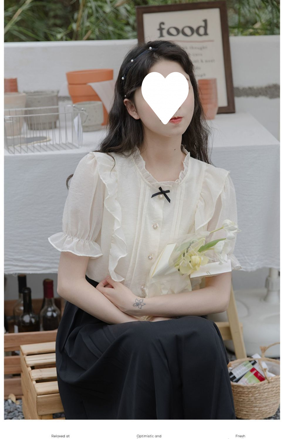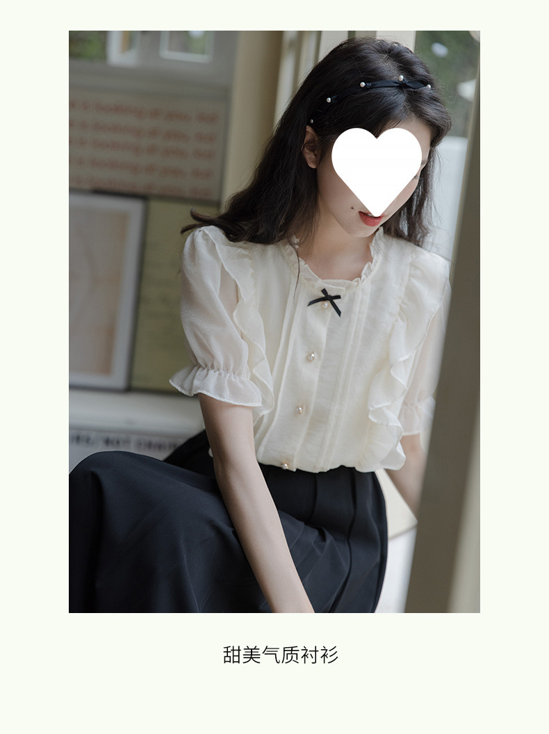 여성용 러플 쉬폰 반팔 셔츠 여름 2025 새로운 스타일 프렌치 스위트 루즈 슬리밍