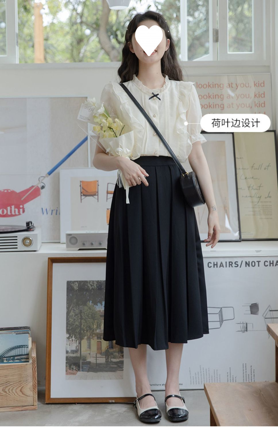 여성용 러플 쉬폰 반팔 셔츠 여름 2025 새로운 스타일 프렌치 스위트 루즈 슬리밍스토어 가기