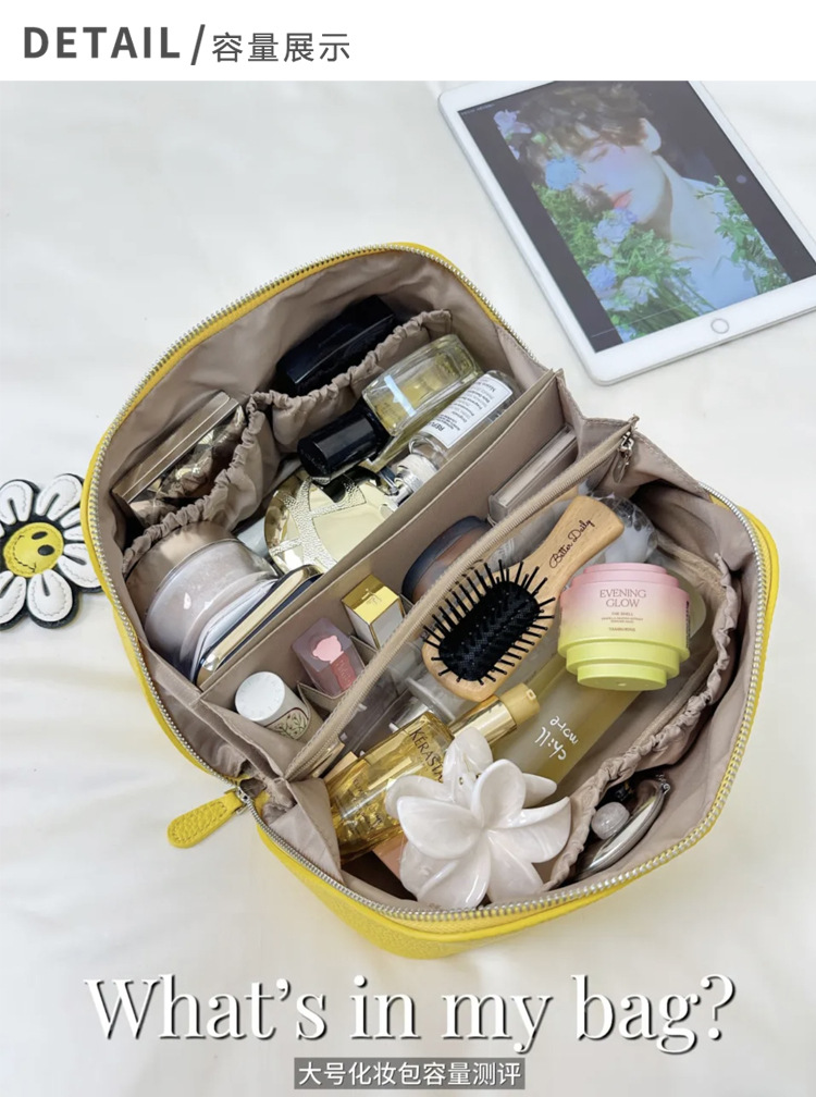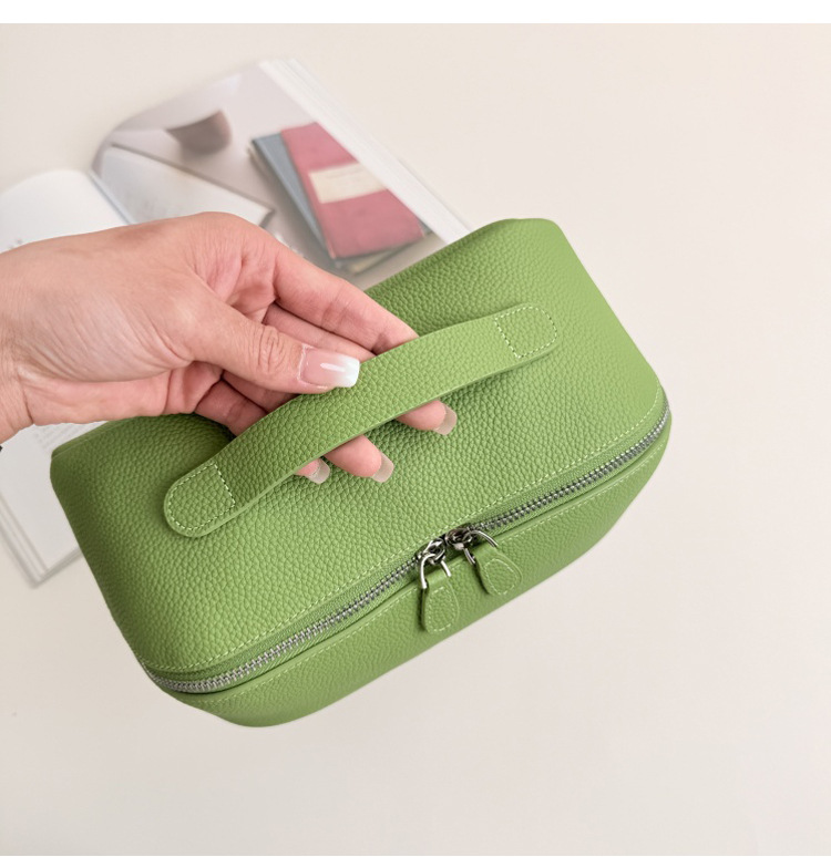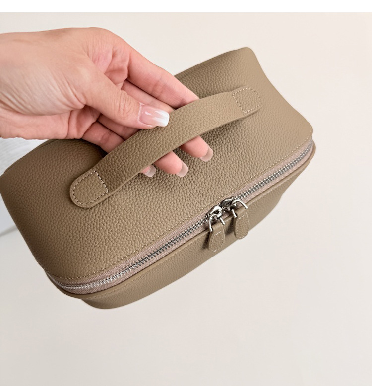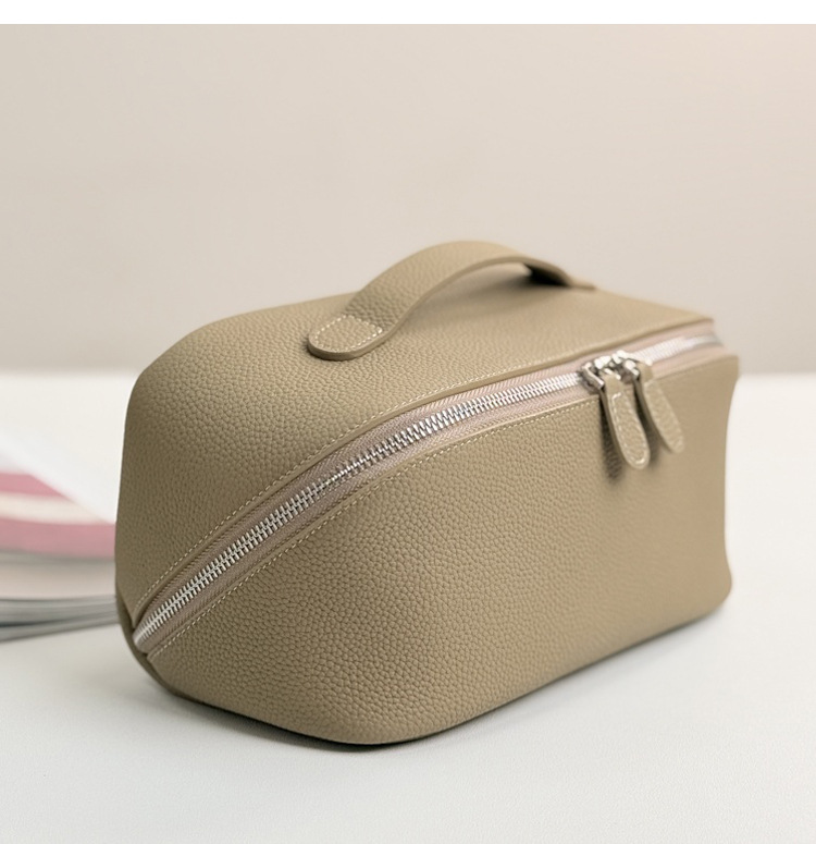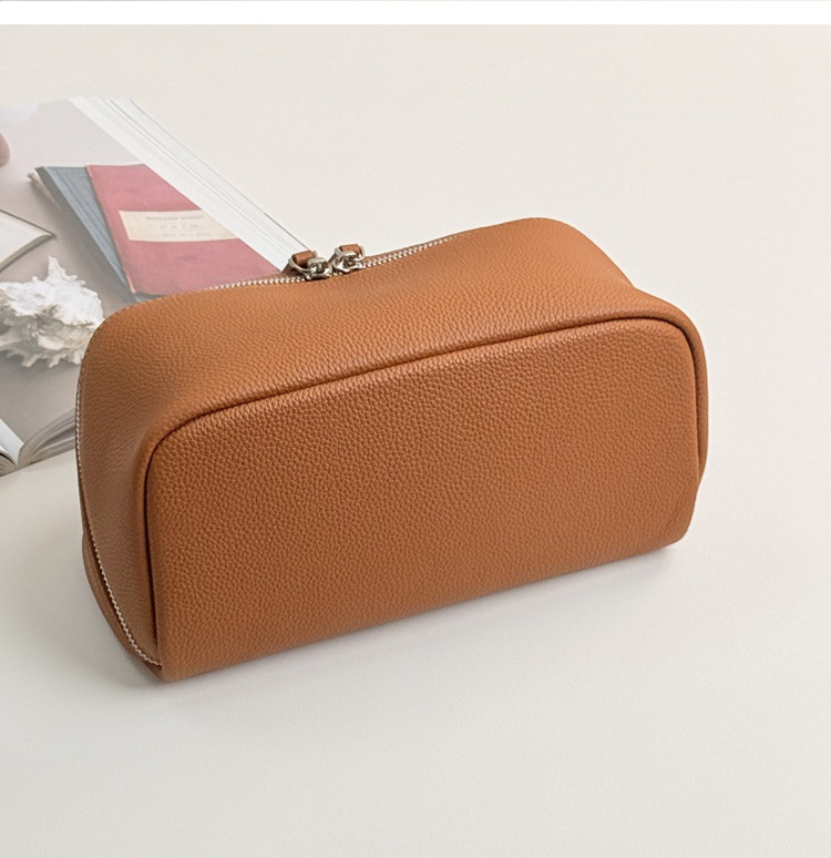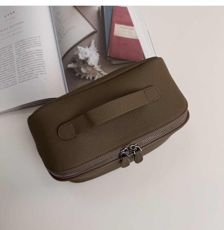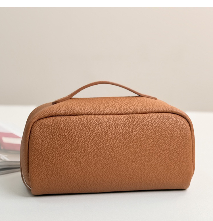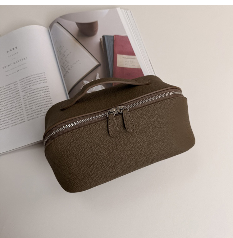 1등급 소가죽 립스틱 화장품 가방, 천연 가죽 여행용 휴대용 세면도구 가방, 대용량 수납 가방, 고급스러운 미니멀리즘 스타일스토어 가기