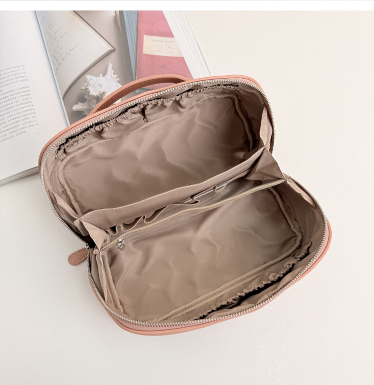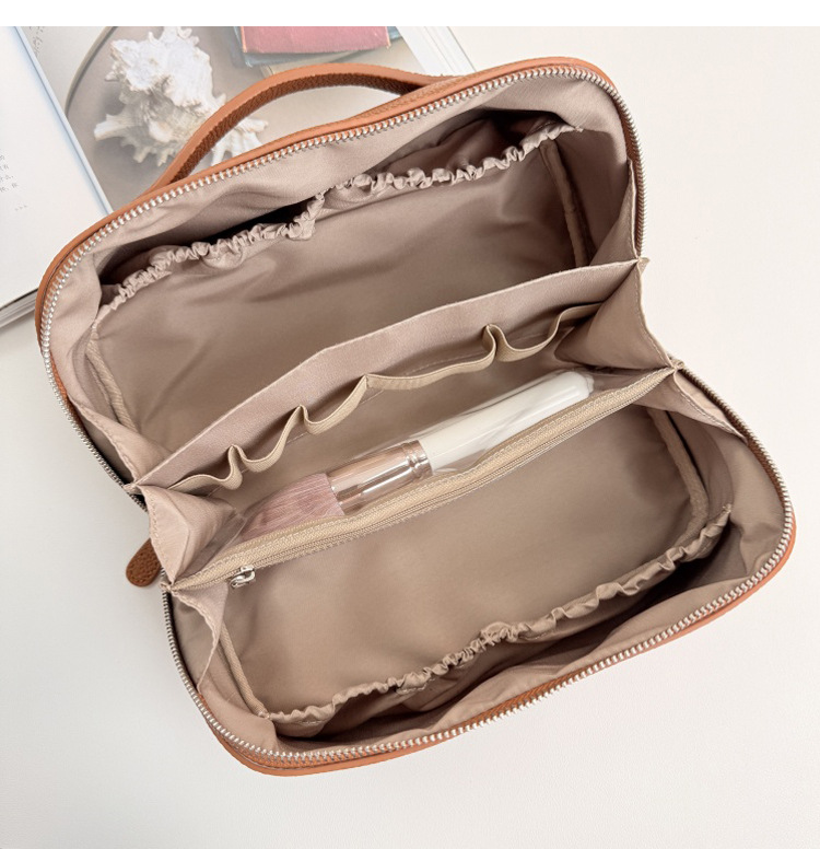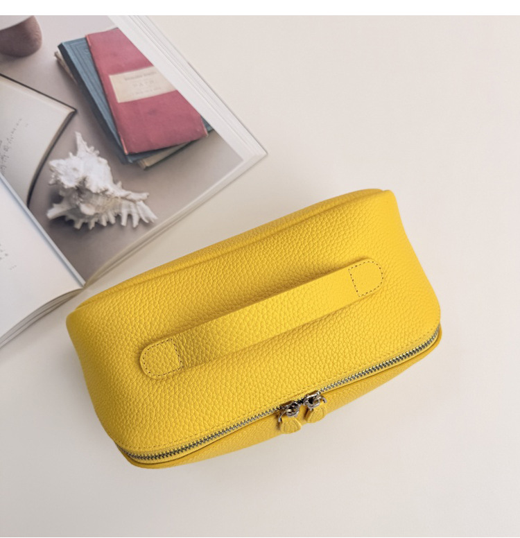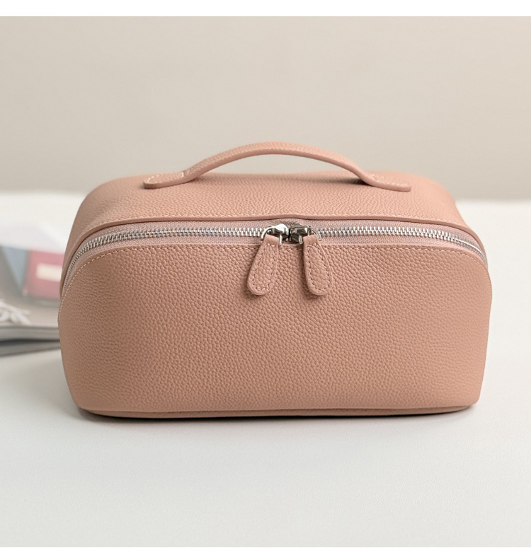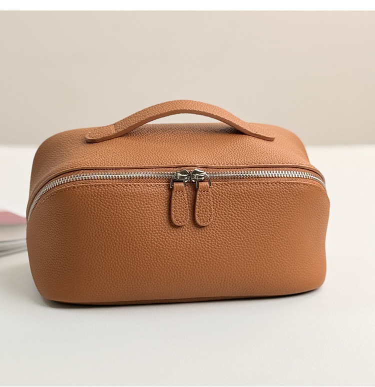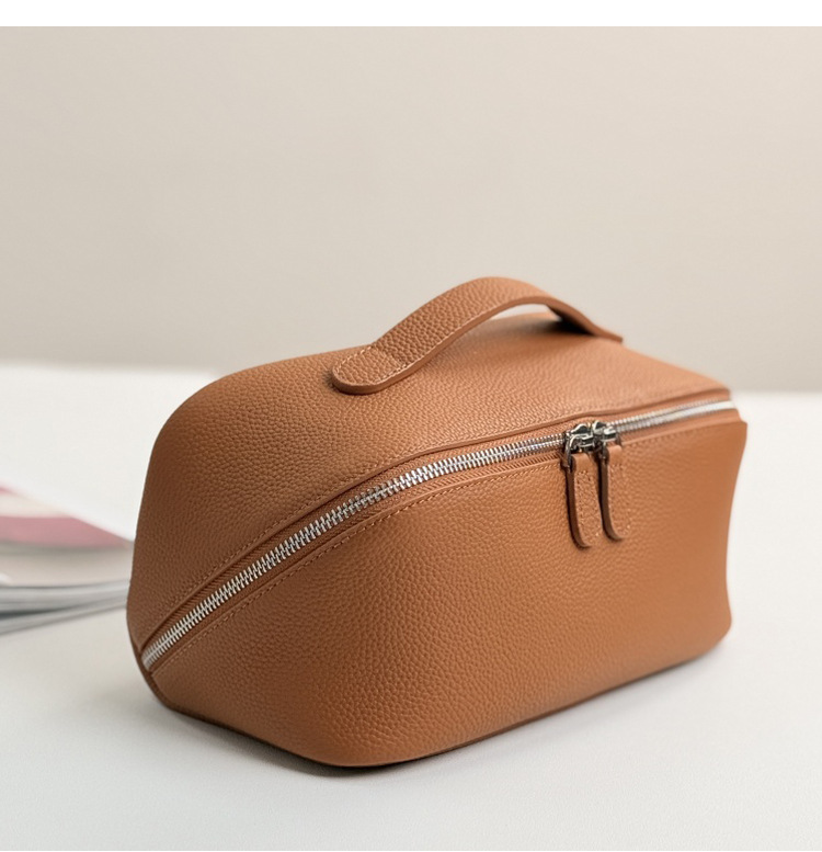 1등급 소가죽 립스틱 화장품 가방, 천연 가죽 여행용 휴대용 세면도구 가방, 대용량 수납 가방, 고급스러운 미니멀리즘 스타일