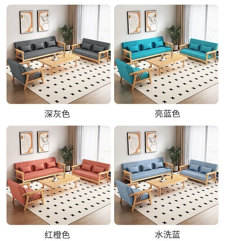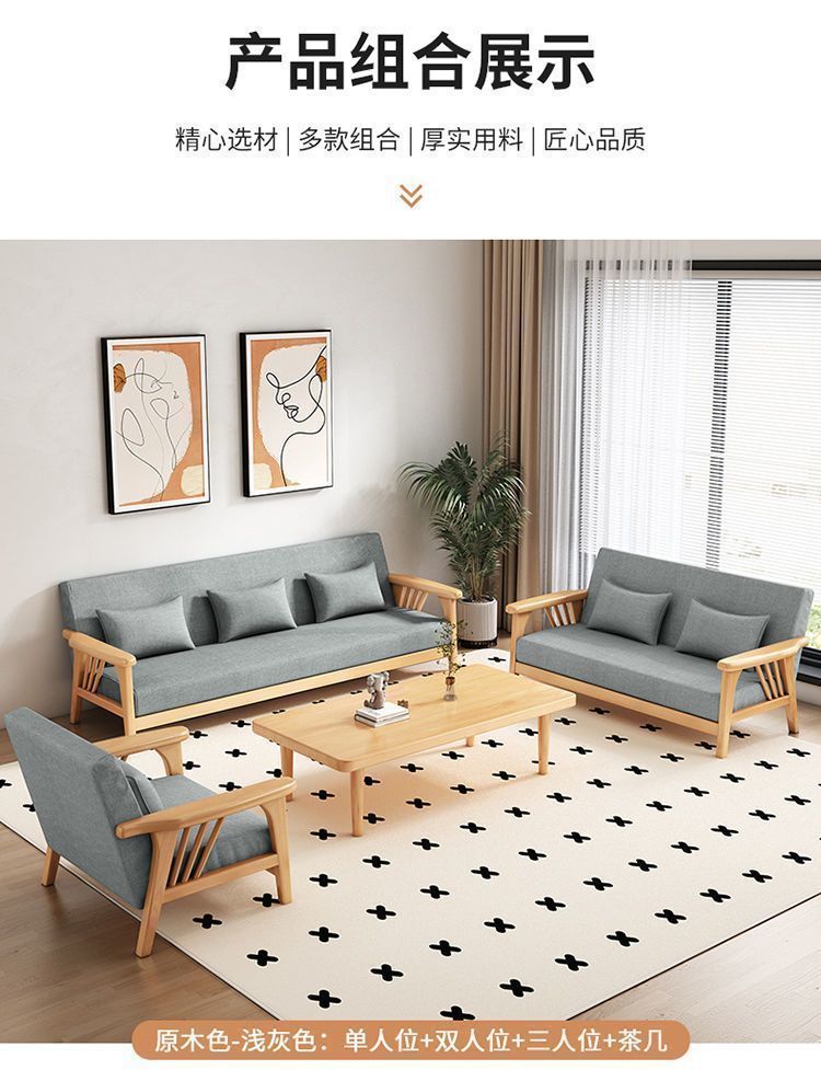 단단한 나무 소파 간단한 소파 커피 테이블 조합 현대 중국 스타일 거실 홈 더블 긴 의자 작은 아파트 세트스토어 가기