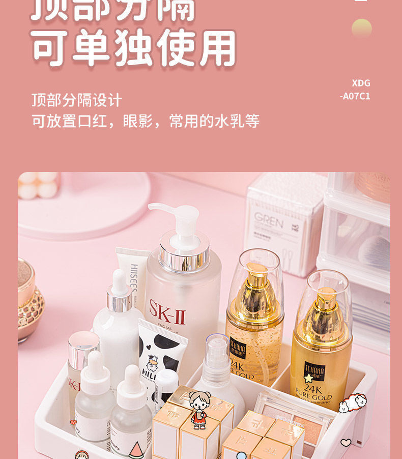 투명 서랍형 화장품 수납함 데스크탑 분류 학생 기숙사 화장품 수납함