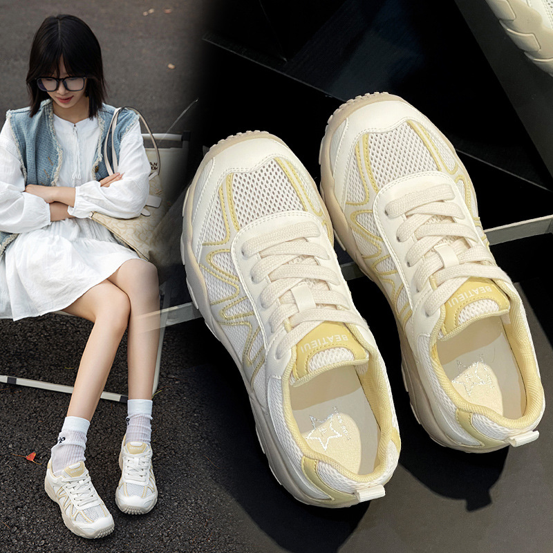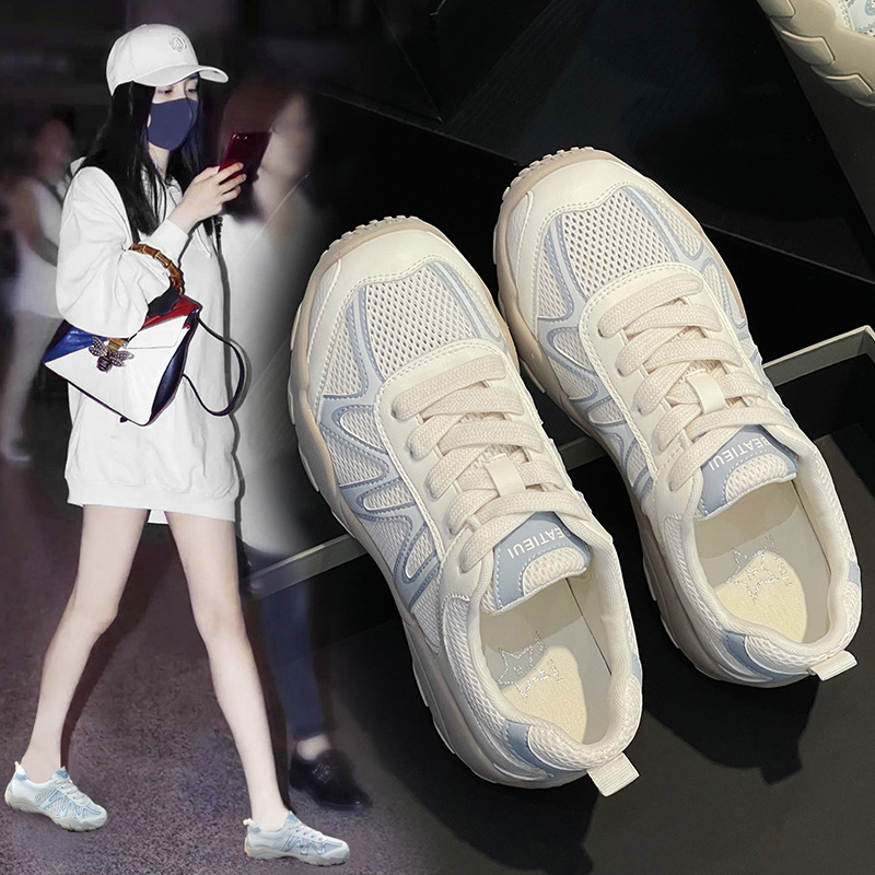 여성용 천연 가죽 육군 훈련 신발, 2025년 새로운 인기 두꺼운 밑창 여성용 운동화, 메쉬 통기성 얇은 포레스트 검프 신발스토어 가기