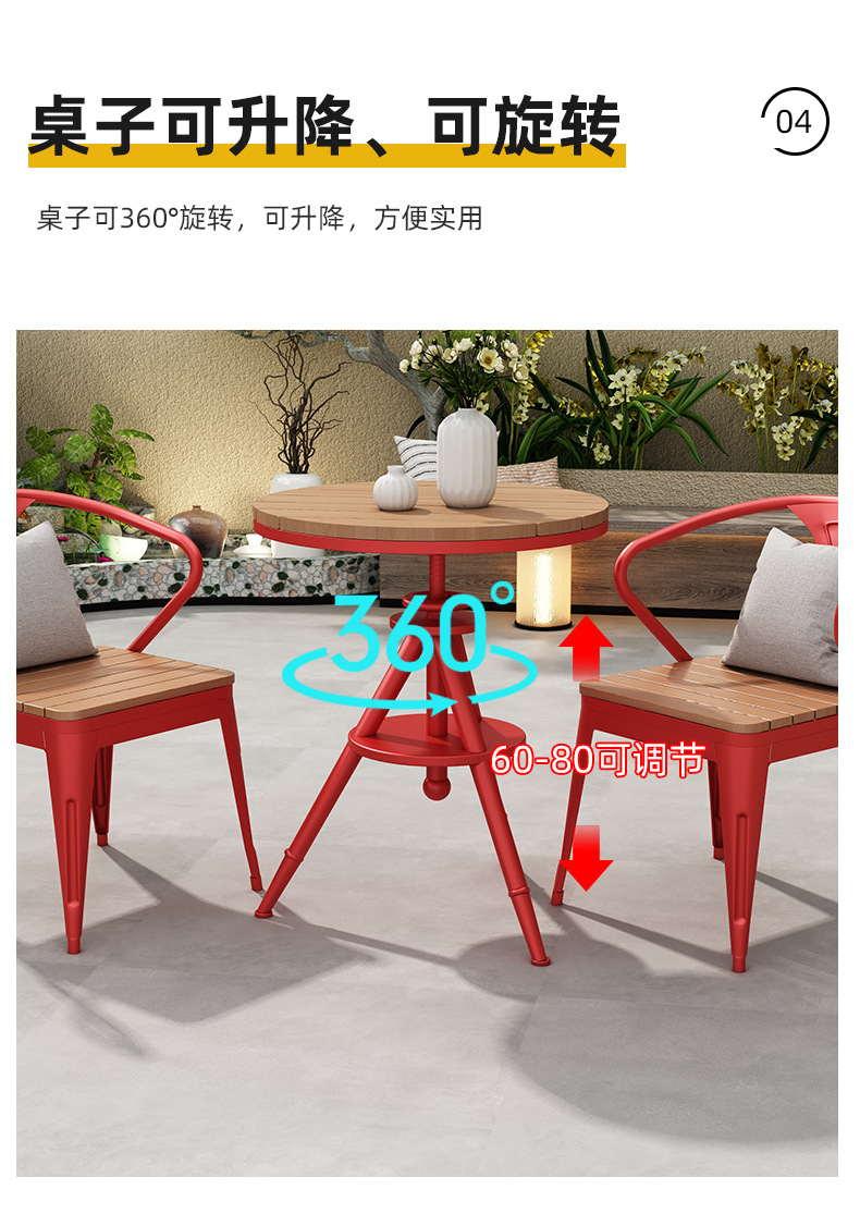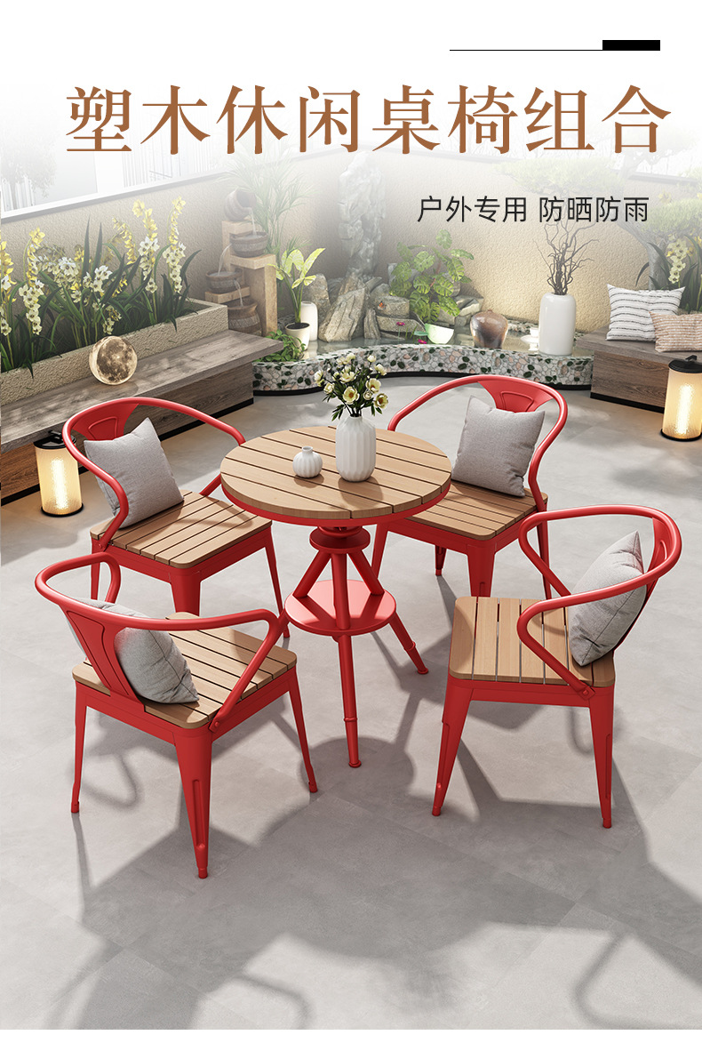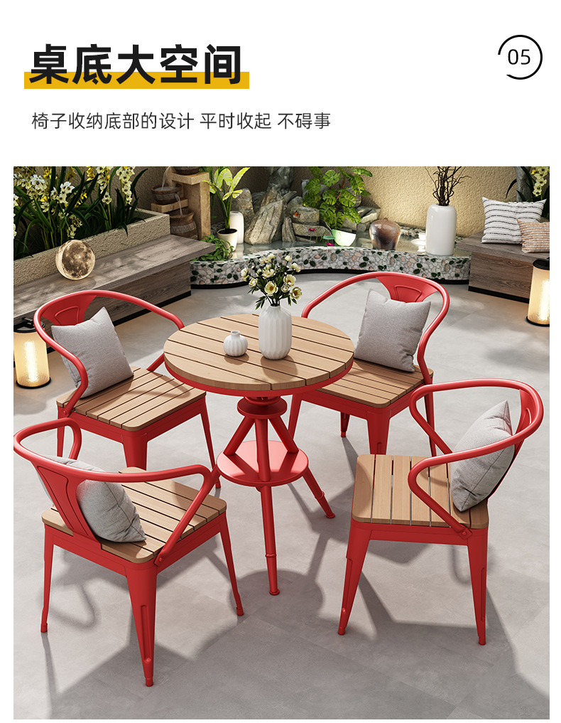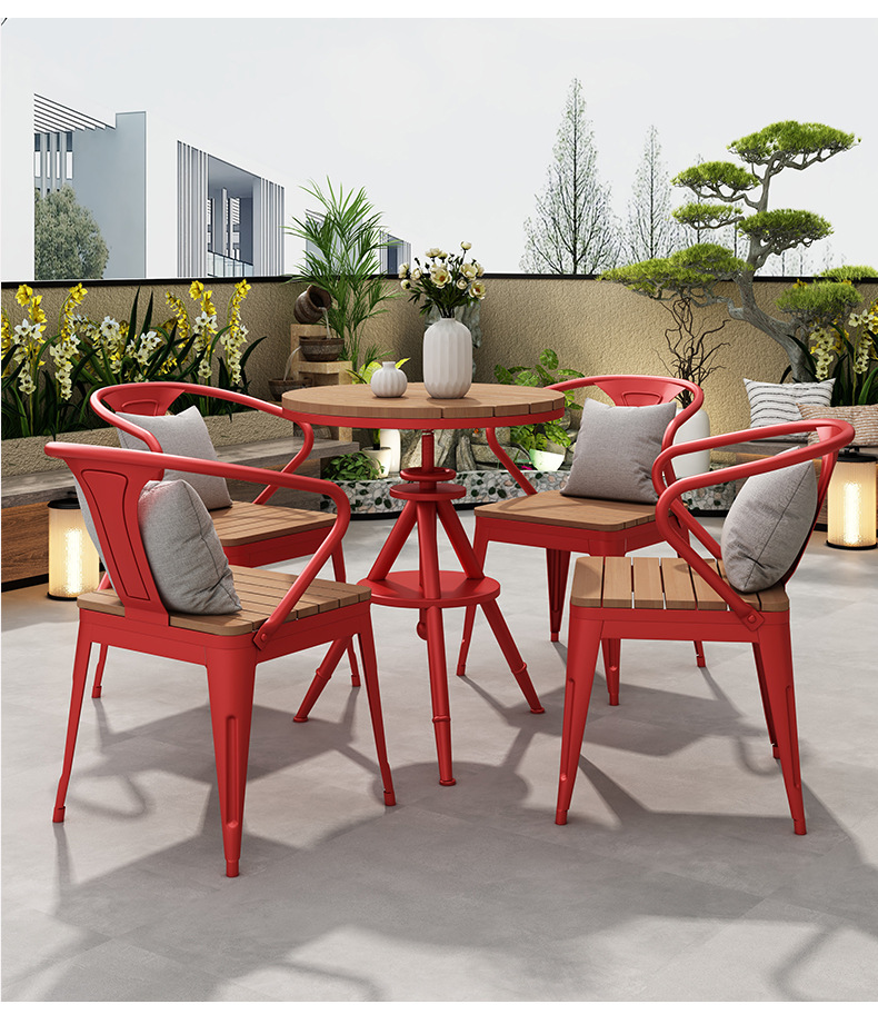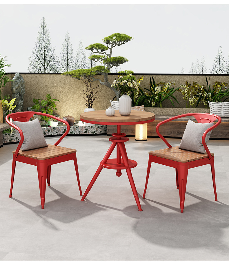 B&B 발코니 레저 테이블과 의자 조합 안뜰 정원 야외 식탁 야외 방수 및 자외선 차단제 원형 테이블 빨간색