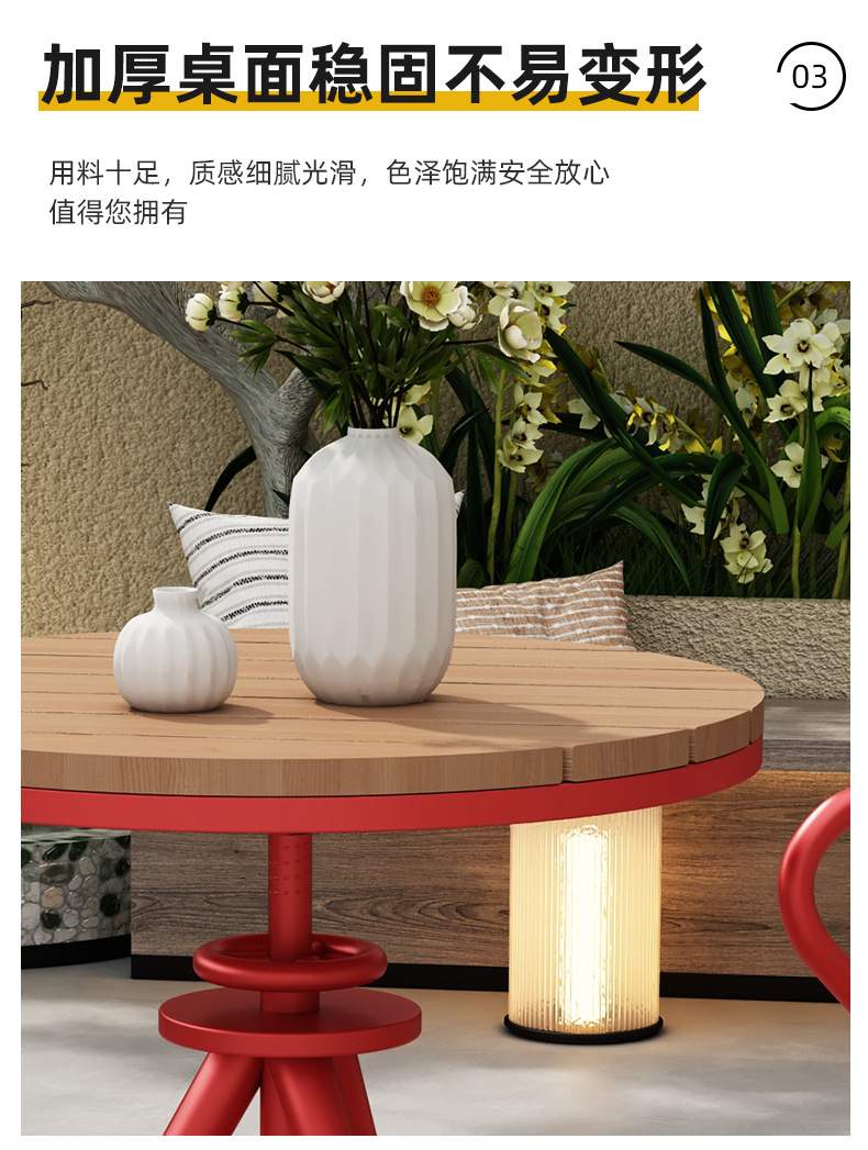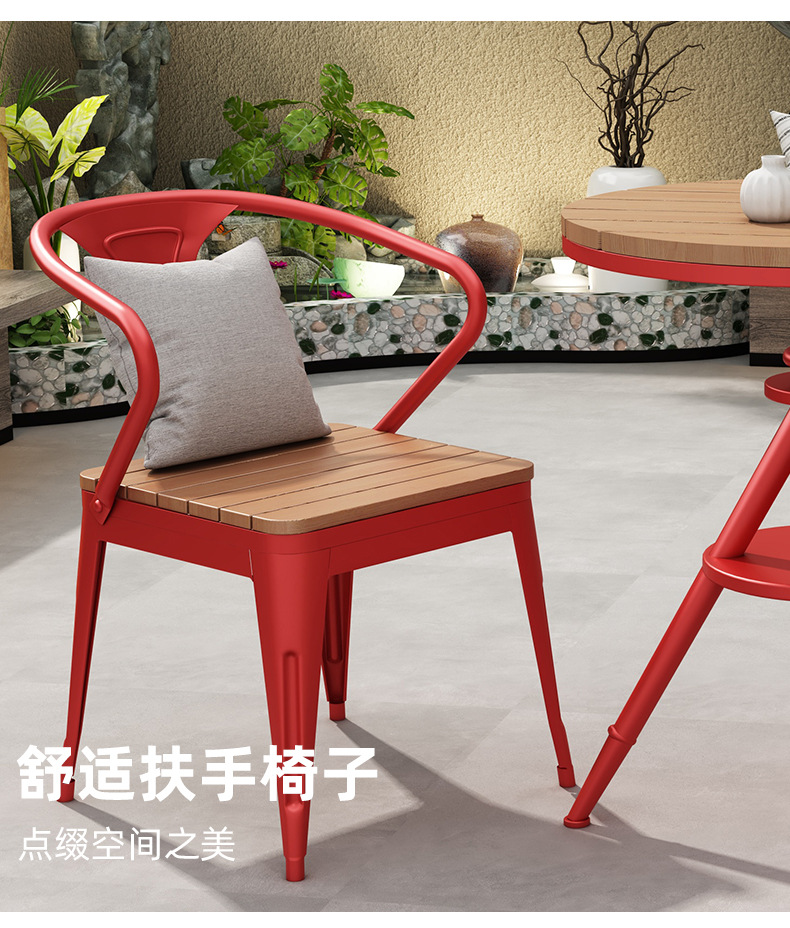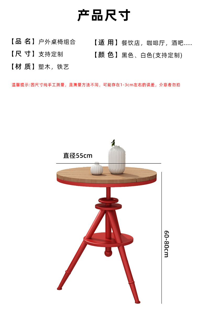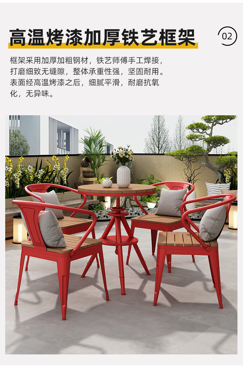 B&B 발코니 레저 테이블과 의자 조합 안뜰 정원 야외 식탁 야외 방수 및 자외선 차단제 원형 테이블 빨간색