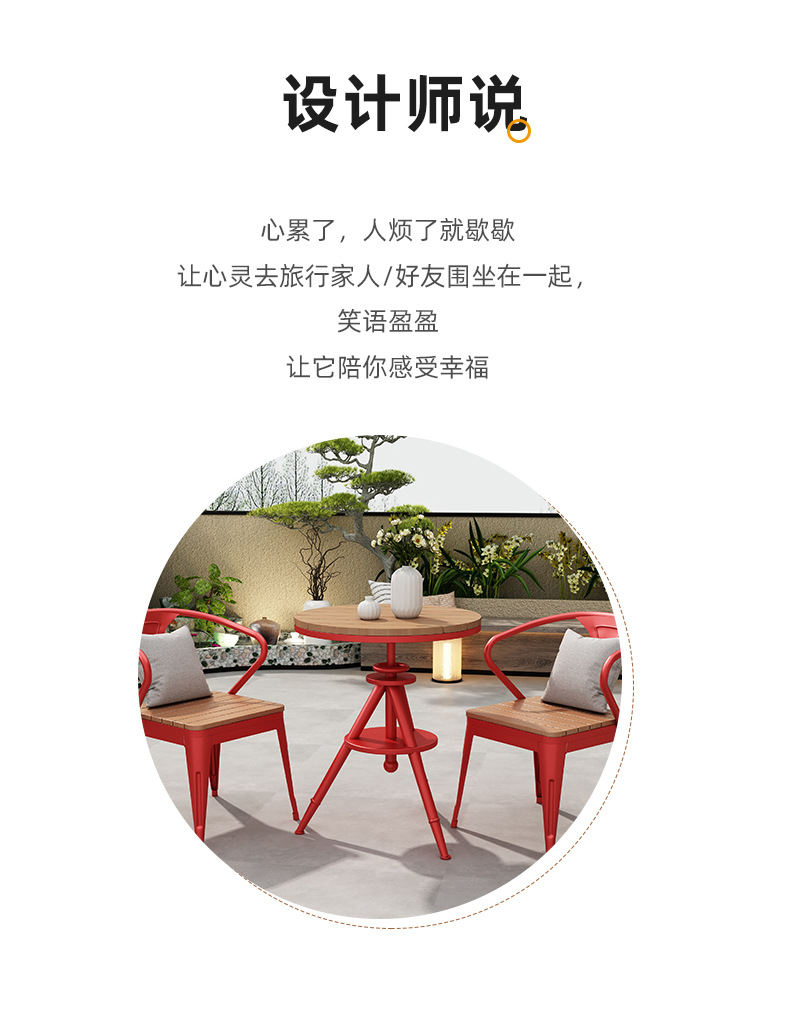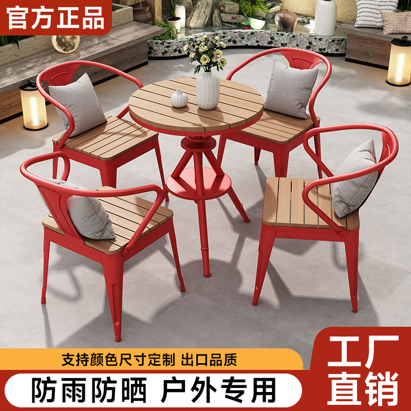 B&B 발코니 레저 테이블과 의자 조합 안뜰 정원 야외 식탁 야외 방수 및 자외선 차단제 원형 테이블 빨간색스토어 가기