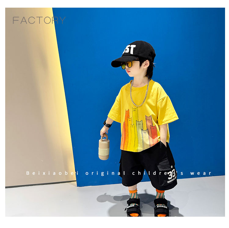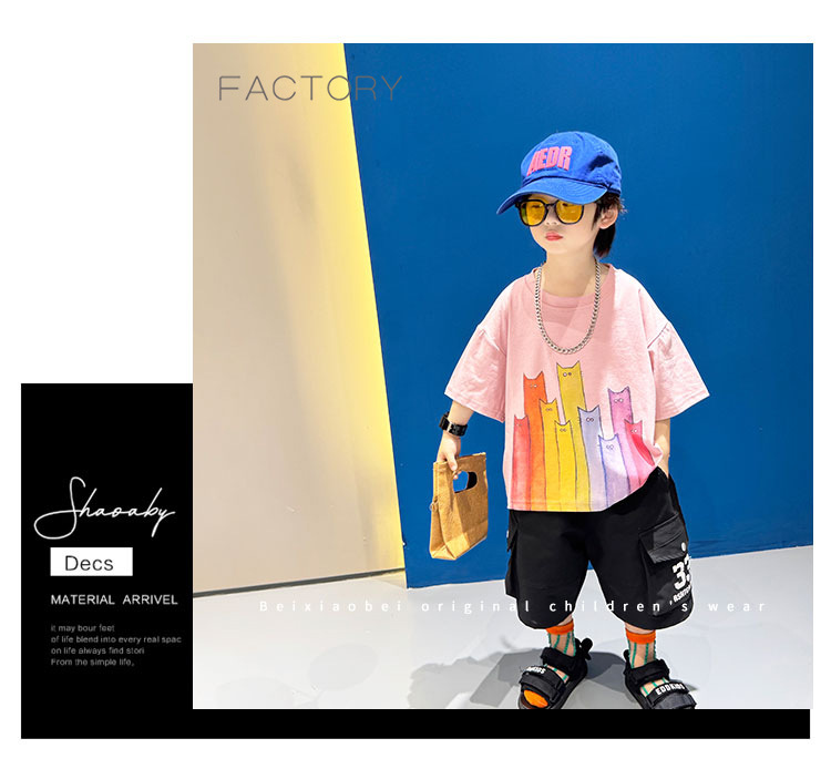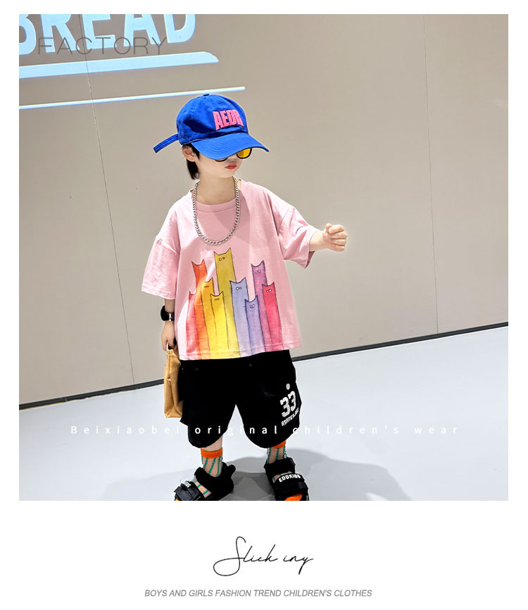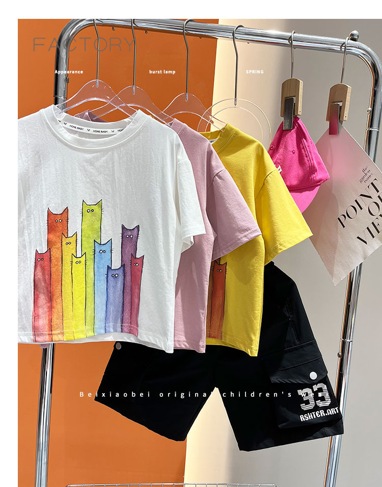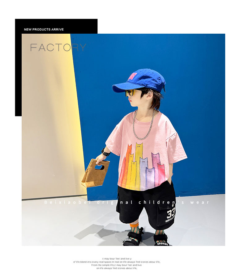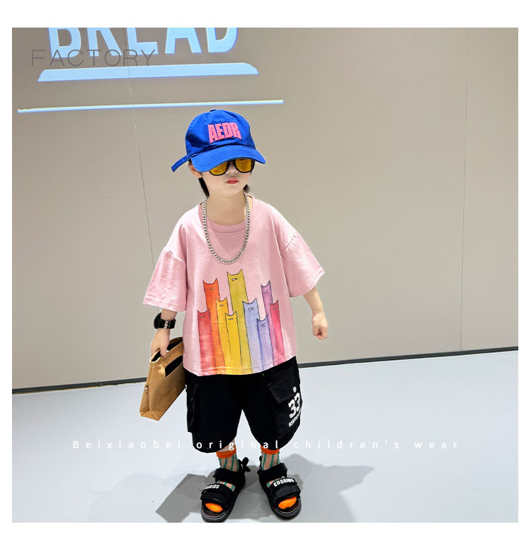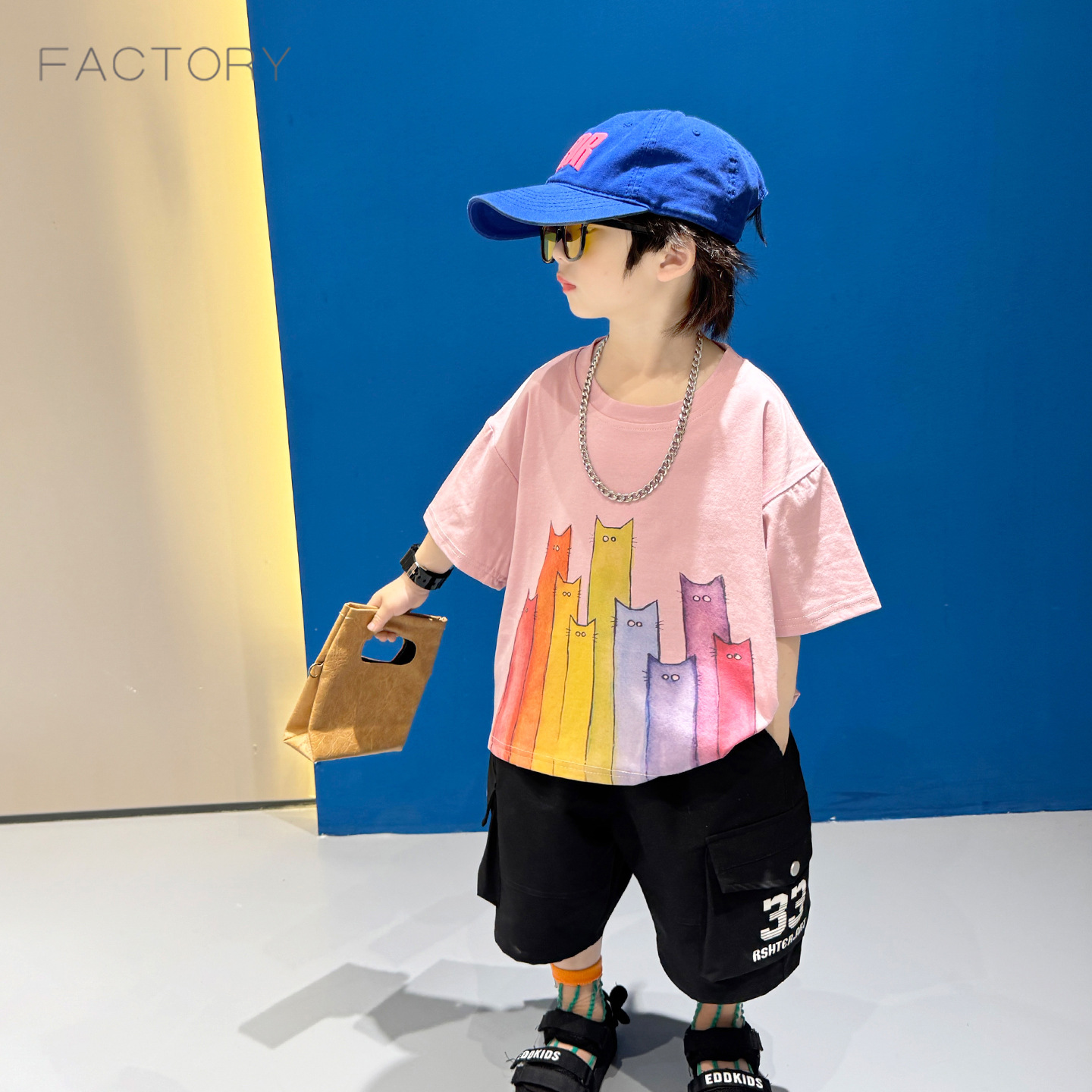 어린이 만화 반팔 여름 2025 새로운 스타일 소년의 세련된 얇은 캐주얼 탑 아기 유행 느슨한 반팔스토어 가기